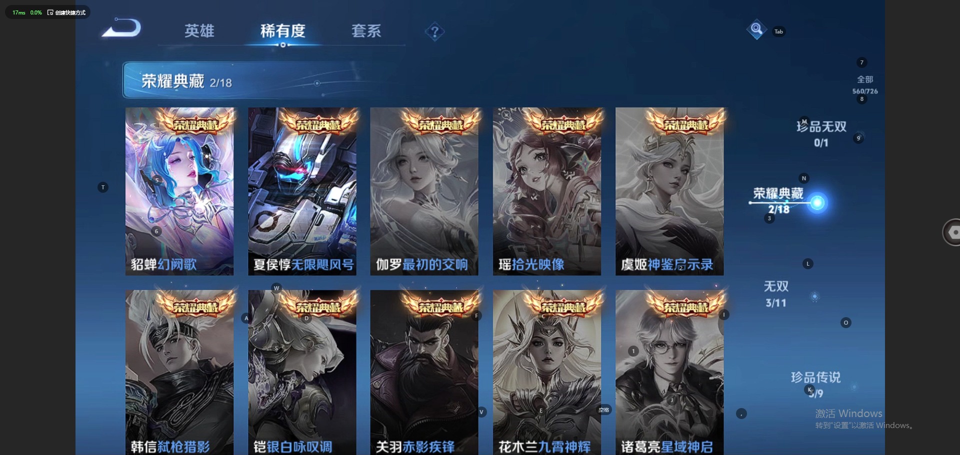 高渐离燃音魔法,夏侯惇乘风破浪,刘备百相守梦,曹操幽灵船长,小乔缤纷独角兽,小乔青蛇,孙尚香时之恋人,不知火舞魅语,赵怀真鹤归松栖,赵怀真器灵·浮梦炉,项羽苍穹之光,露娜紫霞仙子,周瑜雪夜绮愿,诸葛亮黄金分割率,司马懿暗渊魔法,宫本武藏鬼剑武藏,貂蝉圣诞恋歌,貂蝉唤灵魅影,花木兰水晶猎龙者,上官婉儿群星魔术团,蒙犽龙鼓争鸣,蒙犽百解令,杨戬天秀·启明,嬴政摇滚巨星,嬴政暗夜贵公子,雅典娜冰冠公主,雅典娜黎明之约,韩信白龙吟,百里守约特工魅影,墨子龙骑士,墨子金属风暴,澜赏金猎手,王昭君偶像歌手,嫦娥拒霜思,橘右京修罗,大乔白蛇,大乔猫狗日记,大乔乘龙·忆丹青,海诺心动手记,刘邦德古拉伯爵,阿轲暗夜猫娘,阿轲节奏热浪,哪吒雪上飞焰,铠曙光守护者,伽罗箭羽风息,廉颇地狱岩魂,伽罗琥珀纪元,孙策猫狗日记,鲁班七号电玩小子,吕布圣诞狂欢,吕布末日机甲,刘禅电玩·爆裂旋风,刘禅天才门将,刘禅绅士熊喵,公孙离无限星赏官,亚连糖绘人间,兰陵王暗隐猎兽者,李白谪仙醉月,苍狼魂孤将,夏洛特永昼,李白千年之狐,安琪拉心灵骇客,安琪拉乘龙·聚宝船,安琪拉时之奇旅,艾琳奇遇舞章,西施诗语江南,白起星夜王子,白起苍鳞隐世,亚瑟心灵战警,狄仁杰绮世丹青,莱西奥末日机甲,程咬金功夫厨神,百里玄策热力回旋,百里玄策原初追逐者,李元芳匿光侦查者,李元芳逐浪之夏,蔡文姬舞动绿茵,瑶遇见神鹿,蔡文姬电玩·兔顽号,娜可露露晚萤,钟馗乐园奇幻夜,关羽百相守梦,关羽决胜骁骑