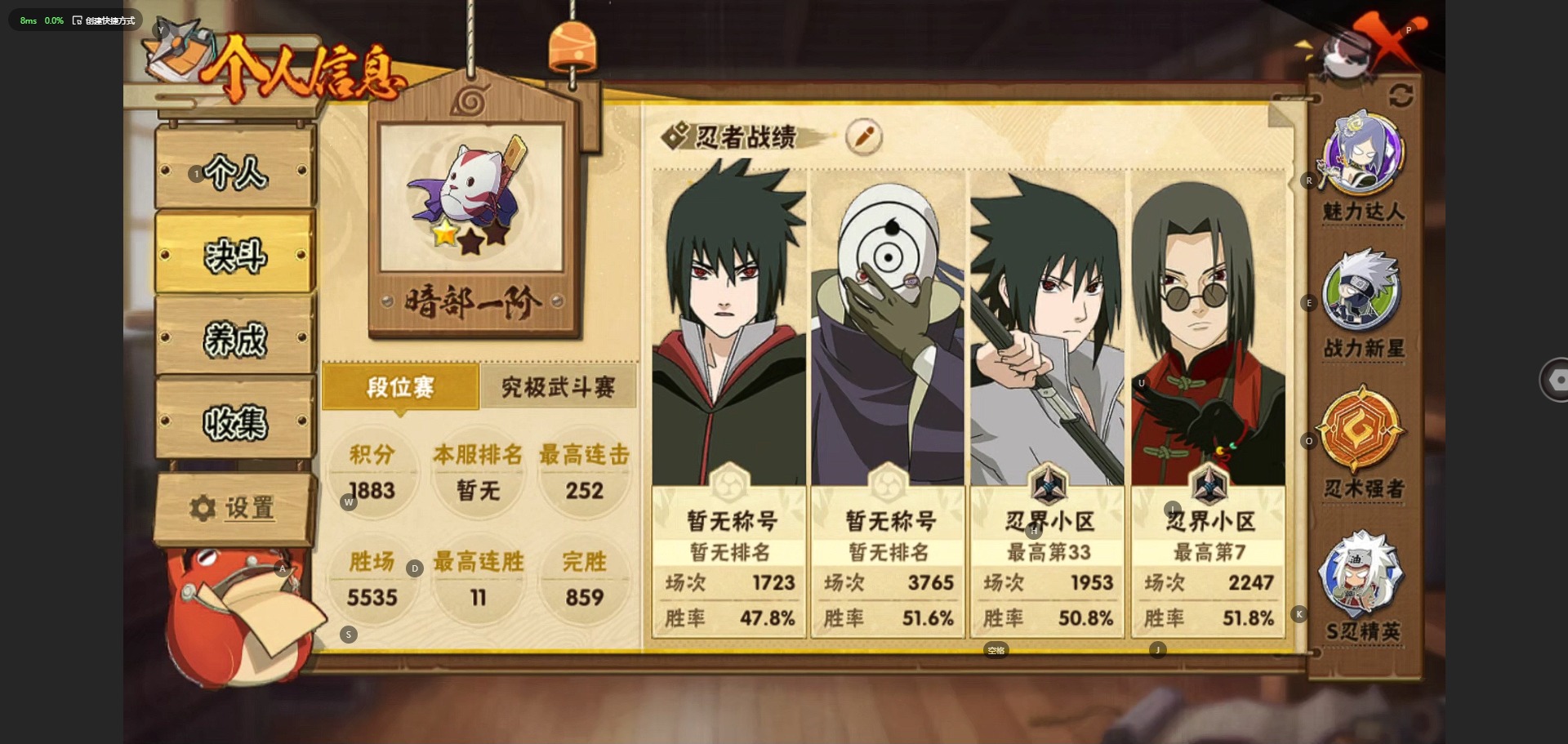 - 火影忍者手游/QQ/安卓QQ1-100区/1区宇智波佐助