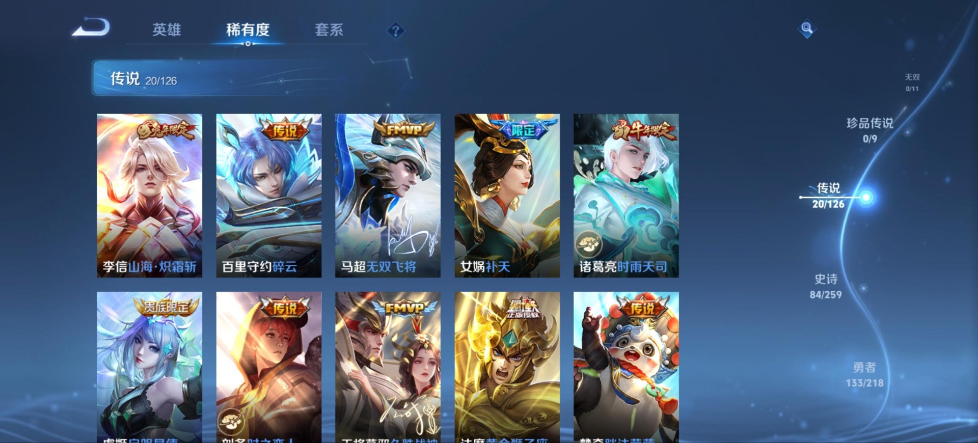 铠青龙志,典韦岱宗,后羿如梦令,后羿辉光之辰,诸葛亮时雨天司,裴擒虎李小龙,上官婉儿梁祝,马可波罗山海·玄木吟,桑启鸣野蒿,女娲补天,孙悟空大圣娶亲,韩信飞衡,虞姬愿照·岁时盈