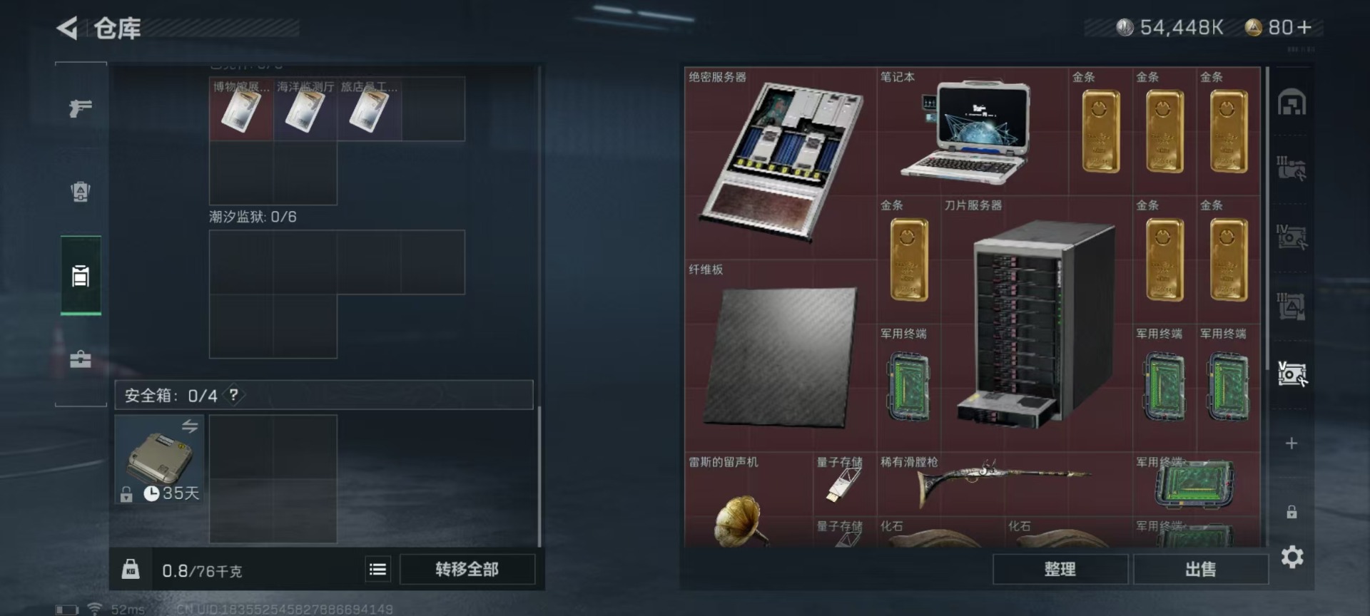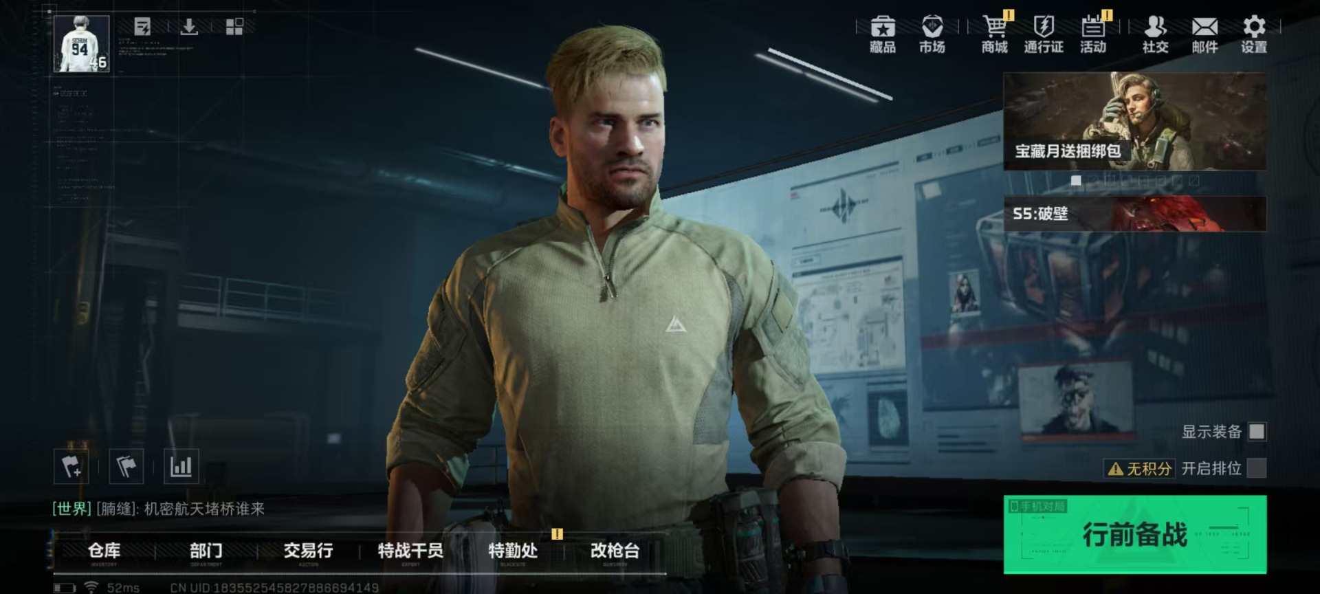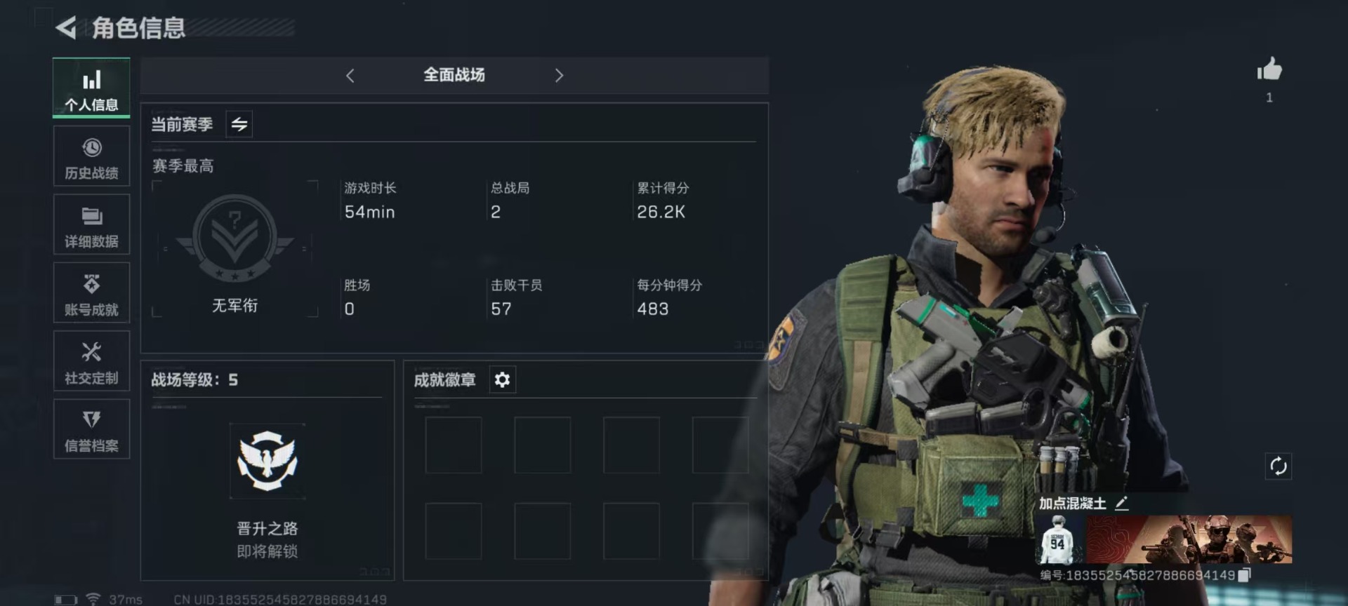 [11547447]总资产:105 2传说枪械 进阶安全箱(2×2)9.15号到期 可二次 可修改实名 烽火地带段位:白银 全面战场段位:无段位 哈夫币:54.448 传说武器皮肤:复合弓-黑-天际线,CAR-15突击步枪-阿米娅 史诗武器皮肤:SV-98狙击步枪-林中猎手,SV-98狙击步枪-囚徒