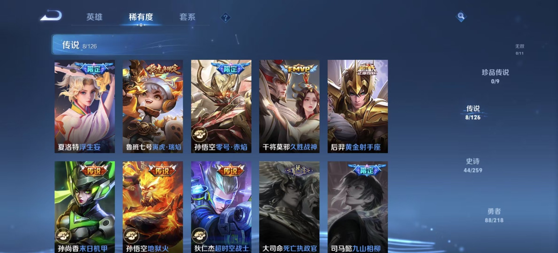 - [11679336]V7 1典藏 3珍品传说 8传说 123英雄 203皮肤 可修改实名 荣耀水晶:弑枪猎影(韩信典藏) 珍品传说:怪盗基德,时之奇旅-孙策,兔狲·蓬尾 传说皮:黄金狮子座,黄金白羊座,地狱之眼,云鹰飞将(小将军),澜逐花归海 珍宝阁皮:女武神 限定皮:逐霄战戟,鸣野蒿,白虎志(电光耗子),时雨天司(水龙头),五谷丰年,逐梦之星,李小龙,大圣娶亲,青春决赛季 史诗皮:茶境仙,器灵·浮梦炉,鸭鸭历险记-刘禅,龙之律动,百相守梦-百里守约,化蝶舞,破空之剑,遇见神鹿,紫霞仙子,黄金分割率,偶像歌手,无限星赏官,魅语,暗夜猫娘,末日机甲-吕布,猫狗日记-孙策,节奏热浪,水果甜心,功夫厨神,德古拉伯爵,暗隐猎兽者,幽灵船长,鬼剑武藏,心灵战警,乐园奇幻夜,天秀·启明,地狱岩魂,诗语江南,拒霜思,缤纷独角兽,乘风破浪,水晶猎龙者,曙光守护者,箭羽风息,圣诞恋歌,鹰眼统帅,魅力维加斯,无心,未来纪元-赵云