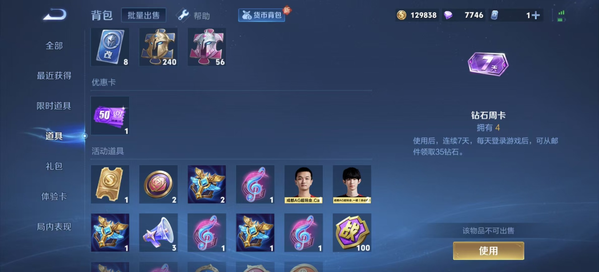 - [12174151]7橙皮 1金皮 5紫皮 50皮肤 26英雄 83卡面 575已用源晶 白银 优质装备:正义-奇点,幻影-源能者娱乐系统,狂徒-紫阙金琅,狂徒-盖亚的复仇,幻影-侦察力量,狂徒-洪荒怒焰,狂徒-日冕雄师,正义-RGX 11z Pro 3.0,鬼魅-天界神兵,黑波之刃,爪刀-RGX 11z Pro 3.0,匕首-超限闪存 近战武器皮肤:超能偶像 应援棒