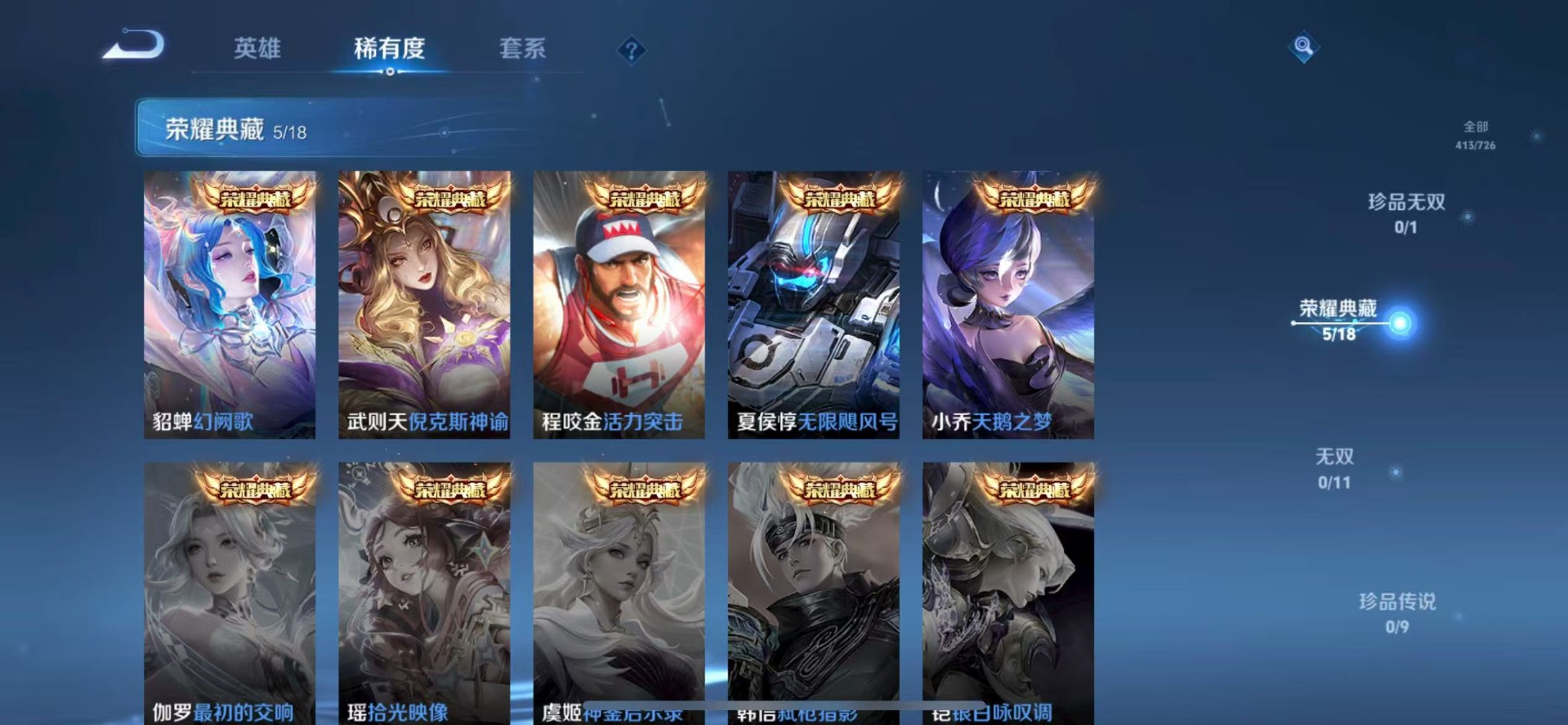 - PX_2057227-贵族等级: V7 英雄数: 124 皮肤数: 222 星传说: 幽冥之眼 传说皮: 云鹰飞将,时之恋人-刘备,琥珀纪元马超,乘龙·淬吴钩,幻光神枪,祥瑞亨通 限定皮: 遇见飞天,李小龙,游园惊梦,梁祝,御风骁将,岱宗,神威,飞衡,白虎志,如梦令-后羿,大圣娶亲,高山流水,孙行者,逐霄战戟