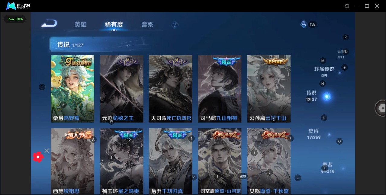 - [12280841]V8 1典藏 17传说 125英雄 277皮肤 可修改实名 优质装备:神鉴启示录,黄金狮子座,黄金射手座,冠军飞将,云鹰飞将(小将军),一念神魔,地狱火,胖达荣荣,时之恋人-刘备(电焊工),遇见胡旋,浮生妄,妄想奇谈 传说皮:幻光神枪 珍宝阁皮:妄想食味,胡桃夹子,蔷薇恋人,女武神 限定皮:至尊宝,白虎志(电光耗子),太华(伽罗年限),异界灵契(白毛香),时之彼端,时雨天司(水龙头),神威(电光马子),飞衡(韩信年限),高山流水,五谷丰年,冰锋战神,幽恒(沐浴露),岱宗(典韦年限),天狼绘梦者,李小龙,朱雀志(守约年限),如梦令-嫦娥,如梦令-后羿,真爱至上,孙行者,猪悟能,大圣娶亲,青春决赛季,冰霜恋舞曲,神奇女侠,匿光追影者,山海·玄木吟(马可年限) 史诗皮:石田雨龙,千年之狐,高渐离燃音魔法,蒙恬荣光圣徽,冰冠公主,电玩·爆裂旋风,百相守梦(关羽),末日机甲-吕布,猫狗日记-孙策,猫狗日记-大乔,乱世虎臣,修罗,摇滚巨星,水果甜心,天才门将,时之奇旅-安琪拉,功夫厨神,德古拉伯爵,暗隐猎兽者,鬼剑武藏,心灵战警,舞动绿茵,纤云弄巧,繁星吟游(呼啦呼啦),拒霜思,乘风破浪,逐浪之夏,水晶猎龙者,曙光守护者,金属风暴,原初追逐者,鹰眼统帅,王者之锤,魅力维加斯,黎明之约,无心,未来纪元-赵云