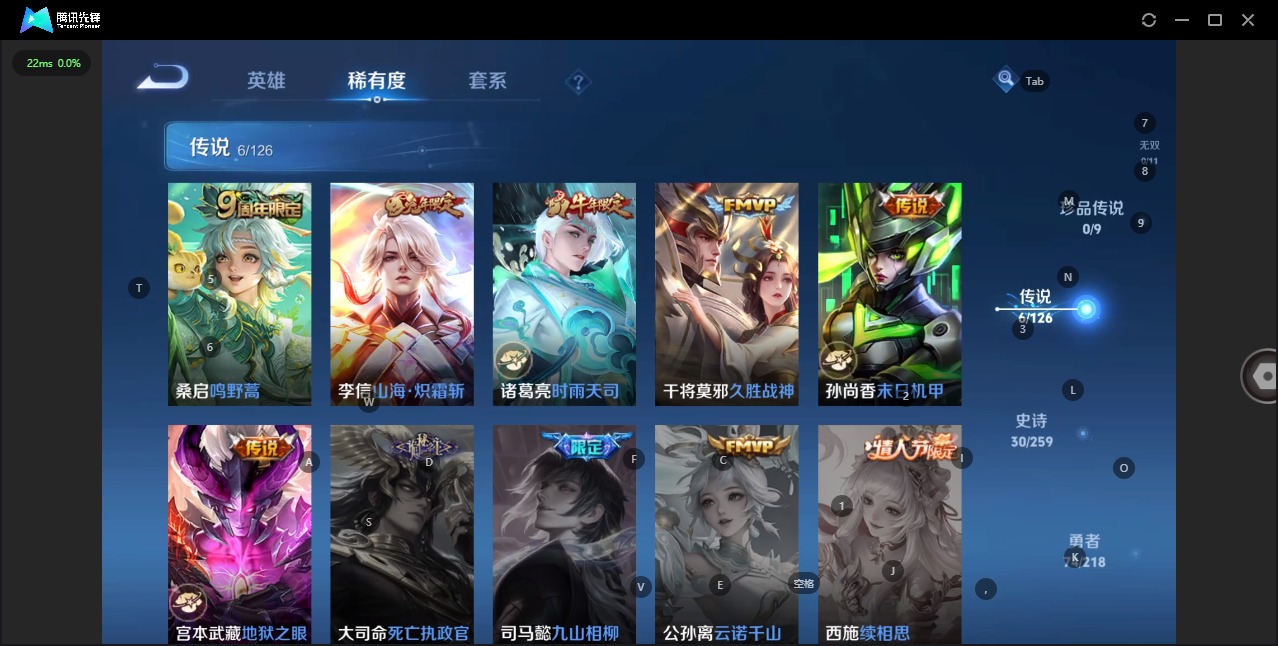 - [11495445]V6 3传说 78英雄 50皮肤 可修改实名 优质装备:淬星耀世 传说皮:幻光神枪 限定皮:愿照·九州拓(澜年限),逐霄战戟,山海·玄木吟(马可年限) 史诗皮:器灵·浮梦炉,绮世丹青,化蝶舞,龙之律动,茶境仙,千年之狐,魅语,鬼剑武藏,地狱岩魂,缤纷独角兽