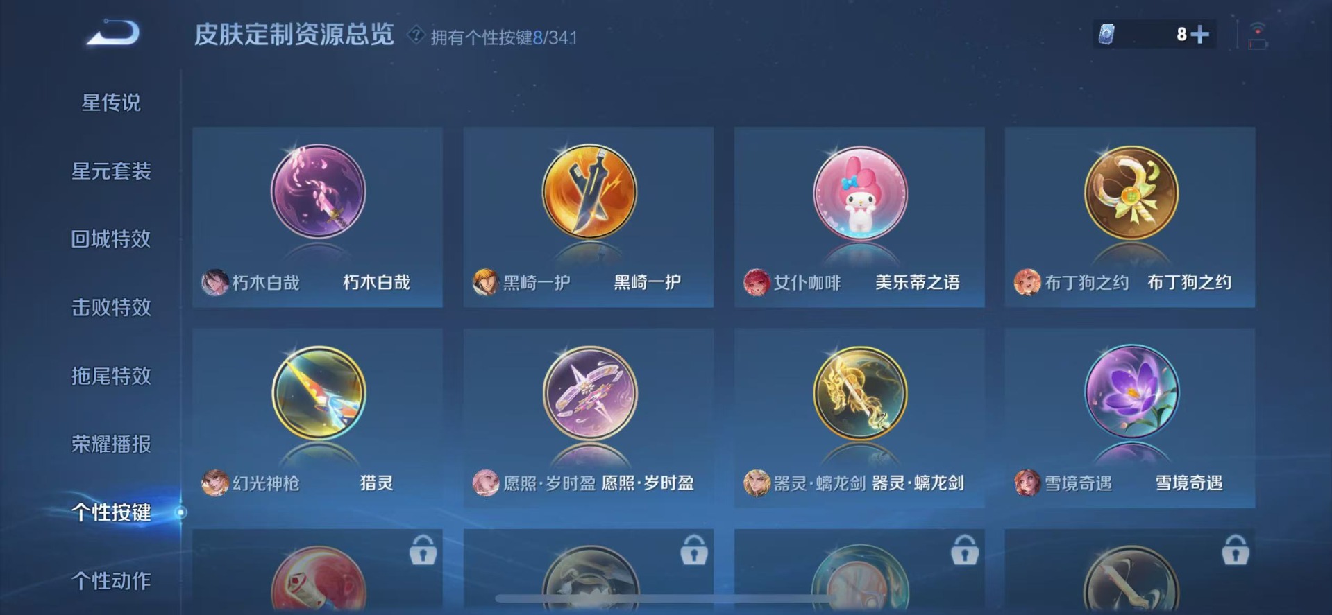 大乔猫狗日记,夏侯惇乘风破浪,阿轲节奏热浪,铠曙光守护者,曹操幽灵船长,廉颇地狱岩魂,小乔青蛇,孙策猫狗日记,赵怀真器灵·浮梦炉,吕布圣诞狂欢,吕布末日机甲,诸葛亮黄金分割率,宫本武藏鬼剑武藏,兰陵王暗隐猎兽者,貂蝉圣诞恋歌,苍狼魂孤将,李白千年之狐,白起星夜王子,嬴政摇滚巨星,程咬金功夫厨神,百里玄策原初追逐者,雅典娜冰冠公主,雅典娜黎明之约,韩信白龙吟,百里守约特工魅影,李元芳逐浪之夏,墨子金属风暴,娜可露露晚萤,钟馗乐园奇幻夜,橘右京修罗