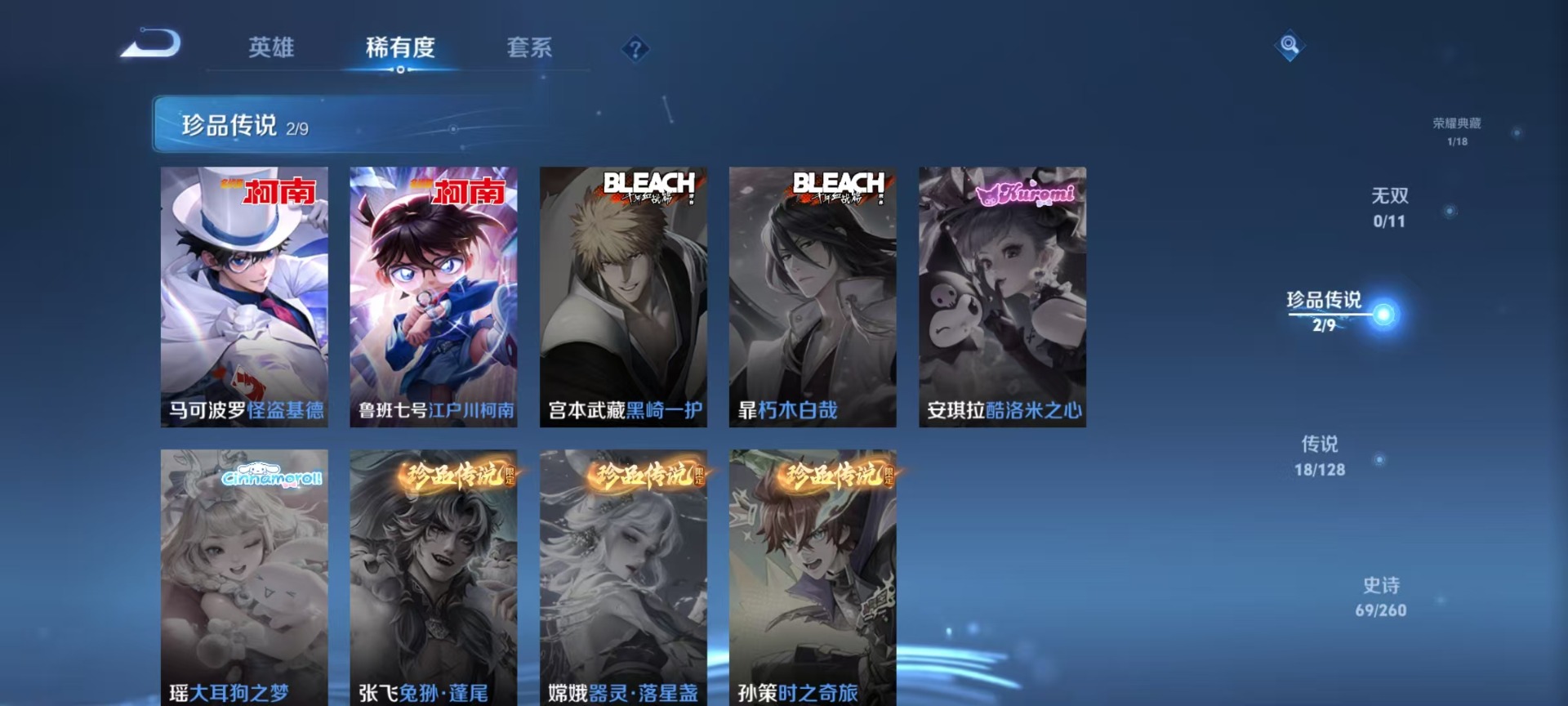 夏侯惇霜北刀,孙膑天狼运算者,典韦岱宗,司空震愿照·山河定,上官婉儿梁祝,马可波罗逐梦之星,桑启鸣野蒿,孙悟空至尊宝,韩信傲雪梅枪