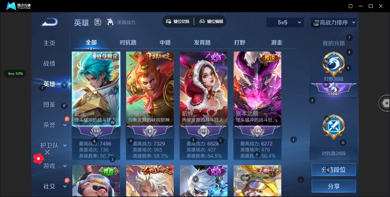 - [12082552]V10 5典藏 1无双 5珍品传说 47传说 126英雄 475皮肤 典藏英雄武则天 可修改实名 优质装备:杀手不太冷,鸣剑·曳影,全息碎影(猴子典藏),赤影疾锋,碎月剑心(李白无双),神鉴启示录,江户川柯南,怪盗基德,朽木白哉,黑崎一护,黄金狮子座,黄金射手座,冠军飞将,云鹰飞将(小将军),黄金白羊座,猫影幻舞,久胜战神,炽阳神光,一念神魔,云霓雀翎,末日机甲-孙尚香(绿蚂蚱),地狱火,仲夏夜之梦(大飞蛾),音你心动-小乔,零号·赤焰,海洋之心,地狱之眼,飞鸢探春,胖达荣荣,乞巧织情,时之恋人-刘备(电焊工),游龙清影(小青龙),淬星耀世,超时空战士-狄仁杰,遇见胡旋,末日机甲-孙策,挚爱之约,无双飞将,山海·琳琅生(小乔年限),鹤归松栖(云缨),澜逐花归海,艾琳觅芳踪,玄雷天君,涂山容容 珍品传说:时之奇旅-孙策 传说皮:幻光神枪 珍宝阁皮:万物之道,蔷薇恋人,玩趣恶龙 限定皮:愿照·千秋盛(女娲年限),逐霄战戟,鸣野蒿,至尊宝,白虎志(电光耗子),凤求凰(白切鸡),凤凰于飞,太华(伽罗年限),梅西,补天,绯月行,时之彼端,白晶晶,时雨天司(水龙头),神威(电光马子),飞衡(韩信年限),玄嵩(庄周年限),遇见飞天,高山流水,匿光决锋者,五谷丰年,青龙志(铠年限),冰锋战神,幽恒(沐浴露),天狼运算者,梁祝,御风骁将(吕布年限),逐梦之翼,岱宗(典韦年限),天狼溯光者,天狼征服者,奔雷神使(牛魔年限),祈雪灵祝(雪兔子),逐梦之影,逐梦之光,玄武志(苏烈年限),朱雀志(守约年限),永曜之星,辉光之辰,如梦令-后羿,奇迹圣诞,默契交锋-花木兰,真爱至上,孙行者,猪悟能,大圣娶亲,青春决赛季,冰霜恋舞曲,蜜橘之夏,热情桑巴,神奇女侠,美猴王,寅虎·赤拳(老虎年限),启示之音,唐三藏,神器·万象笔 史诗皮:鸭鸭历险记-刘禅,器灵·浮梦炉,狼魂孤将,化蝶舞,灵蛊蚀心,星界战将,龙之律动,雪豹·霜爪,石田雨龙,百相守梦-周瑜,茶境仙,破空之剑,百相守梦-百里守约,百相守梦-黄忠,遇见神鹿,紫霞仙子,苍穹之光,电玩小子(小书包),白龙吟,黄金分割率,特工魅影,千年之狐,永昼,江河有灵,末日机甲-莱西奥,鹤归松栖(赵怀真),雪夜绮愿(周瑜),魅语,百解令(蒙犽),高渐离燃音魔法,蒙恬荣光圣徽,无限星赏官,冰冠公主,青蛇,偶像歌手,白蛇,晚萤,暗夜猫娘,银翎春语,龙骑士(小龙