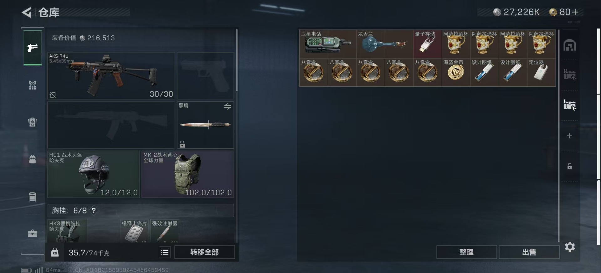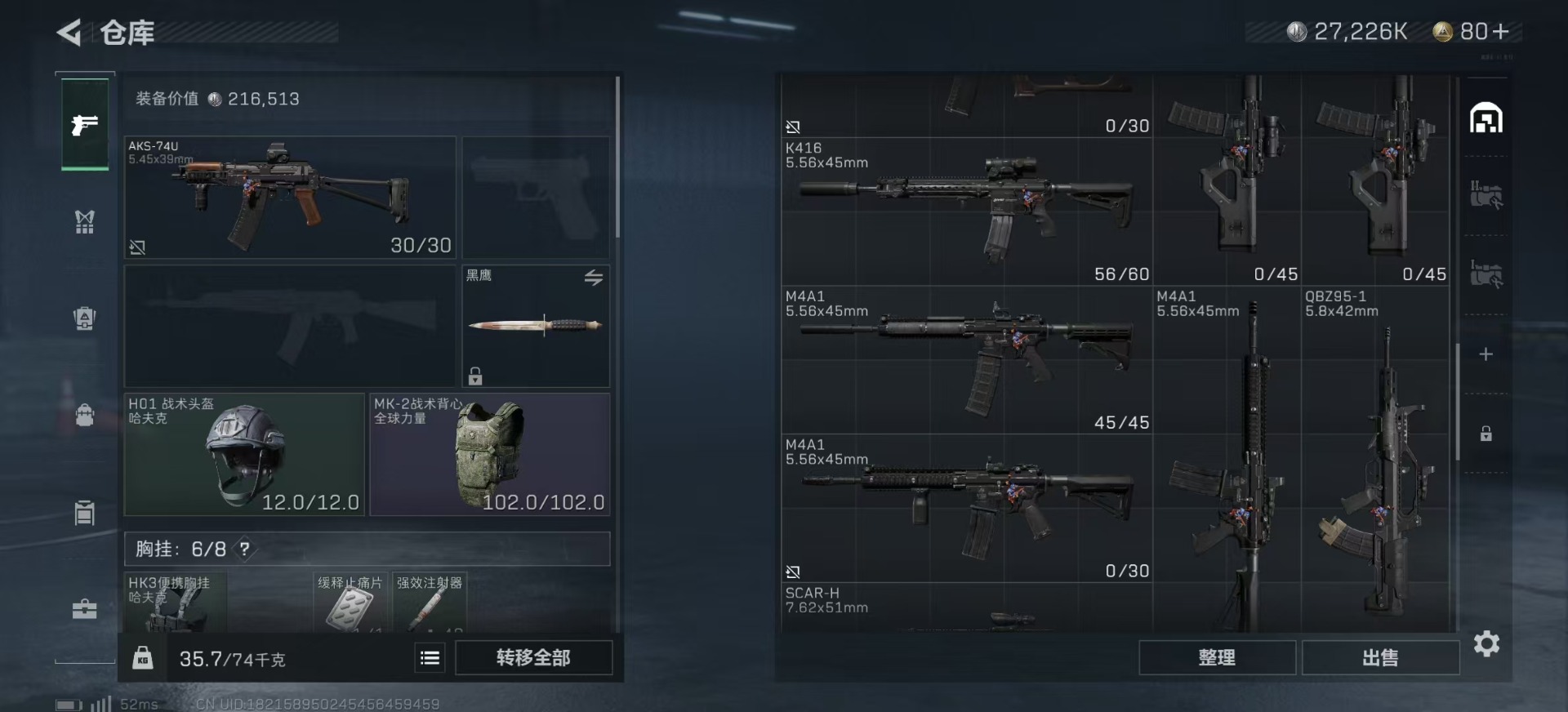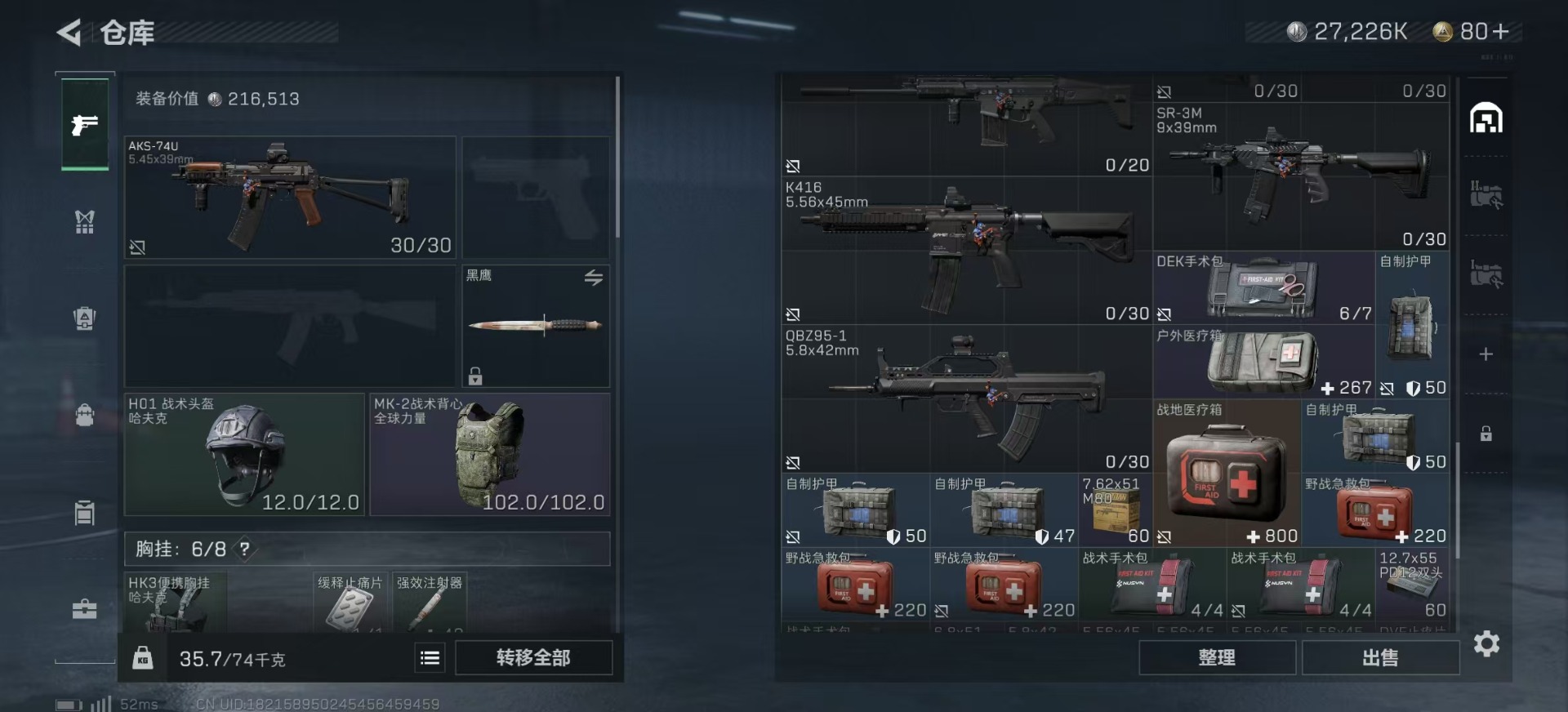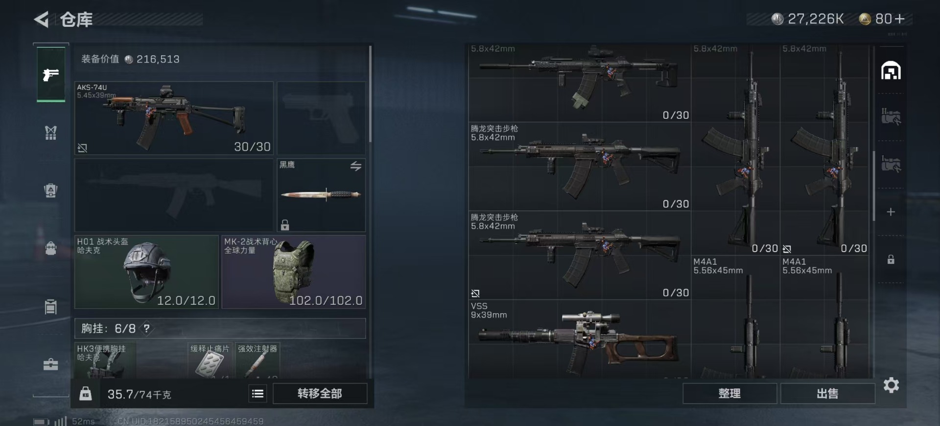 - [11639679]总资产:122.1M 1干员外观 9传说枪械 哈夫币:92.307K 顶级安全箱(9.15到期) 可二次 安全保护中 可修改实名 优质装备:顶级安全箱(3x3) 烽火地带段位:黑鹰 全面战场段位:列兵 传说武器皮肤:SMG45冲锋枪-骑士,AWM狙击步枪-捞点薯条,腾龙突击步枪-捞点薯条,93R-捞点薯条,SR-3M紧凑突击步枪-特斯拉线圈,复合弓-黑-天际线,725双管霰弹枪-送葬人-无题密令,M4A1突击步枪-阿米娅,AK-12突击步枪-夜鹰 史诗武器皮肤:SR-3M紧凑突击步枪-英雄,G3战斗步枪-战场英杰,SG552突击步枪-尖端治疗,M1014霰弹枪-林中猎手,AS Val突击步枪-尖端治疗,M700狙击步枪-守夜人,Ash-12战斗步枪-守夜人,SR-25射手步枪-尖端治疗,MP5冲锋枪-深海恐惧,AKM突击步枪-林中猎手,M250通用机枪-囚徒,SV-98狙击步枪-林中猎手,SV-98狙击步枪-囚徒,SVD狙击步枪-暗夜猎手,SCAR-H战斗步枪-囚徒,腾龙突击步枪-无垢,MP7冲锋枪-无垢,PSG-1射手步枪-无垢,SVD狙击步枪-荒野求生,SR-3M紧凑突击步枪-荒野求生,QBZ95-1突击步枪-曙光,沙漠之鹰-曙光,S12K霰弹枪-曙光,QSZ92G-风林火山,ASh-12战斗步枪-刀锋 干员外观:露娜-黑·天际线
