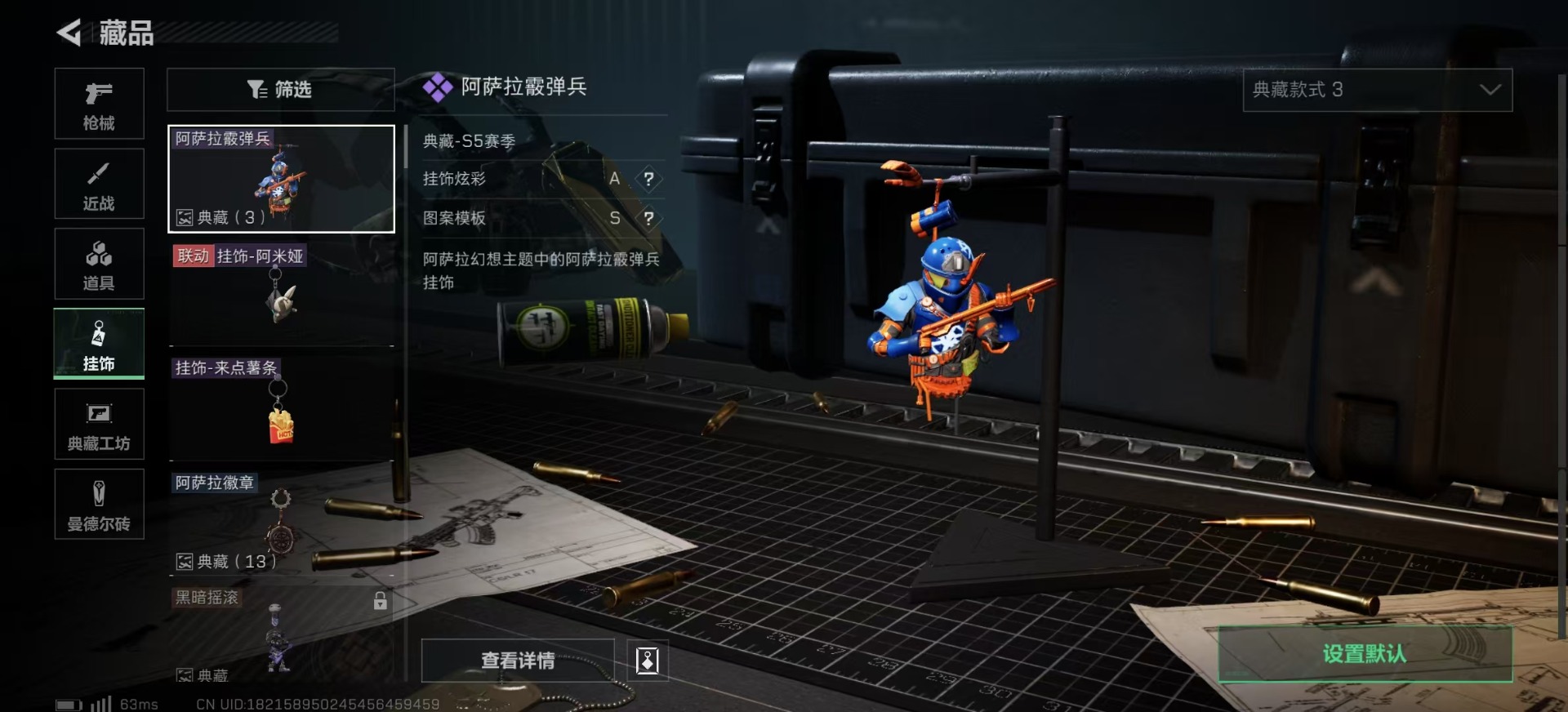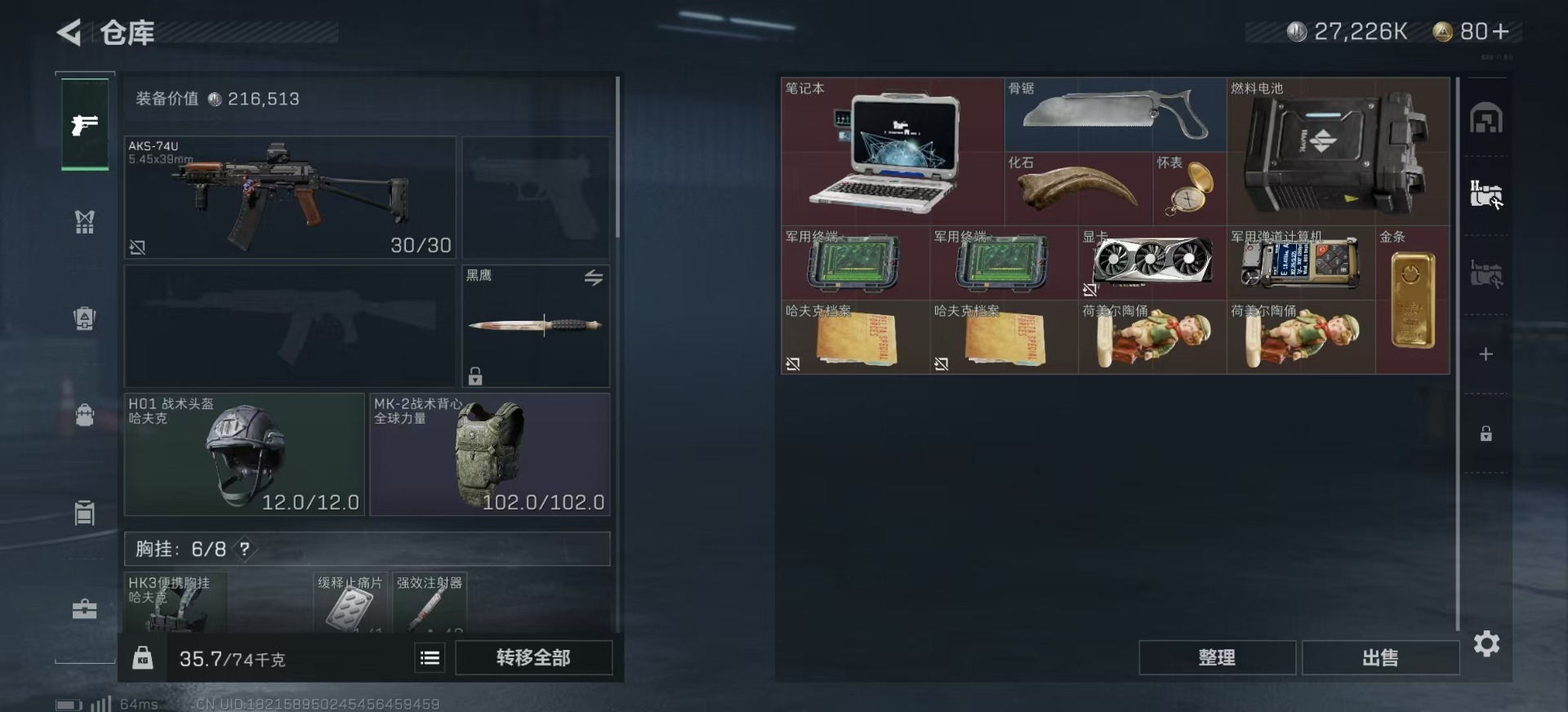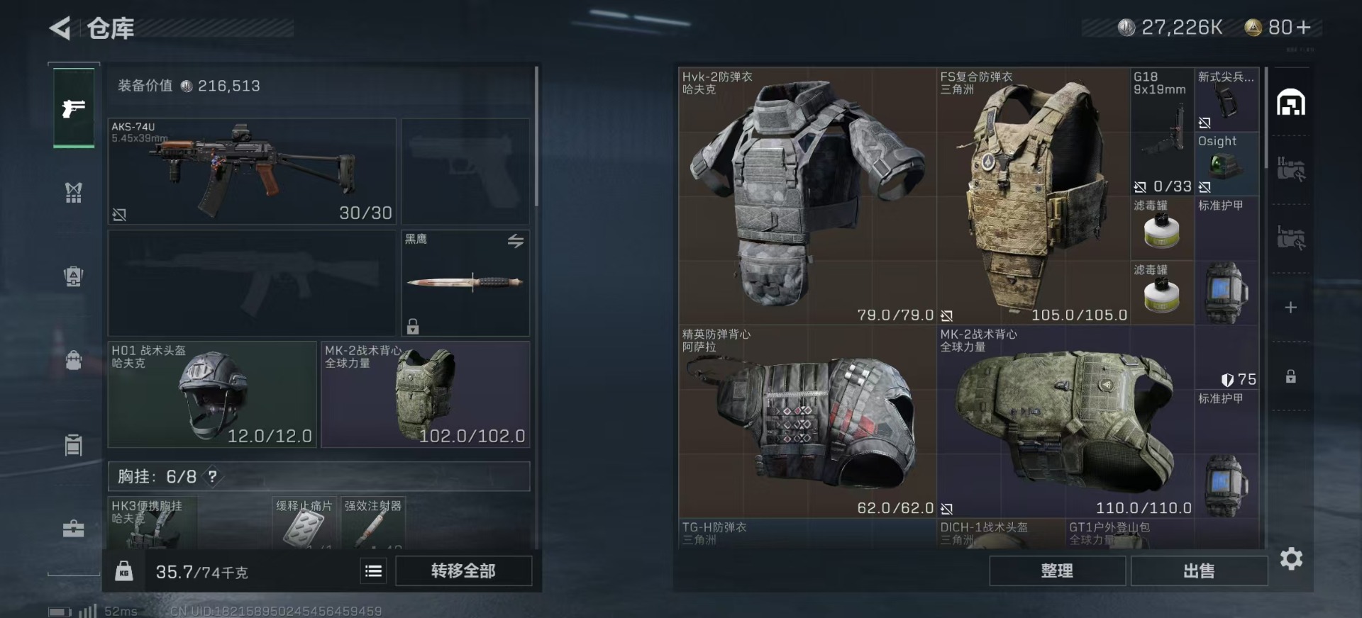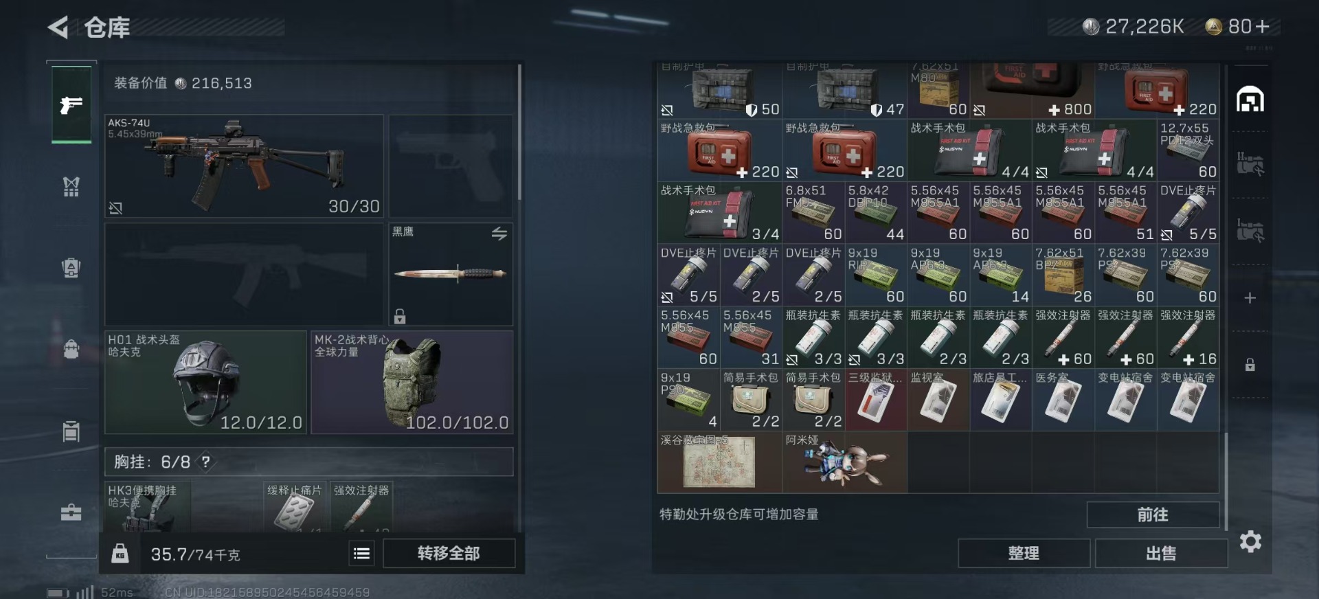- [11639679]总资产:122.1M 1干员外观 9传说枪械 哈夫币:92.307K 顶级安全箱(9.15到期) 可二次 安全保护中 可修改实名 优质装备:顶级安全箱(3x3) 烽火地带段位:黑鹰 全面战场段位:列兵 传说武器皮肤:SMG45冲锋枪-骑士,AWM狙击步枪-捞点薯条,腾龙突击步枪-捞点薯条,93R-捞点薯条,SR-3M紧凑突击步枪-特斯拉线圈,复合弓-黑-天际线,725双管霰弹枪-送葬人-无题密令,M4A1突击步枪-阿米娅,AK-12突击步枪-夜鹰 史诗武器皮肤:SR-3M紧凑突击步枪-英雄,G3战斗步枪-战场英杰,SG552突击步枪-尖端治疗,M1014霰弹枪-林中猎手,AS Val突击步枪-尖端治疗,M700狙击步枪-守夜人,Ash-12战斗步枪-守夜人,SR-25射手步枪-尖端治疗,MP5冲锋枪-深海恐惧,AKM突击步枪-林中猎手,M250通用机枪-囚徒,SV-98狙击步枪-林中猎手,SV-98狙击步枪-囚徒,SVD狙击步枪-暗夜猎手,SCAR-H战斗步枪-囚徒,腾龙突击步枪-无垢,MP7冲锋枪-无垢,PSG-1射手步枪-无垢,SVD狙击步枪-荒野求生,SR-3M紧凑突击步枪-荒野求生,QBZ95-1突击步枪-曙光,沙漠之鹰-曙光,S12K霰弹枪-曙光,QSZ92G-风林火山,ASh-12战斗步枪-刀锋 干员外观:露娜-黑·天际线
