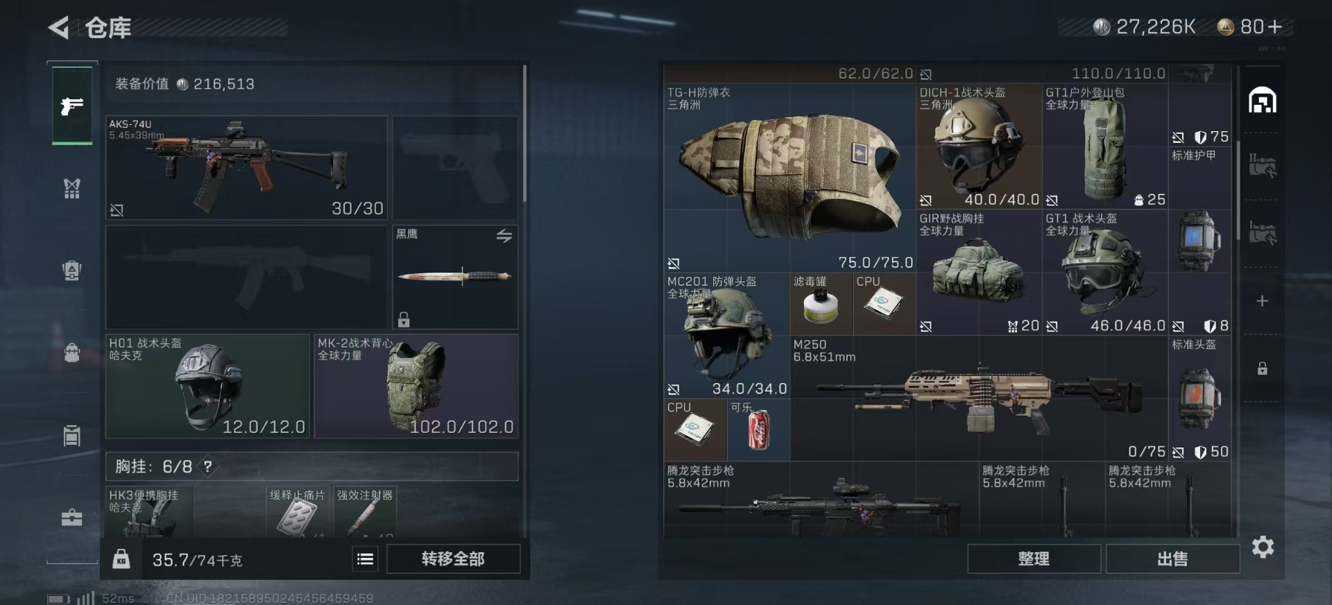 - [11252157]总资产:383 1近战传说 6传说枪械 顶级安全箱(3×3)9.15号到期 可二次 可修改实名 优质装备:近战-黑海,顶级安全箱(3x3) 烽火地带段位:铂金 全面战场段位:无段位 哈夫币:38.118 传说武器皮肤:UZI冲锋枪-特斯拉线圈,SR-3M紧凑突击步枪-特斯拉线圈,AK-12突击步枪-特斯拉线圈,725双管霰弹枪-送葬人-无题密令,勇士冲锋枪-能天使-午夜邮差 史诗武器皮肤:AUG突击步枪-蝮蛇,M700狙击步枪-蝮蛇,勇士冲锋枪-深海恐惧,AKM突击步枪-林中猎手,.357左轮-幸运时刻,M16A4突击步枪-竞赛选手,SVD狙击步枪-荒野求生,M1014霰弹枪-林中猎手,SV-98狙击步枪-林中猎手,PTR-32突击步枪-英雄,PSG-1射手步枪-无垢,AS Val突击步枪-典狱官,Vector冲锋枪-阿萨拉文明,M14射手步枪-黑鹰坠落,M700狙击步枪-竞技风