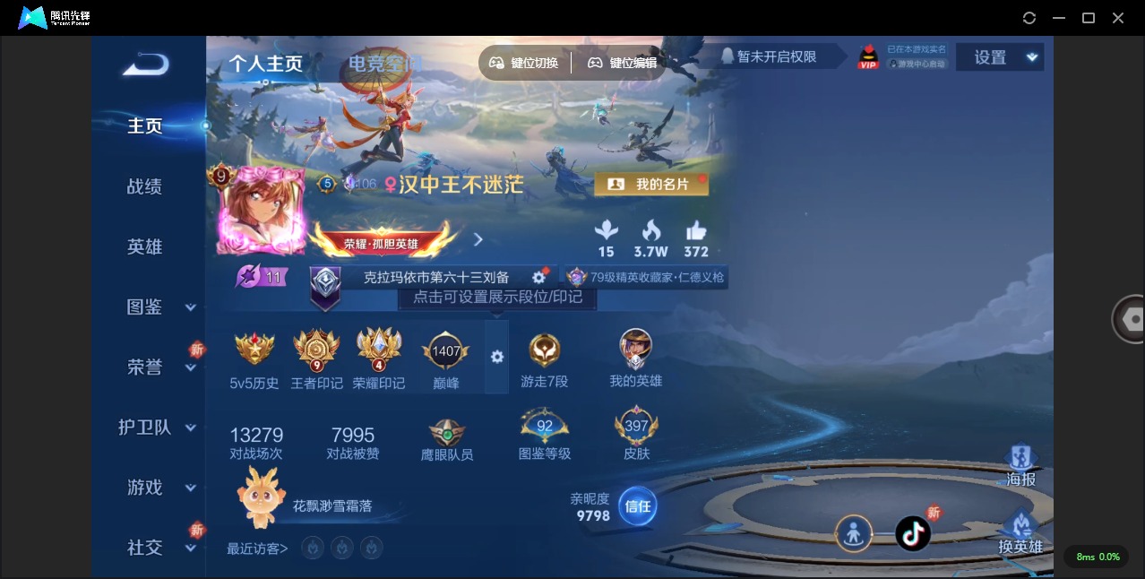 - PX_2095067-实名: 可修改 贵族等级: V7 英雄数: 124 皮肤数: 114 传说皮: 冠军飞将,黄金白羊座,猫影幻舞,超时空战士-狄仁杰,山海·苍雷引,乘龙·淬吴钩 限定皮: 御风骁将,龙胆,烈魂,孙行者,五谷丰年,神器·万象笔,山海·玄木吟
