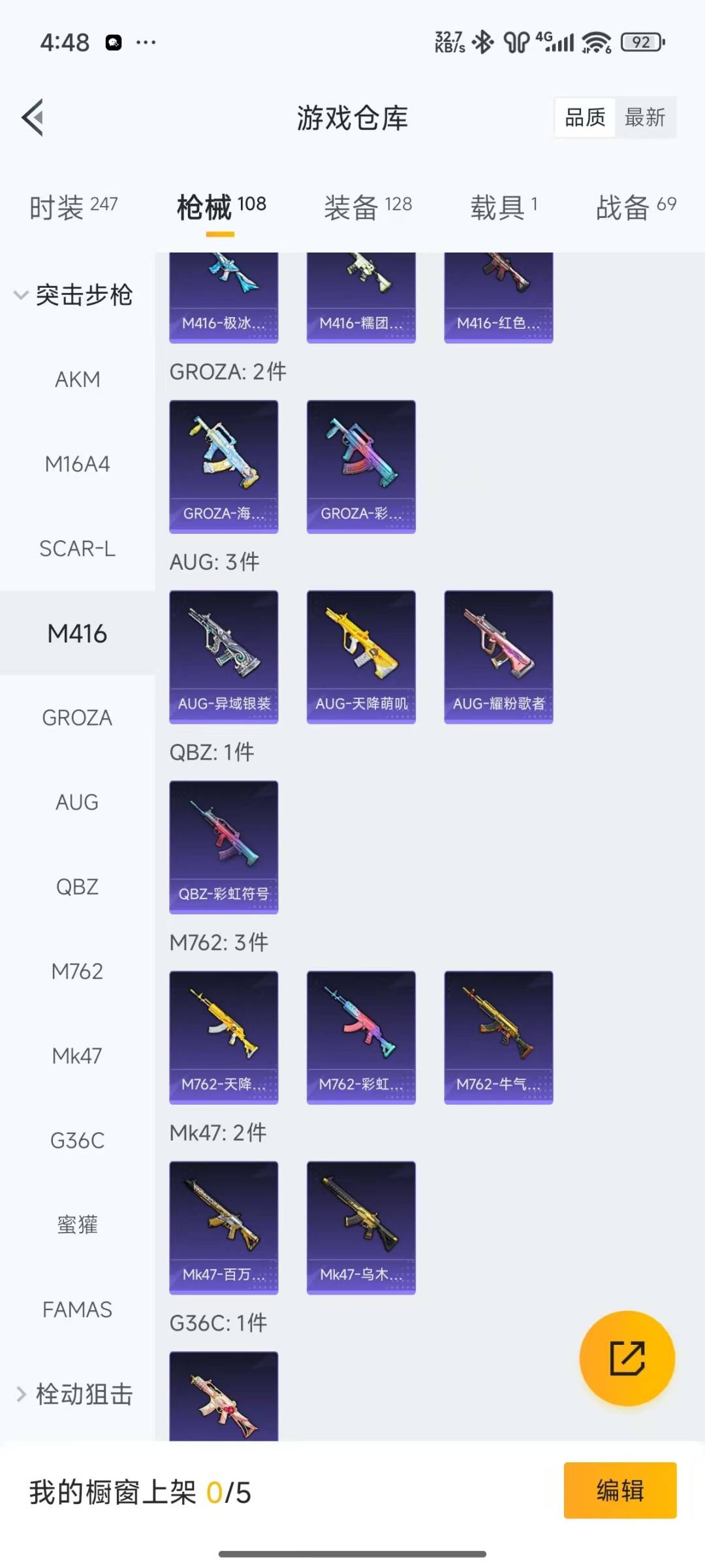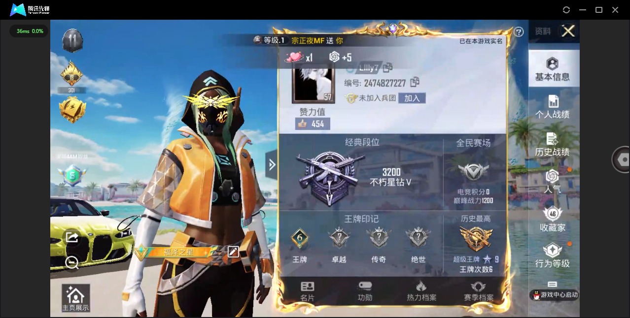 [11548322]2粉装 2特效枪 1载具 6印记 可二次 可修改实名 身法装备:初号机 觉醒Ver.(新紫螳螂),8号机(新粉螳螂),Mark.06(新蓝螳螂) 优质装备:宝马M4(圣保罗黄),破片手榴弹-瓶中星球,七级破片手榴弹-瓶中星球,星穹咏叹调,AKS-74U-星穹咏叹调 时装数:218 枪械数:99 战备数:1 热门装扮:初号机 觉醒Ver.(新紫螳螂) 五级特效枪:五级AKS-74U-星穹咏叹调 紫色装扮:SS23特训,SS21特训,SS31特训套装,SS30特训套装,SS33特训套装,顶瓜瓜,SS20特训,SS19特训,都市漫游者,长空猛禽,缤纷果语,耀眼新星,超能勇士,极光猎影,魅力单车,鹤鸣,黄色名流,黄色运动,黑色伏地魔,龙的传人,龟仙人,冰河战士,龙魂突击队,蝶变,极速红龙,海岛探路者,幻世战舞者,怒火燎原,探宝勇士,湖蓝色名流,破蛋小黄鸡,甜蜜告白,牛气冲天,灰色格斗者,牛气满满,猛禽,SS29特训,多纳泰罗,SS28特训,创世·追猎,8号机(新粉螳螂),Mark.06(新蓝螳螂),异域银装,玉兔迎春,竞技名士,SS25特训,SS27特训,大橘大利,星渊小夜曲,星影赞美诗,小鸟芋圆,SS12特训,粉恋花,蓝冰羽,紫幽梦,SS32特训服(SS32特训套装),墨青刃影 优质战备:霓虹漫游飞行器,守护天翼降落伞,创世·救赎降落伞,初号机 觉醒Ver.降落伞,星途旅人降落伞,英伦信使飞行器,雀灵庇佑飞行器,绯果甜心降落伞,闪光银龙降落伞,飞行器-天之羽翼