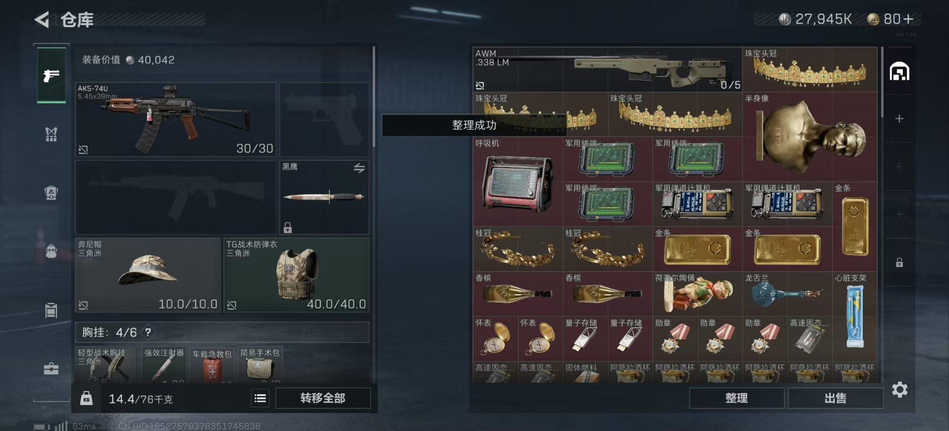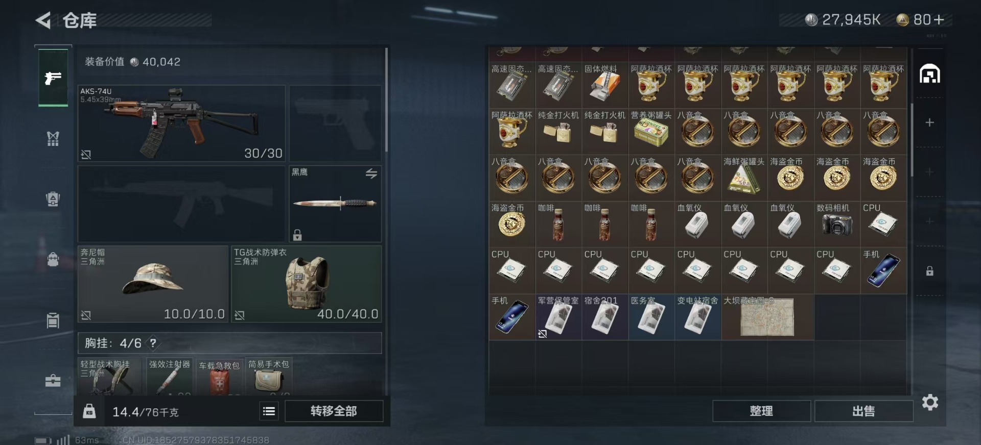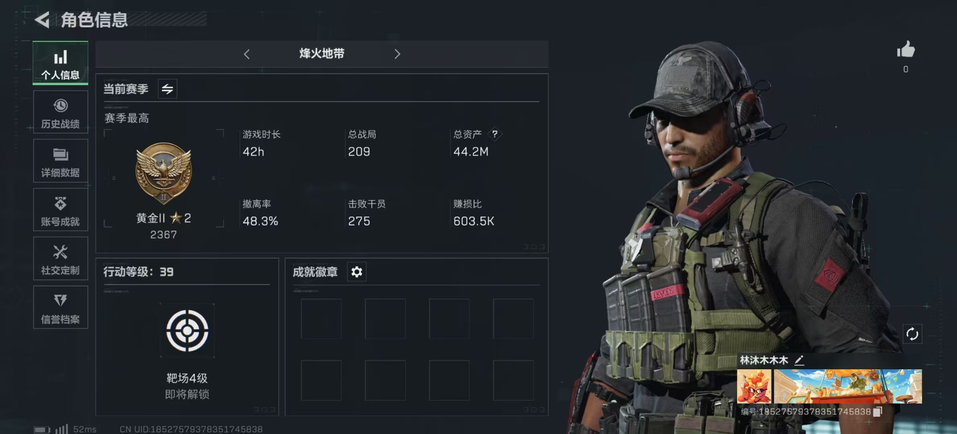 [11548969]总资产:44.2M 8传说枪械 哈夫币:27.945K 进阶安全箱(2×2)9.15号到期 可二次 可修改实名 烽火地带段位:黄金 全面战场段位:无段位 传说武器皮肤:M16A4突击步枪-狩猎时刻,AWM狙击步枪-捞点薯条,腾龙突击步枪-捞点薯条,93R-捞点薯条,Vector冲锋枪-狩猎时刻,Vector冲锋枪-能天使-午夜邮差,G3战斗步枪-狩猎时刻,M4A1突击步枪-阿米娅 史诗武器皮肤:QJB201轻机枪-Old Habits,SV-98狙击步枪-林中猎手,M250通用机枪-囚徒,SCAR-H战斗步枪-囚徒