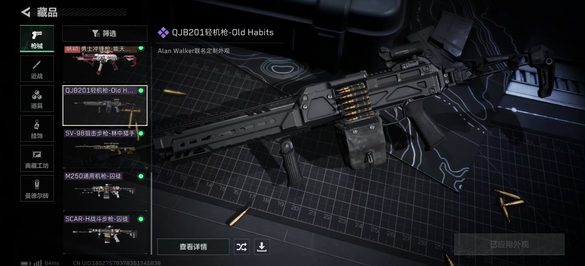 - [12281398]【特价急出/详情看图】:安卓 手Q-1特效枪-1载具-1.5w热力值-1王牌印记-53套装-56枪皮【热门品类】:套装-龟仙人,小恶魔头饰【粉色载具】:玛莎拉蒂Ghibli(蓝)【粉色枪皮等级】:Kar98K-巳巳如意(一级)
