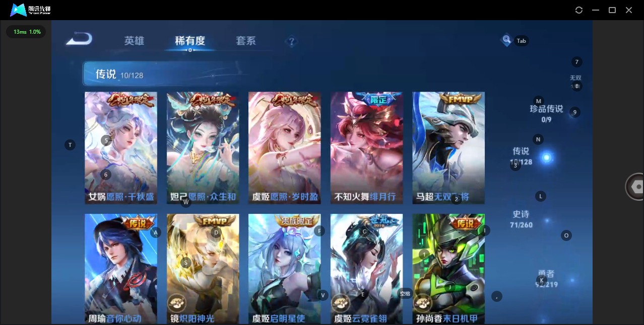 - [11625042]V7 1典藏 4传说 107英雄 122皮肤 可修改实名 优质装备:全息碎影(猴子典藏),末日机甲-孙尚香(绿蚂蚱),地狱火,仲夏夜之梦(大飞蛾) 限定皮:凤求凰(白切鸡),时之彼端,飞衡(韩信年限),遇见飞天,梁祝,李小龙,真爱至上,大圣娶亲 史诗皮:紫霞仙子,电玩小子(小书包),黄金分割率,特工魅影,千年之狐,冰冠公主,摇滚巨星,水果甜心,星夜王子,德古拉伯爵,暗隐猎兽者,鬼剑武藏,舞动绿茵,缤纷独角兽,乘风破浪,逐浪之夏,水晶猎龙者,圣诞恋歌,鹰眼统帅,王者之锤,魅力维加斯
