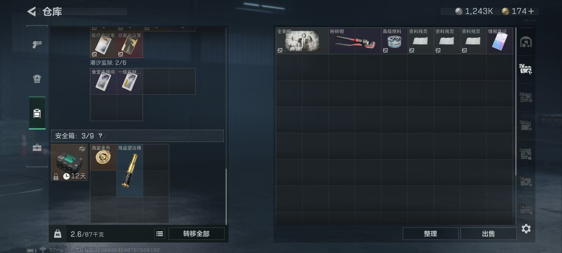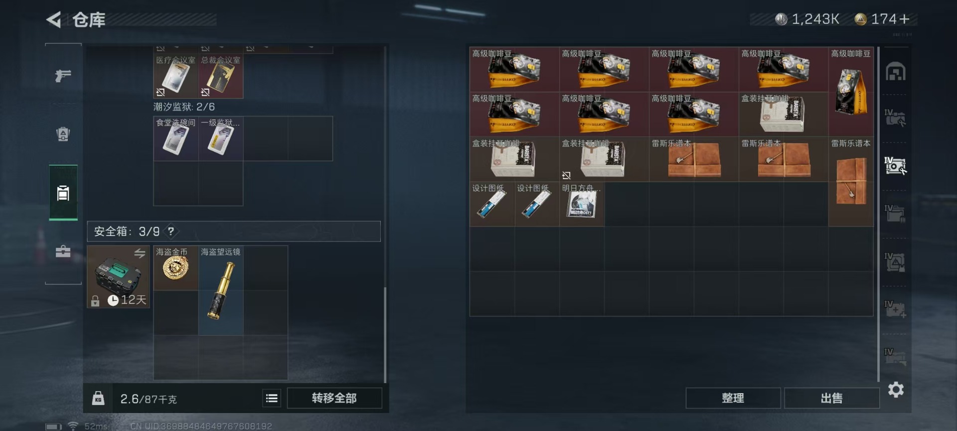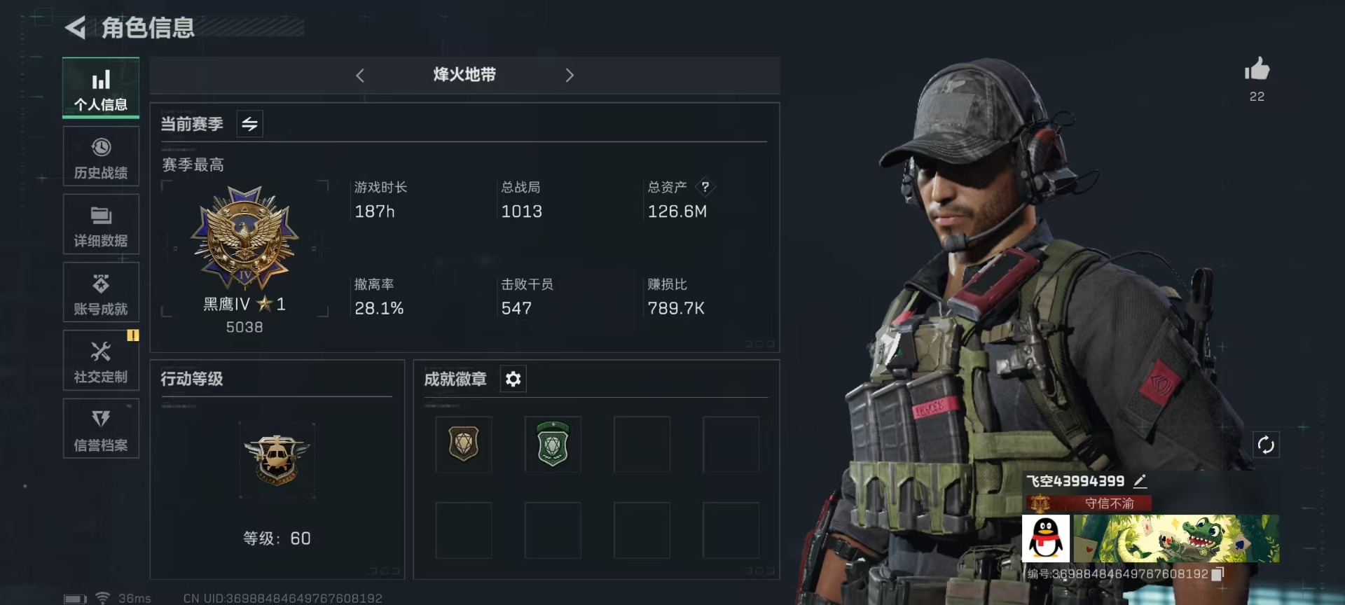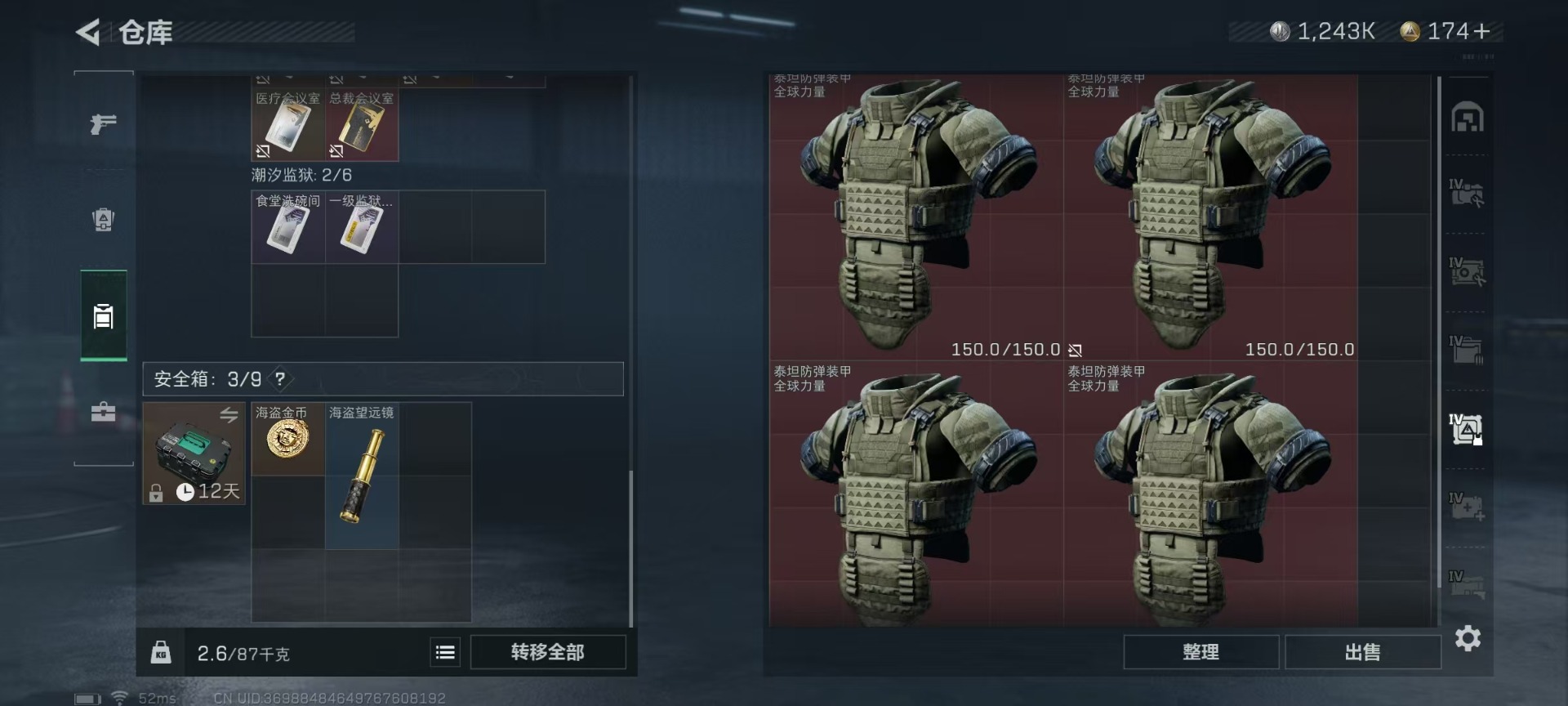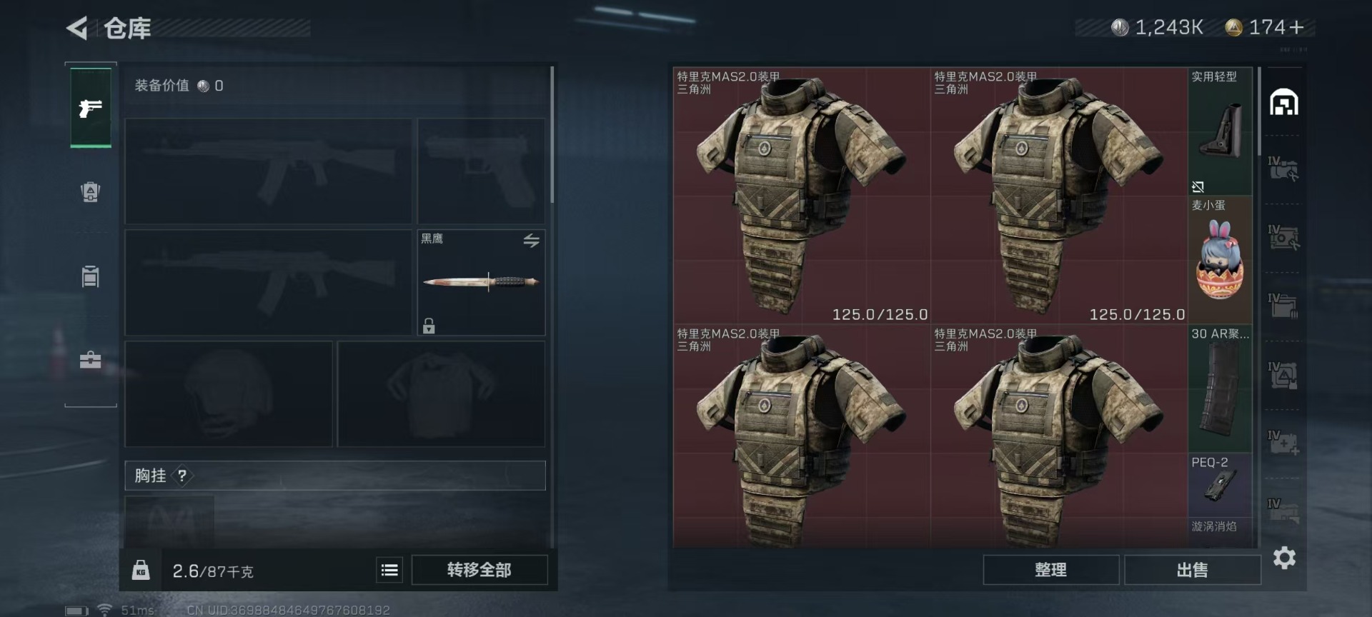 [11549813]总资产:126.6M 6传说枪械 哈夫币:1.243K 顶级安全箱(3×3)9.15号到期 可二次 可修改实名 优质装备:顶级安全箱(3x3) 烽火地带段位:黑鹰 全面战场段位:无段位 传说武器皮肤:SMG45冲锋枪-骑士,UZI冲锋枪-特斯拉线圈,AK-12突击步枪-特斯拉线圈,SR-3M紧凑突击步枪-特斯拉线圈,复合弓-黑-天际线,M4A1突击步枪-阿米娅 史诗武器皮肤:M16A4突击步枪-竞赛选手,M1014霰弹枪-林中猎手,MP5冲锋枪-深海恐惧,AKM突击步枪-林中猎手,SR-3M紧凑突击步枪-纷争,SV-98狙击步枪-林中猎手,M250通用机枪-囚徒,SV-98狙击步枪-囚徒,M14射手步枪-禁卫,QBZ95-1突击步枪-曙光,沙漠之鹰-曙光,SVD狙击步枪-阿萨拉工艺,S12K霰弹枪-曙光,PKM通用机枪-英雄,M700狙击步枪-竞技风