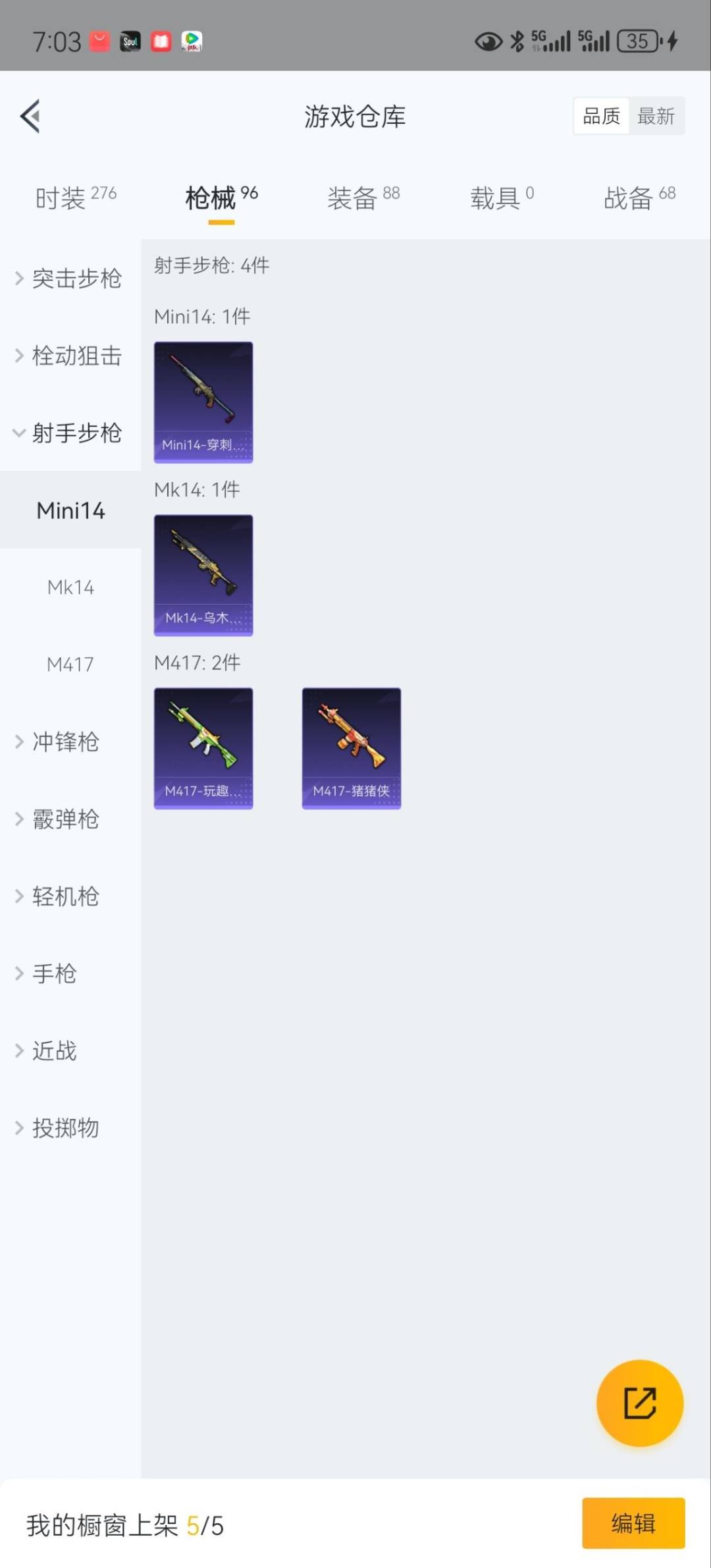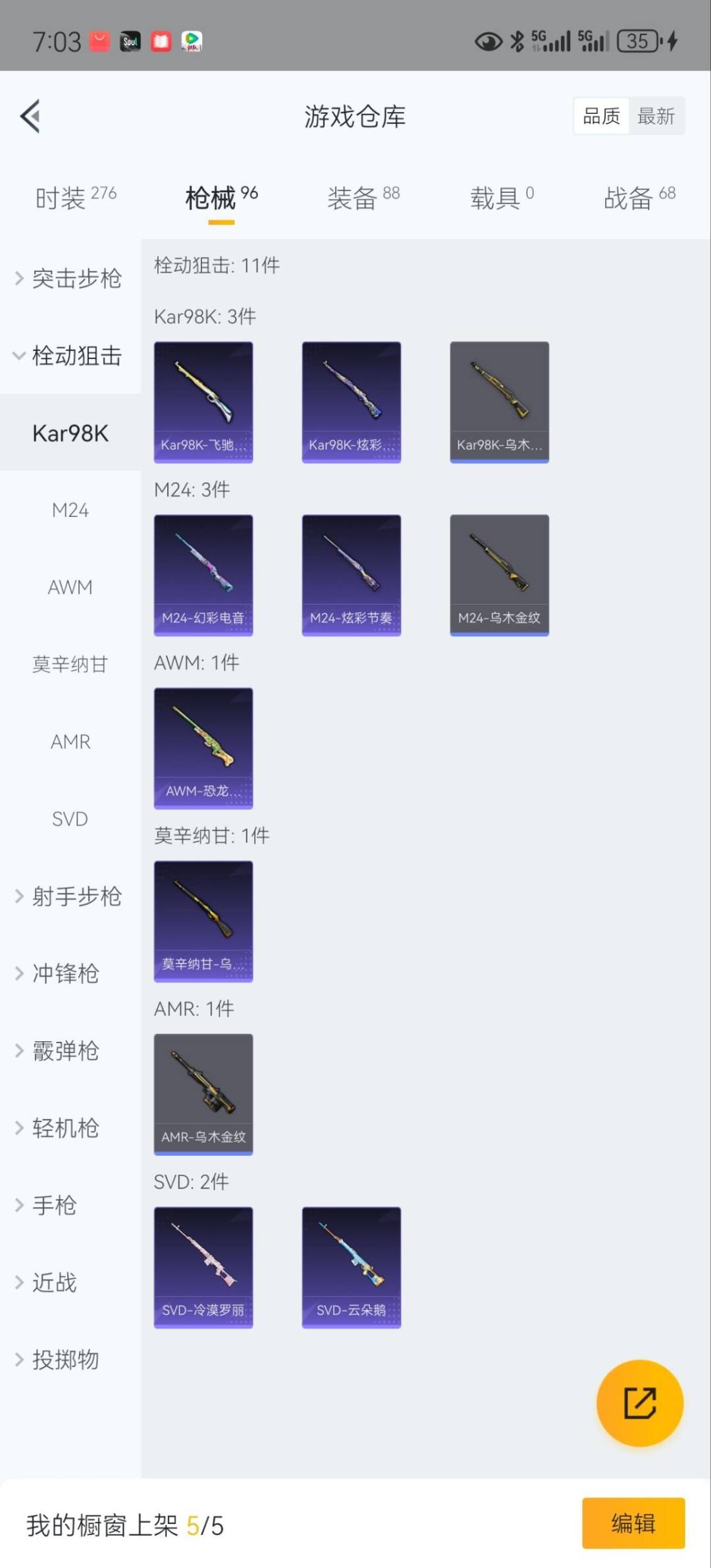 - [12061423]4粉装 11特效枪 2载具 15印记 可二次 可修改实名 身法装备:暗影哥特(红眼罩),Mark.06(新蓝螳螂) 优质装备:辉羽雀灵自行车,特斯拉Roadster(水滴蓝),六级Kar98K-创世·救赎,Kar98K创世·救赎,P90-金丰海韵,七级P90-金丰海韵,M762-青锋波束,GROZA-镜光银凌,智耀战神,AUG-圣斗士星矢,星穹咏叹调,AKS-74U-星穹咏叹调,MK14-甜梦熊击,Mk14-爆裂游戏,Kar98K-巳巳如意 热门装扮:暗夜玫瑰,金丰海韵,呆萌铁蟹 稀有枪皮:MG-36-沧焰双生,DP-28-豹影疾电 五级特效枪:五级M762-青锋波束,五级GROZA-镜光银凌,五级Kar98K-巳巳如意,五级m14爆裂游戏,五级DP-28-豹影疾电,五级MG-36-沧焰双生,五级MK14-甜梦熊击,五级AUG-圣斗士星矢 四级特效枪:四级AKS-74U-星穹咏叹调 紫色装扮:SS23特训,虚空漩涡,SS30特训套装,SS31特训套装,云朵鹅,雪绒豹,SS33特训套装,旭日情侣,诡诞巡游,SS21特训,田园牧歌,轻风白浪,和煦暖阳,SS22特训,顶瓜瓜,混沌火种,冷焰舞者,吉莉礼服,夏日音浪,完美偶像,帅气教官,幻影武者,冰川特警,灵公主,人气偶像,SS16特训,瑞龙福将,团圆交子,SS17特训,治愈之星,科技之星,SS14特训,萌趣颜团子,特种颜团子,青春冒险家,潮流游乐家,SS15特训,蝎王蛇后,SS20特训,竞技角斗士,异彩先驱,SS18特训,SS19特训,战地菁英,黄色名流,青年教官,风暴特警,飞行日记,骑行爱好者,魅力单车,鹤鸣,麻辣教官,黄色伏地魔,黄色运动,黑色伏地魔,龙的传人,龟仙人,冰河战士,龙魂突击队,蝶变,酷潮明星,霓虹极客,野性战心,长空猛禽,雨林探路者,银刃勇者大衣,熔岩游骑兵连帽夹克,无面战甲,绛羽幽主,街头潮人,深蓝色名流,湖蓝色名流,灰色格斗者,灼焰舞者,炫蓝之夏,热血青春,牛气冲天,牛气满满,海岛探路者,战地督导,探宝勇士,极地朋克,柠萌假日,格斗先锋,橘黑制服,沙漠毒蛇,竞技达人朋克,红色运动,绮丽涂鸦,缤纷果语,蓝彩潮人,蓝色运动,虎虎生威吉莉,空投萌叽,特殊使命,特训学院,狂沙舞者,猎鹰,猛禽,王牌教练,甜蜜告白,甜蜜熊情侣,空岛之星,白熊同盟,白色伏地魔,破晓战魂,破蛋小黄鸡,福星高照,萝兰蝴蝶,SS2