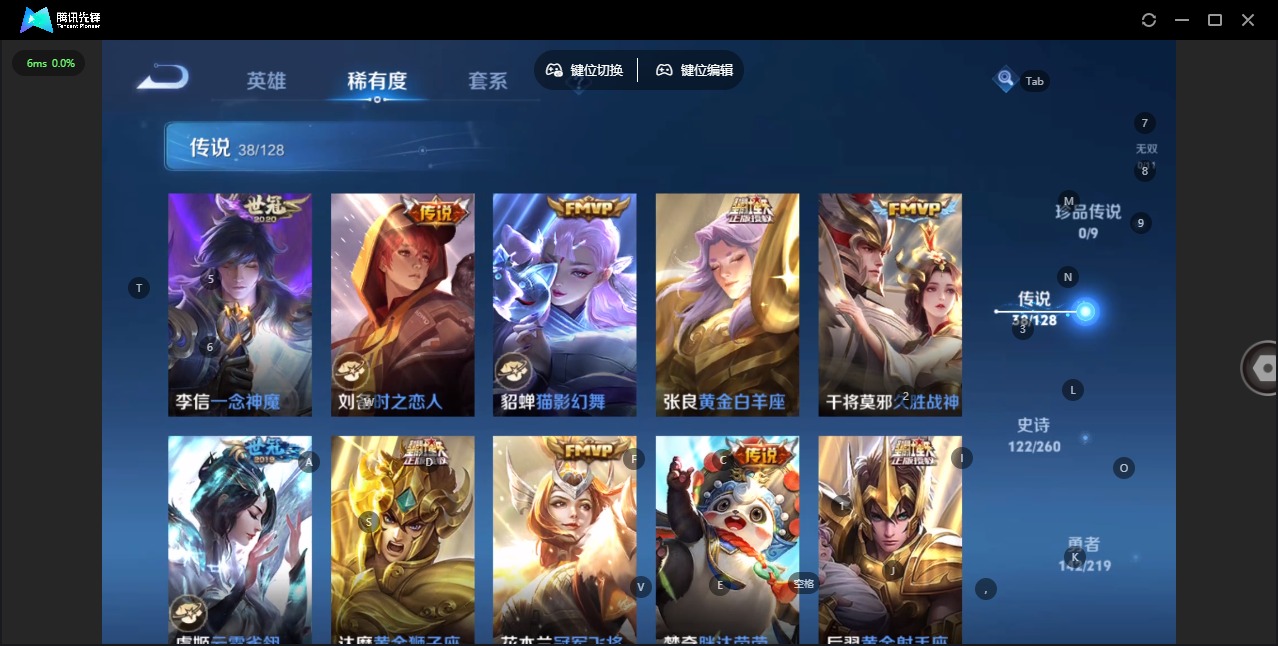 - [12229058]V6 3传说 120英雄 139皮肤 可修改实名 优质装备:末日机甲-孙尚香(绿蚂蚱) 珍宝阁皮:蔷薇恋人 限定皮:至尊宝,白虎志(电光耗子),凤求凰(白切鸡),五谷丰年,天狼征服者,李小龙,逐梦之光,冰霜恋舞曲 史诗皮:戍鼓铭心,苍穹之光,电玩小子(小书包),偶像歌手,龙骑士(小龙虾),暗夜猫娘,水果甜心,心灵骇客,功夫厨神,暗隐猎兽者,幽灵船长,鬼剑武藏,舞动绿茵,繁星吟游(呼啦呼啦),水晶猎龙者,金属风暴,鹰眼统帅,魅力维加斯,无心