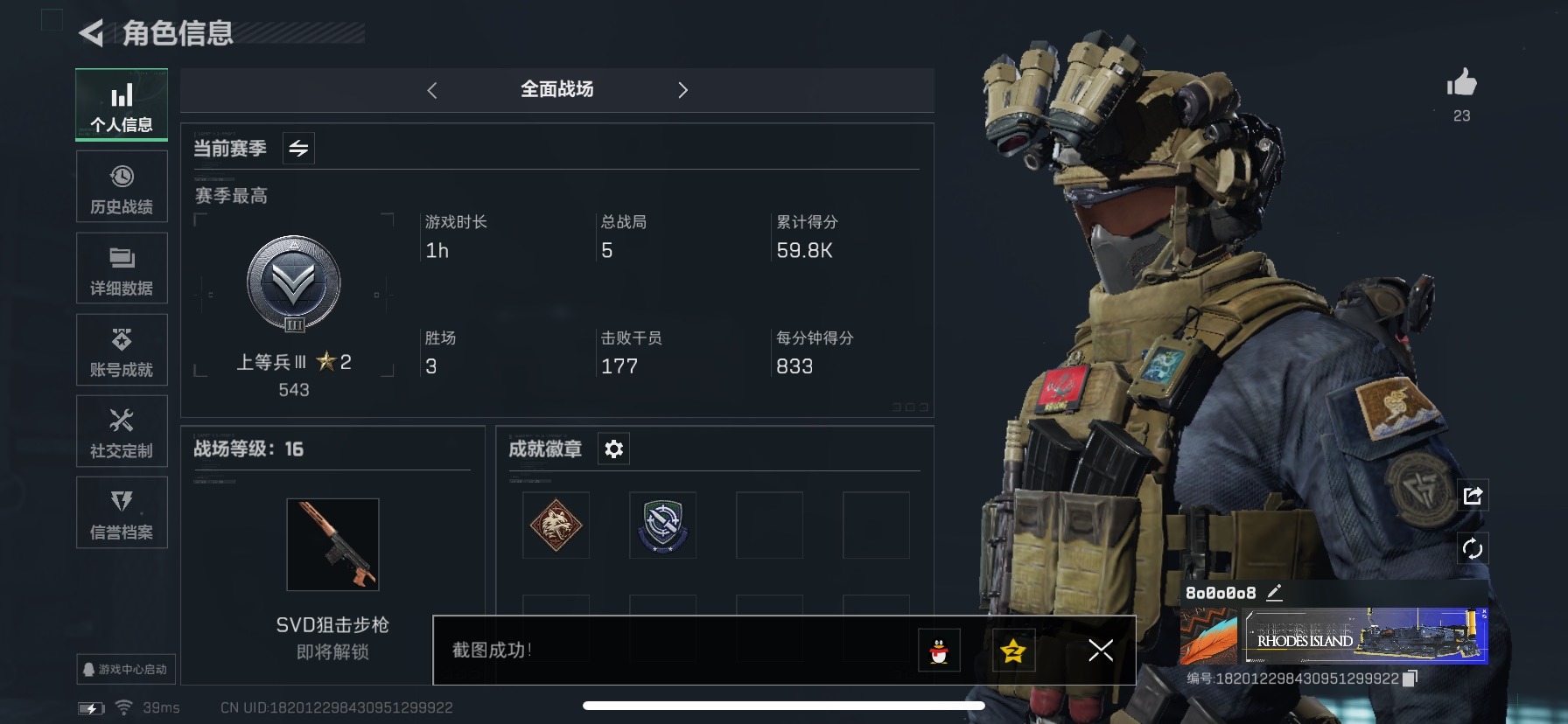 - PX_2094641- 苹果手Q-20王牌印记-有战神框-6粉装-5特效枪-0载具-89236热力值-229套装-290枪皮-6卓越印记-2传奇印记 【6粉装】,缤纷油彩,放客神游,冷漠罗丽,荧海星豚,香水柠檬,数码大师 【5特效枪】SCAR-L-锦绣绵绵-5级 M416-五爪金龙-7级 M416-电玩时刻-1级 AUG-圣斗士星矢-7级 Kar98K-巳巳如意-1级 【4稀有紫装】,雪山精英,