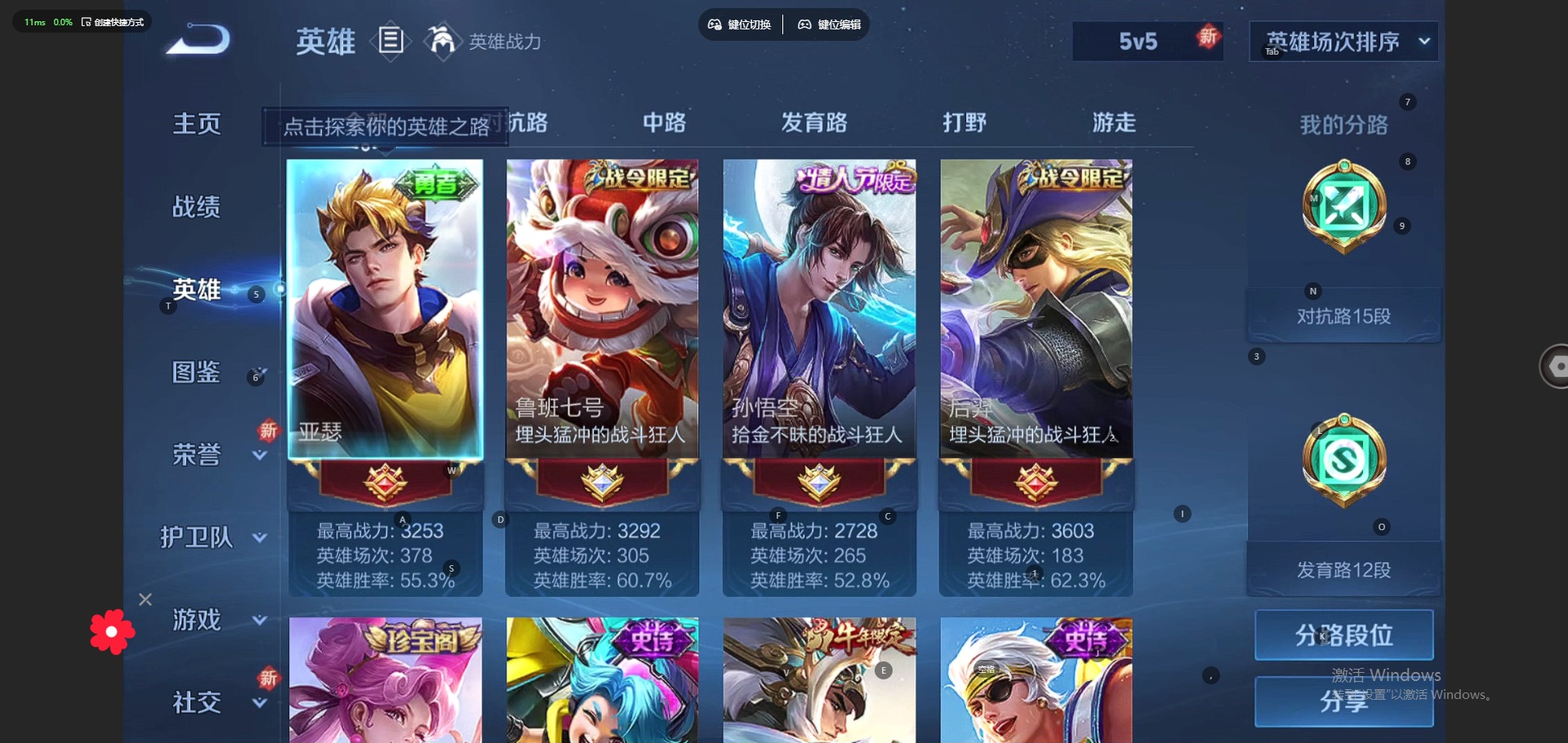 - [12090528]V7 7传说 123英雄 192皮肤 可修改实名 女号 优质装备:黄金射手座,地狱火,末日机甲-孙策,山海·炽霜斩(李信年限),山海·苍雷引(电光曜子) 珍宝阁皮:优雅恋人,蔷薇恋人 限定皮:鸣野蒿,遇见飞天,齐天大圣,五谷丰年,山海·玄木吟(马可年限) 史诗皮:龙之律动,百相守梦-黄忠,织梦人,白龙吟,特工魅影,江河有灵,百解令(蒙犽),龙骑士(小龙虾),猫狗日记-孙策,时之恋人-孙尚香,乱世虎臣,节奏热浪,修罗,女仆咖啡,水果甜心,绅士熊喵,心灵骇客,功夫厨神,德古拉伯爵,暗隐猎兽者,鬼剑武藏,暗渊魔法,纤云弄巧,拒霜思,乘风破浪,逐浪之夏,水晶猎龙者,曙光守护者,箭羽风息,金属风暴,圣诞恋歌,鹰眼统帅,魅力维加斯,无心,未来纪元-赵云
