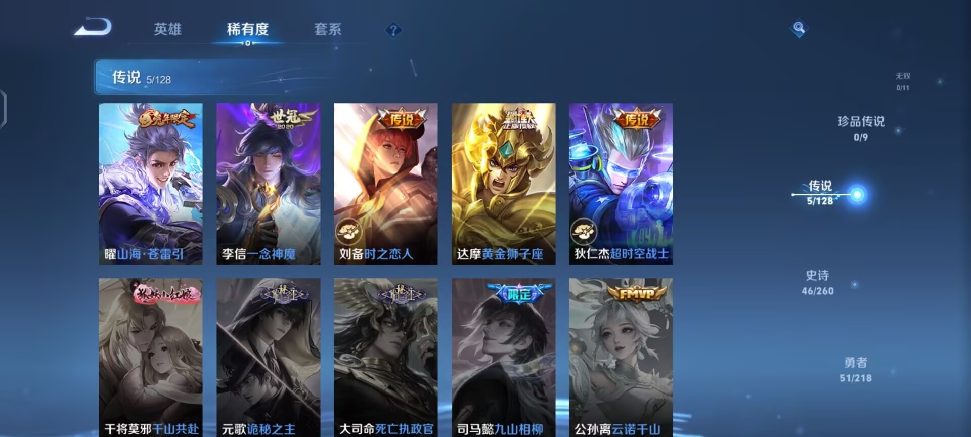 - [11529508]V9 1典藏 34传说 125英雄 344皮肤 可修改实名 优质装备:全息碎影(猴子典藏),黄金狮子座,黄金射手座,云鹰飞将(小将军),黄金白羊座,炽阳神光,一念神魔,仲夏夜之梦(大飞蛾),飞鸢探春,音你心动-周瑜,李逍遥,乞巧织情,时之恋人-刘备(电焊工),游龙清影(小青龙),淬星耀世,末日机甲-孙策,无双飞将,鲁班七号-时之奇旅,大乔-时之奇旅,澜逐花归海,琥珀纪元铠,琥珀纪元马超,金乌负日,黄金天蝎座 传说皮:乘龙·问璇玑(孙尚香年限),乘龙·铭钟鼎(赵云年限),乘龙·淬吴钩(孙策年限),典韦战鼓燎原,落雪白狼,铠冥王哈迪斯 珍宝阁皮:胡桃夹子,蔷薇恋人 限定皮:傲雪梅枪,白晶晶,时雨天司(水龙头),至美·乘鲤谣,至美·化雀舞,影龙天霄,遇见飞天,匿光决锋者,五谷丰年,辉光之辰,孙行者,大圣娶亲,玉兔公主,无尽星芒,山海·玄木吟(马可年限) 史诗皮:化蝶舞,灵蛊蚀心,怒海争锋,埋骨钱,芈月浮光幕影,琥珀纪元伽罗,决胜骁骑,上官婉儿群星魔术团,奇遇星旅,蔬乡物语(鲁班七号),曹操夜都魔契,超元猎域,乘龙·聚宝船(安琪拉年限),乘龙·忆丹青(大乔年限),百相守梦-黄忠,遇见神鹿,紫霞仙子,黄金分割率,特工魅影,千年之狐,永昼,江河有灵,匿光侦查者,鹤归松栖(赵怀真),真我赫兹(百里守约),魅语,百解令(蒙犽),高渐离燃音魔法,无限星赏官,青蛇,偶像歌手,晚萤,电玩·爆裂旋风,龙骑士(小龙虾),末日机甲-吕布,猫狗日记-孙策,猫狗日记-大乔,时之恋人-孙尚香,乱世虎臣,修罗,女仆咖啡,摇滚巨星,水果甜心,绅士熊喵,天才门将,星夜王子,心灵骇客,功夫厨神,德古拉伯爵,暗隐猎兽者,幽灵船长,鬼剑武藏,暗渊魔法,心灵战警,乐园奇幻夜,舞动绿茵,纤云弄巧,拒霜思,缤纷独角兽,乘风破浪,逐浪之夏,水晶猎龙者,曙光守护者,箭羽风息,金属风暴,圣诞狂欢,圣诞恋歌,鹰眼统帅,暗夜贵公子,魅力维加斯,赏金猎手,奇遇舞章,天秀·音浪,千筹问战,顽趣-阿古朵,无心,未来纪元-赵云