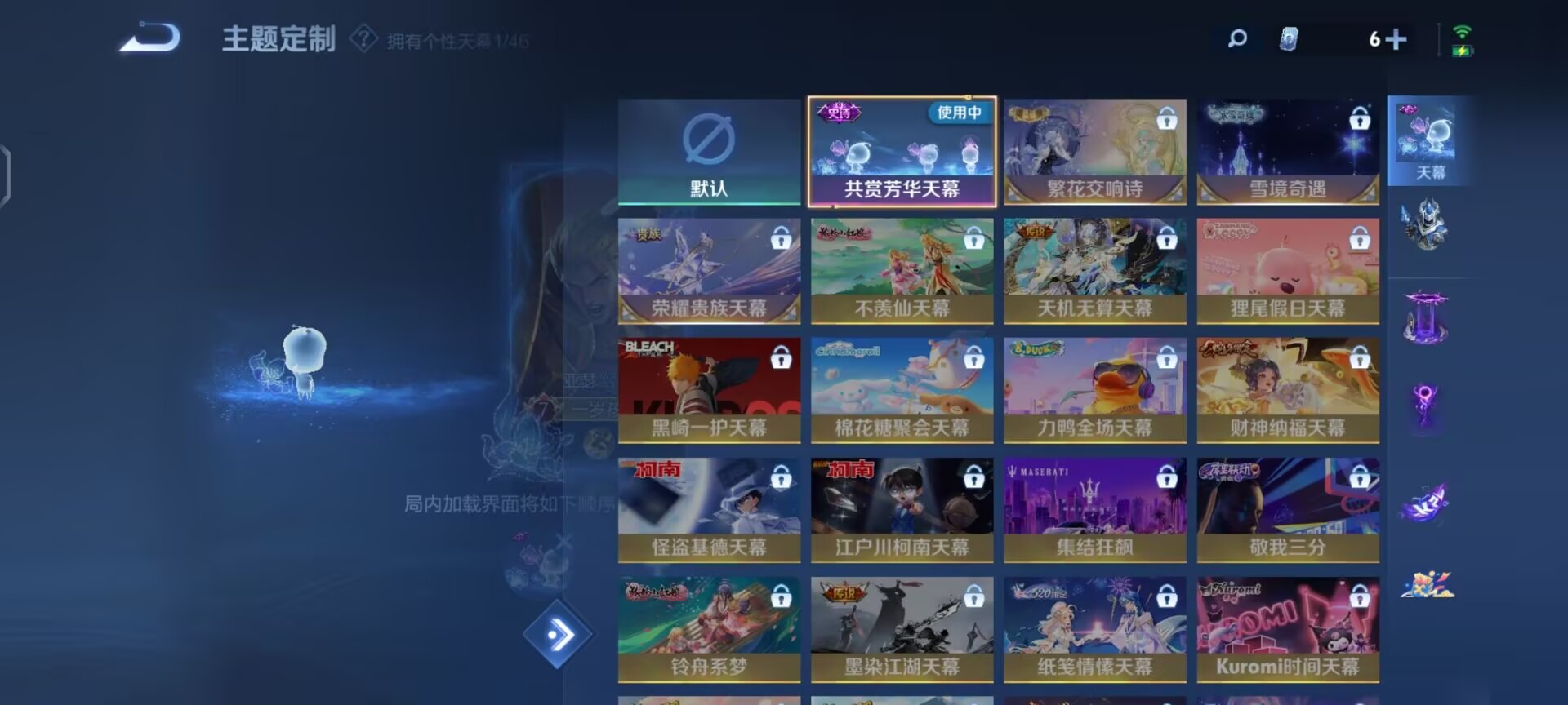 兰陵王暗隐猎兽者,刘邦德古拉伯爵,貂蝉唤灵魅影,夏侯惇乘风破浪,阿轲暗夜猫娘,阿轲节奏热浪,花木兰水晶猎龙者,李白千年之狐,蒙犽百解令,曹操幽灵船长,亚瑟心灵战警,伽罗琥珀纪元,程咬金功夫厨神,孙策猫狗日记,百里玄策热力回旋,雅典娜黎明之约,李元芳逐浪之夏,镜玫瑰异探,诸葛亮黄金分割率,司马懿暗渊魔法,嫦娥拒霜思,刘禅天才门将,橘右京修罗