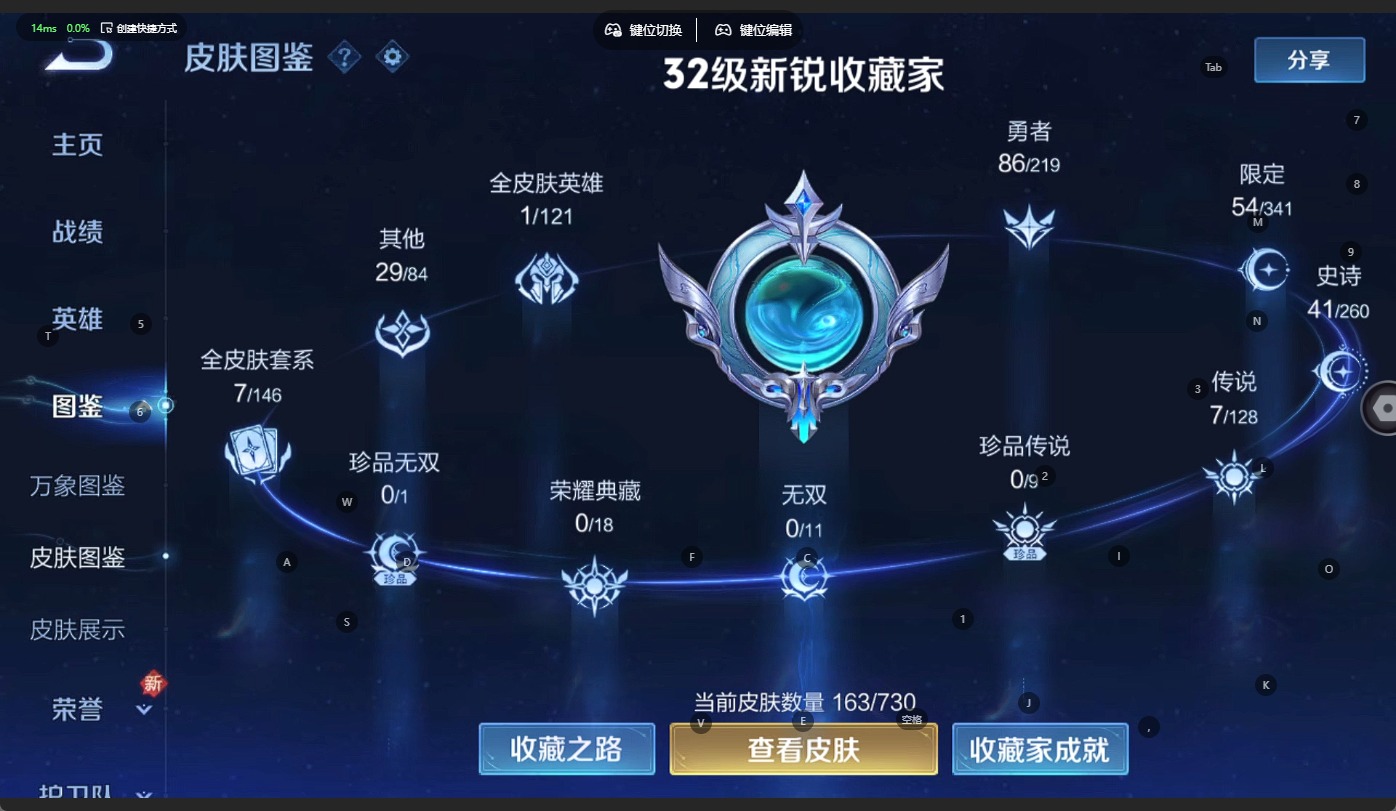 - PX_2106345-Q/永恒钻石/148皮肤/121英雄/0典藏/0珍品无双/0无双/0珍品传说/9传说/48史诗/7稀有英雄 【9 传说皮肤】逐花归海 澜,电玩·雷克斯 澜,游龙清影 西施,记忆之芯 公孙离,炽阳神光 镜,黄金射手座 后羿,时之恋人 刘备,淬星耀世 赵云,鸣野蒿 桑启, 【48 史诗皮肤】超元猎域 百里玄策,暗渊魔法 司马懿,燃音魔法 高渐离,猫狗日记 大乔,妄想食味 姬小满,
