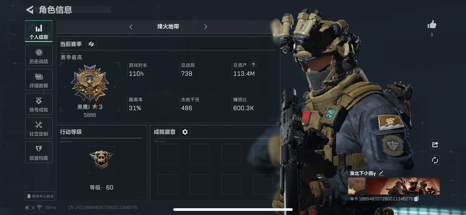 [11552674]总资产:113.4M 10传说枪械 哈夫币:41.705K 可二次 可修改实名 优质装备:顶级安全箱(3x3) 烽火地带段位:黑鹰 全面战场段位:无段位 传说武器皮肤:93R-捞点薯条,AWM狙击步枪-捞点薯条,腾龙突击步枪-捞点薯条,AK-12突击步枪-特斯拉线圈,CAR-15突击步枪-阿米娅,SR-3M紧凑突击步枪-特斯拉线圈,UZI冲锋枪-特斯拉线圈,勇士冲锋枪-能天使-午夜邮差,复合弓-黑-天际线,M4A1突击步枪-阿米娅 史诗武器皮肤:M16A4突击步枪-竞赛选手,SV-98狙击步枪-林中猎手,SV-98狙击步枪-囚徒,沙漠之鹰-曙光,SVD狙击步枪-阿萨拉工艺