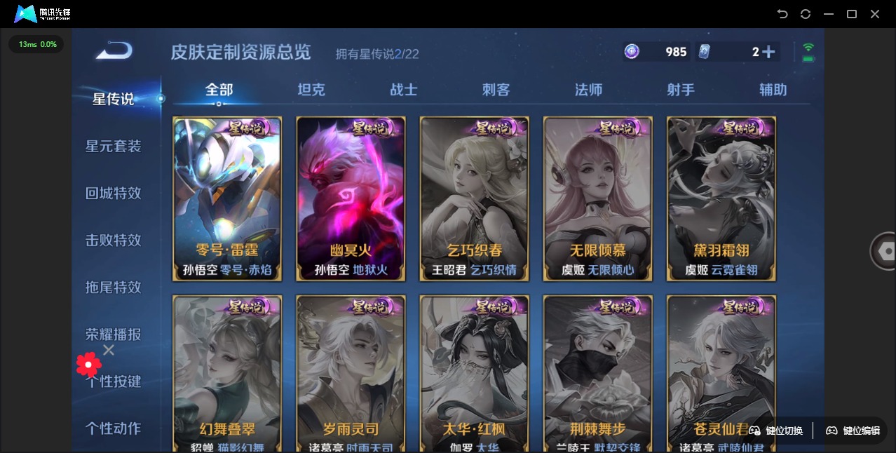 - [11227357]V6 1典藏 1珍品传说 2传说 123英雄 204皮肤 可修改实名 金蝉小国标 荣耀水晶:星域神启(倪克斯贼亮) 珍品传说:怪盗基德 传说皮:冠军飞将 珍宝阁皮:万物之道,蔷薇恋人 限定皮:逐霄战戟,鸣野蒿,遇见飞天,高山流水,五谷丰年,梁祝,孙行者,一生所爱,大圣娶亲 史诗皮:星界战将,器灵·浮梦炉,破空之剑,紫霞仙子,白龙吟,黄金分割率,千年之狐,江河有灵,蒙恬荣光圣徽,冰冠公主,魅语,末日机甲-吕布,乱世虎臣,女仆咖啡,摇滚巨星,水果甜心,天才门将,星夜王子,心灵骇客,时之奇旅-安琪拉,功夫厨神,暗隐猎兽者,幽灵船长,鬼剑武藏,心灵战警,舞动绿茵,缤纷独角兽,逐浪之夏,水晶猎龙者,金属风暴,原初追逐者,圣诞恋歌,鹰眼统帅,魅力维加斯,黎明之约,无心