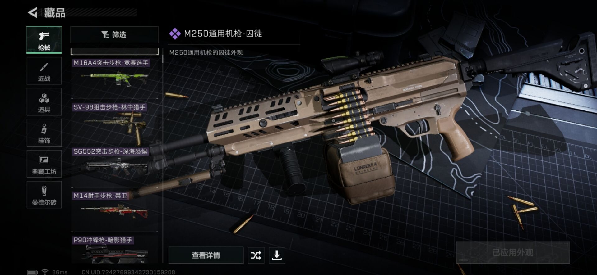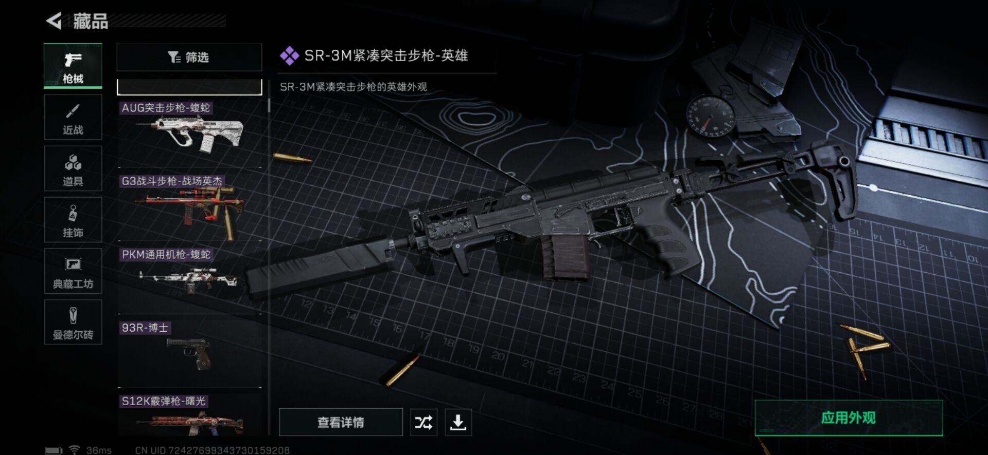 - PX_2088404- 可二次 安卓手Q-11王牌印记-4粉装-9特效枪-0载具-55060热力值-147套装-165枪皮-0卓越印记-0传奇印记, 【4粉装】,庄周梦蝶,萨利娅,极限特训,烟云彩露, 【9特效枪】,AKM-绿萝繁花-5级,SCAR-L-锦绣绵绵-5级,M416-电玩时刻-5级,GROZA-镜光银凌-5级,AUG-暖羊咩咩-5级,Kar98K-巳巳如意-5级,AMR-智耀战神-5级