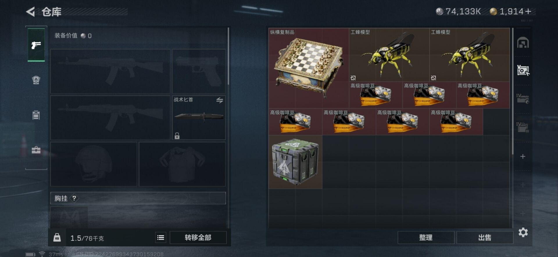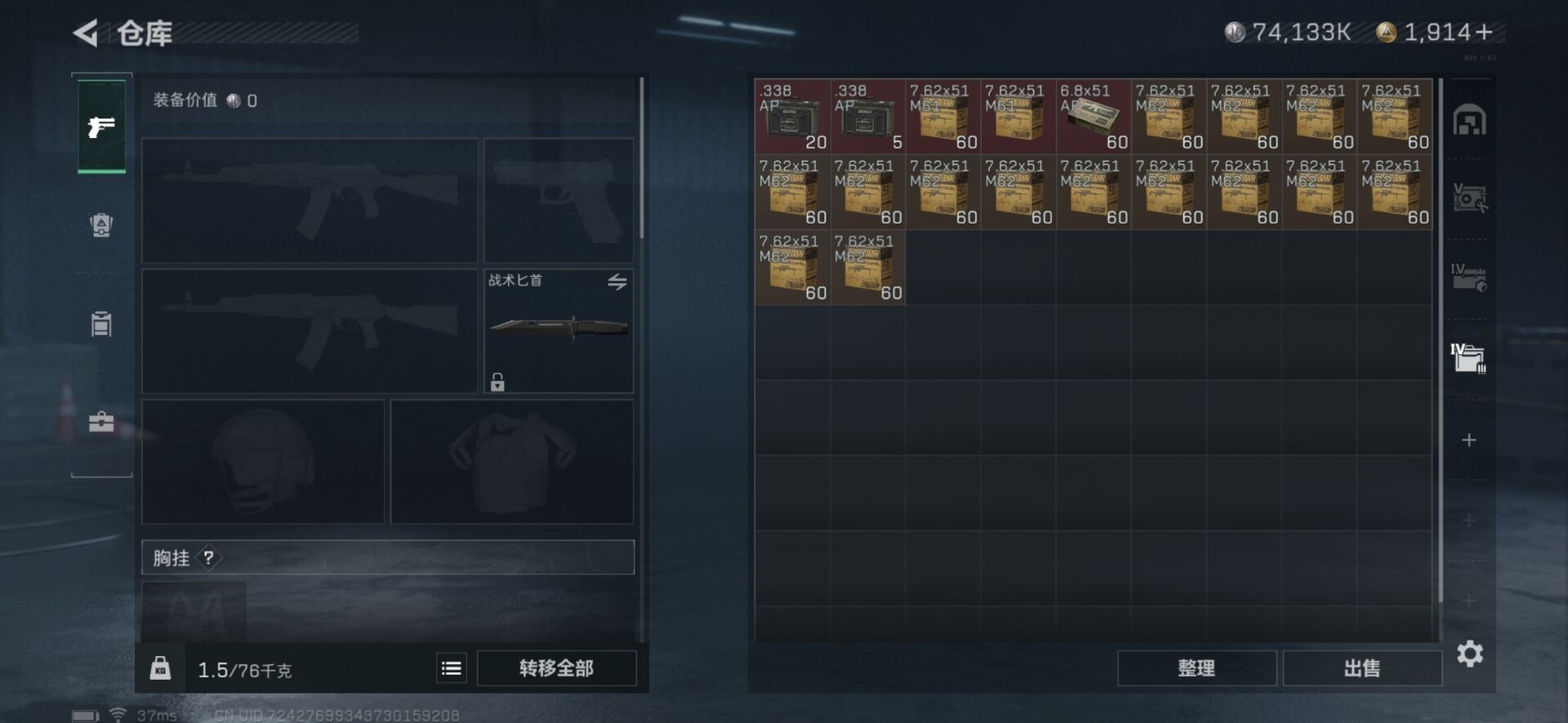 - [11605330]总资产:78 3传说枪械 进阶安全箱(2×2)9.15号到期 可二次 可修改实名 烽火地带段位:铂金 全面战场段位:上等兵 哈夫币:53.076 传说武器皮肤:SMG45冲锋枪-骑士,复合弓-黑-天际线,CAR-15突击步枪-阿米娅 史诗武器皮肤:M700狙击步枪-蝮蛇,SG552突击步枪-深海恐惧,AKM突击步枪-林中猎手,M16A4突击步枪-竞赛选手,M1014霰弹枪-林中猎手,SV-98狙击步枪-林中猎手,SCAR-H战斗步枪-囚徒,QBZ95-1突击步枪-曙光,沙漠之鹰-曙光,SVD狙击步枪-阿萨拉工艺,M700狙击步枪-竞技风
