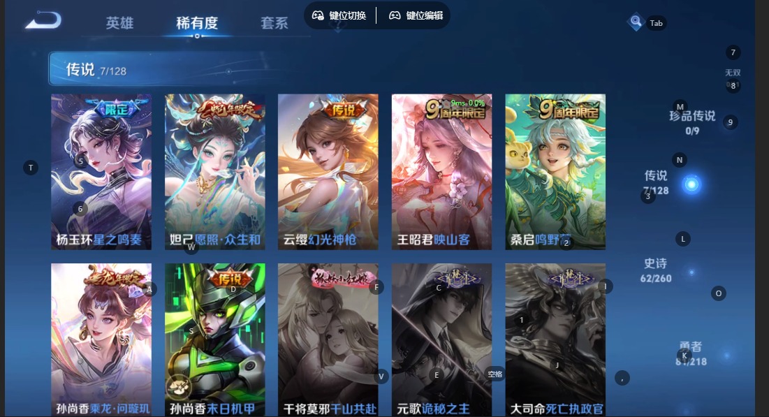 - [11769447]V7 10传说 116英雄 171皮肤 可修改实名 优质装备:黄金射手座,云鹰飞将(小将军),一念神魔,末日机甲-孙尚香(绿蚂蚱),仲夏夜之梦(大飞蛾),零号·赤焰,超时空战士-狄仁杰,涂山容容 限定皮:愿照·九州拓(澜年限),愿照·岁时盈(虞姬年限),逐霄战戟,鸣野蒿,梅西,神威(电光马子),瑞麟志(木兰年限),遇见飞天,冰锋战神,梁祝,李小龙,朱雀志(守约年限),大圣娶亲,冰霜恋舞曲 史诗皮:化蝶舞,紫霞仙子,白龙吟,黄金分割率,特工魅影,千年之狐,无限星赏官,偶像歌手,末日机甲-吕布,猫狗日记-孙策,乱世虎臣,修罗,水果甜心,天才门将,德古拉伯爵,鬼剑武藏,舞动绿茵,地狱岩魂,曙光守护者,箭羽风息,圣诞狂欢,圣诞恋歌,鹰眼统帅