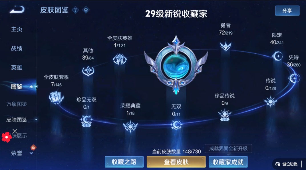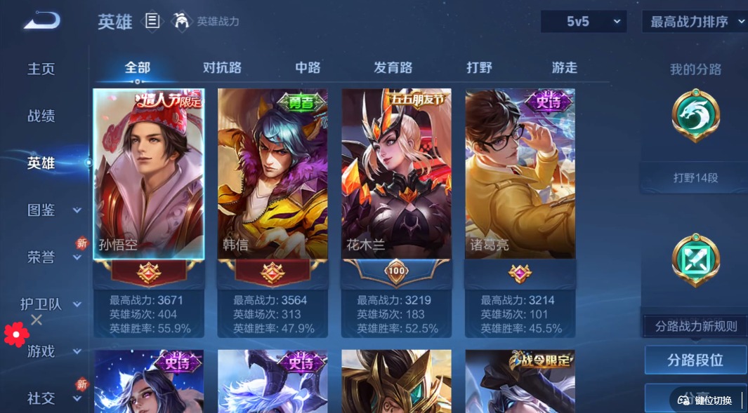 - PX_2088923- 可二次 V6 贵族积分11279 安卓QQ/158皮肤/125英雄/1典藏/0珍品无双/0无双/0珍品传说/8传说/40史诗/9稀有英雄 【1 星传说皮肤】,破晓神光 镜, 【1 典藏皮肤】,星域神启 诸葛亮, 【8 传说皮肤】,炽阳神光 镜,黄金射手座 后羿,挚爱之约 孙策,末日机甲 孙策,妄想实况 马可波罗,愿照·九州拓 澜,幻光神枪 云缨,鸣野蒿 桑启, 【40 史诗