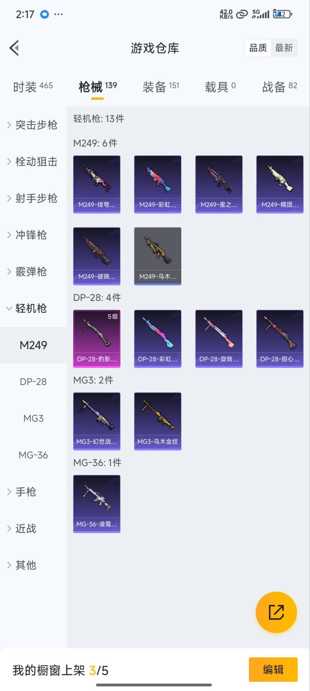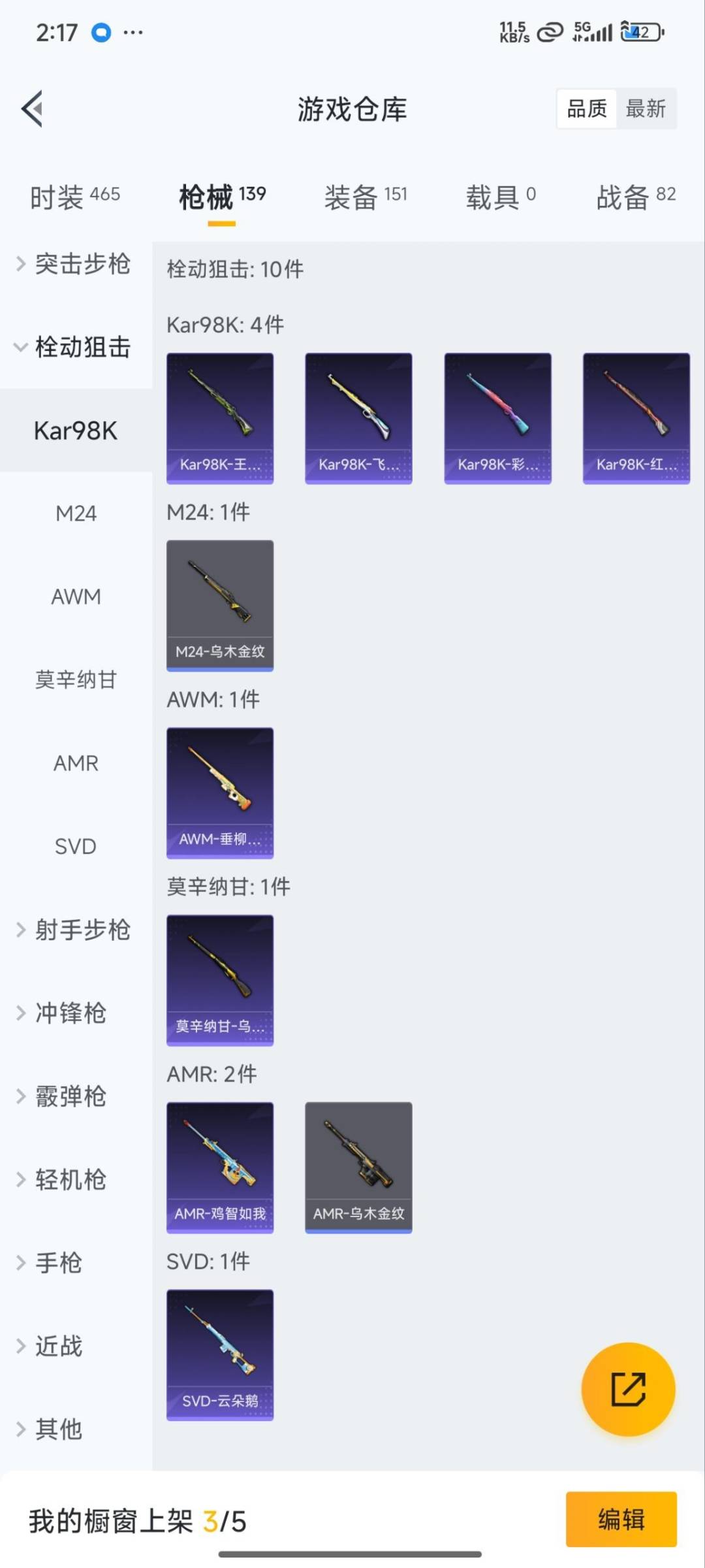 - [11678496]总资产:384 9传说枪械 高级安全箱(9.17到期) 可二次 可修改实名 烽火地带段位:铂金 全面战场段位:列兵 哈夫币:182 传说武器皮肤:QJB201轻机枪-风林火山,AK-12突击步枪-夜鹰,M4A1突击步枪-阿米娅,复合弓-黑-天际线,AWM狙击步枪-捞点薯条,腾龙突击步枪-捞点薯条,93R-捞点薯条,勇士冲锋枪-能天使-午夜邮差,725双管霰弹枪-送葬人-无题密令 史诗武器皮肤:AUG突击步枪-蝮蛇,M700狙击步枪-蝮蛇,SR-25射手步枪-战场英杰,PKM通用机枪-荒野求生,AS Val突击步枪-尖端治疗,M700狙击步枪-守夜人,Ash-12战斗步枪-守夜人,MP5冲锋枪-深海恐惧,勇士冲锋枪-深海恐惧,SG552突击步枪-深海恐惧,AKM突击步枪-林中猎手,SVD狙击步枪-暗夜猎手,M16A4突击步枪-竞赛选手,SVD狙击步枪-荒野求生,M1014霰弹枪-林中猎手,SV-98狙击步枪-林中猎手,PTR-32突击步枪-英雄,PSG-1射手步枪-无垢,M250通用机枪-囚徒,腾龙突击步枪-无垢,MP7冲锋枪-无垢,QBZ95-1突击步枪-曙光,沙漠之鹰-曙光,SVD狙击步枪-阿萨拉工艺,S12K霰弹枪-曙光