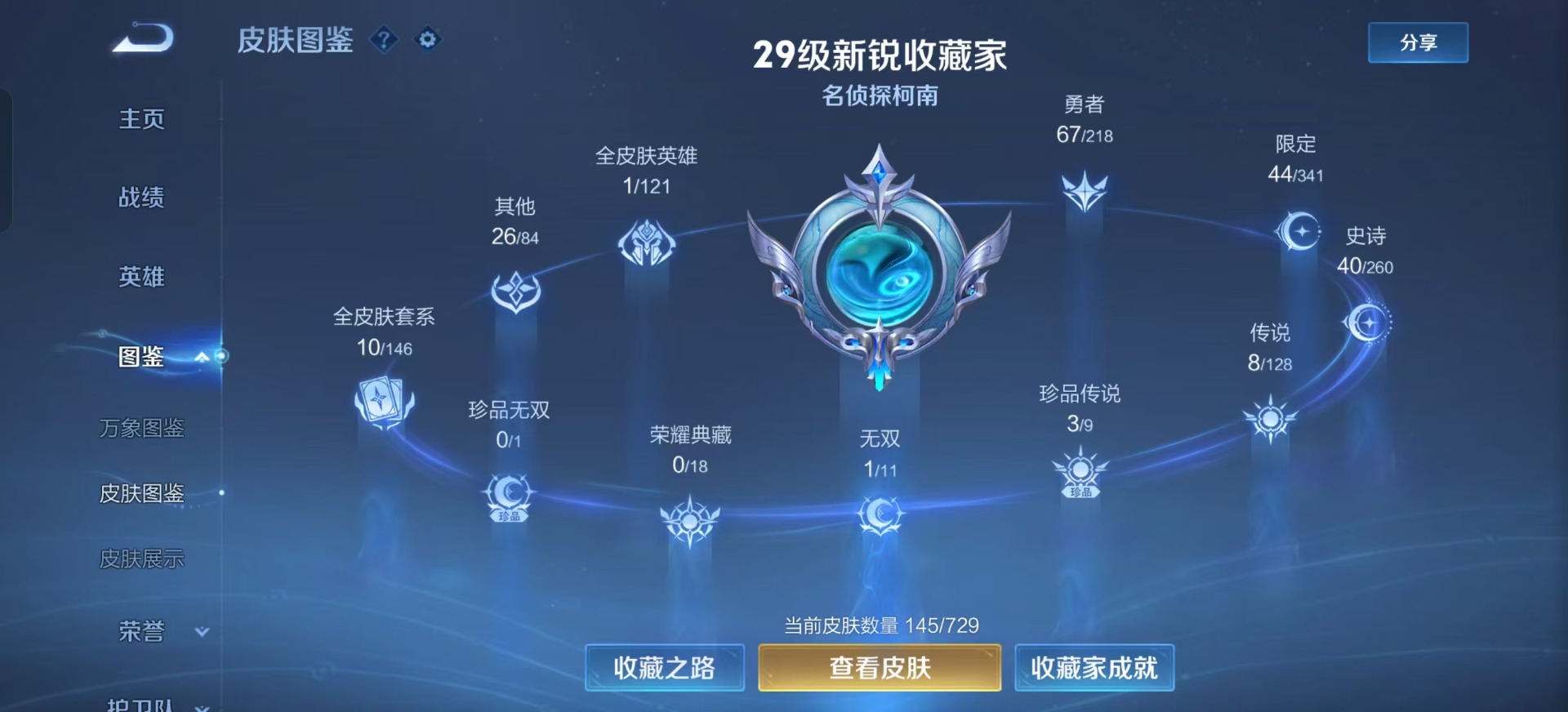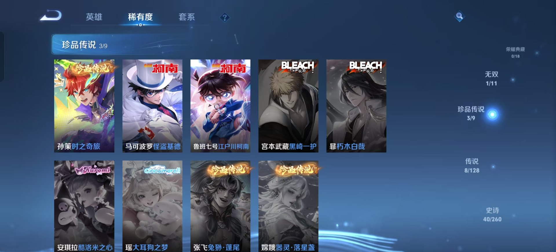 [11553417]V7 1无双 3珍品传说 8传说 119英雄 145皮肤 可修改实名 优质装备:器灵·螭龙剑,江户川柯南,怪盗基德,云鹰飞将(小将军),一念神魔,无双飞将,音你闪耀(rap皮),妄想实况,鲁班七号-时之奇旅 珍品传说:时之奇旅-孙策 传说皮:幻光神枪 珍宝阁皮:妄想食味 限定皮:逐霄战戟,鸣野蒿,降魔,梦圆繁星,山海·玄木吟(马可年限) 史诗皮:鸭鸭历险记-刘禅,飞车小橘子,化蝶舞,龙之律动,茶境仙,蔬乡物语(鲁班七号),百相守梦-百里守约,遇见神鹿,特工魅影,猫狗日记-孙策,乱世虎臣,女仆咖啡,摇滚巨星,水果甜心,绅士熊喵,天才门将,心灵骇客,功夫厨神,暗隐猎兽者,鬼剑武藏,乐园奇幻夜,舞动绿茵,纤云弄巧,缤纷独角兽,水晶猎龙者,曙光守护者,箭羽风息,金属风暴,圣诞恋歌,鹰眼统帅,魅力维加斯