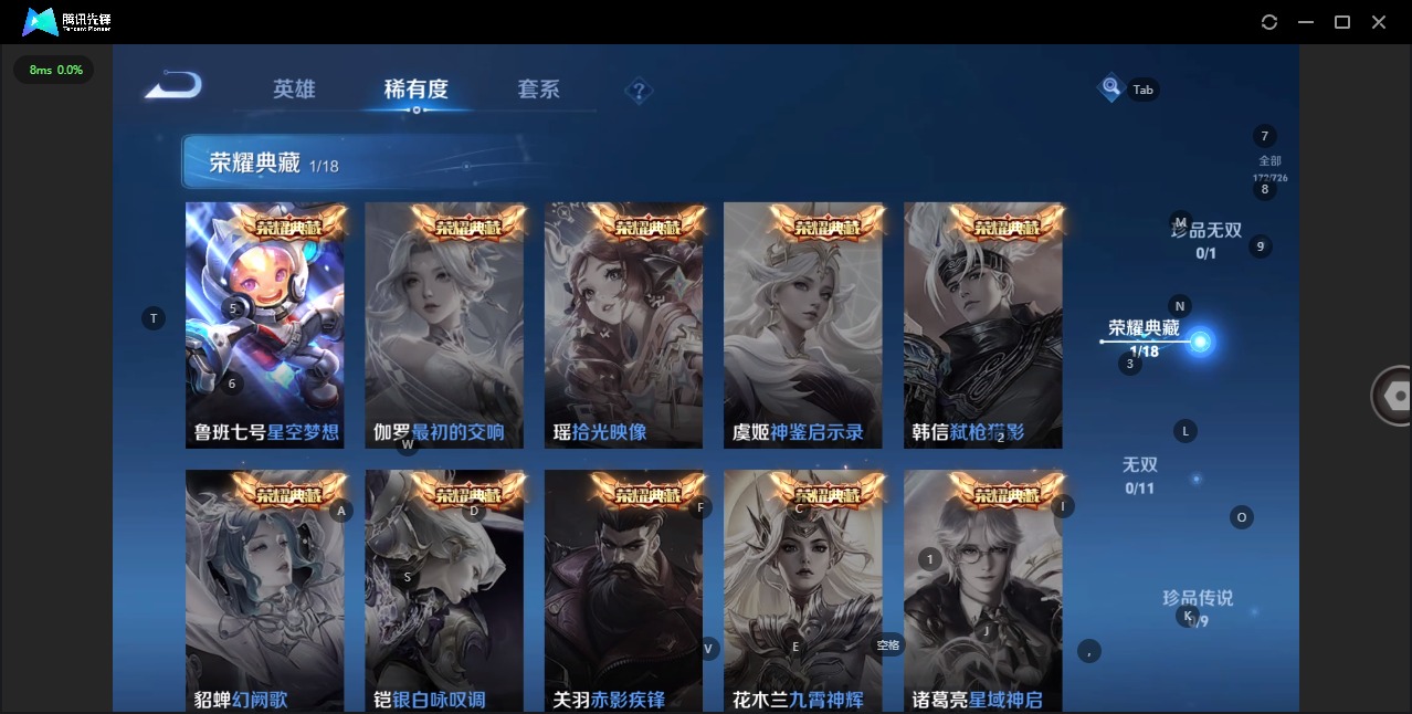 - PX_2035502-苹果Q 【可二次】 英雄数量:124 皮肤数量:292 贵族等级:贵族V8 【星传说 未来机甲】荣耀典藏2 传说品质16 史诗品质77全息碎影 星域神启 山海琳琅生 诗剑行 音你闪耀 猫影幻舞 云霓雀翎 曦玄引女 淬星耀世 齐天大圣 末日机甲女 怒海麟威 绛天战甲 启明星使 惊梅引 胖达荣荣 鸣野蒿 落雪白狼 冰锋战神 游园惊梦 王者之锤 迷踪丽影 功夫厨神 狮舞东方 白昼王