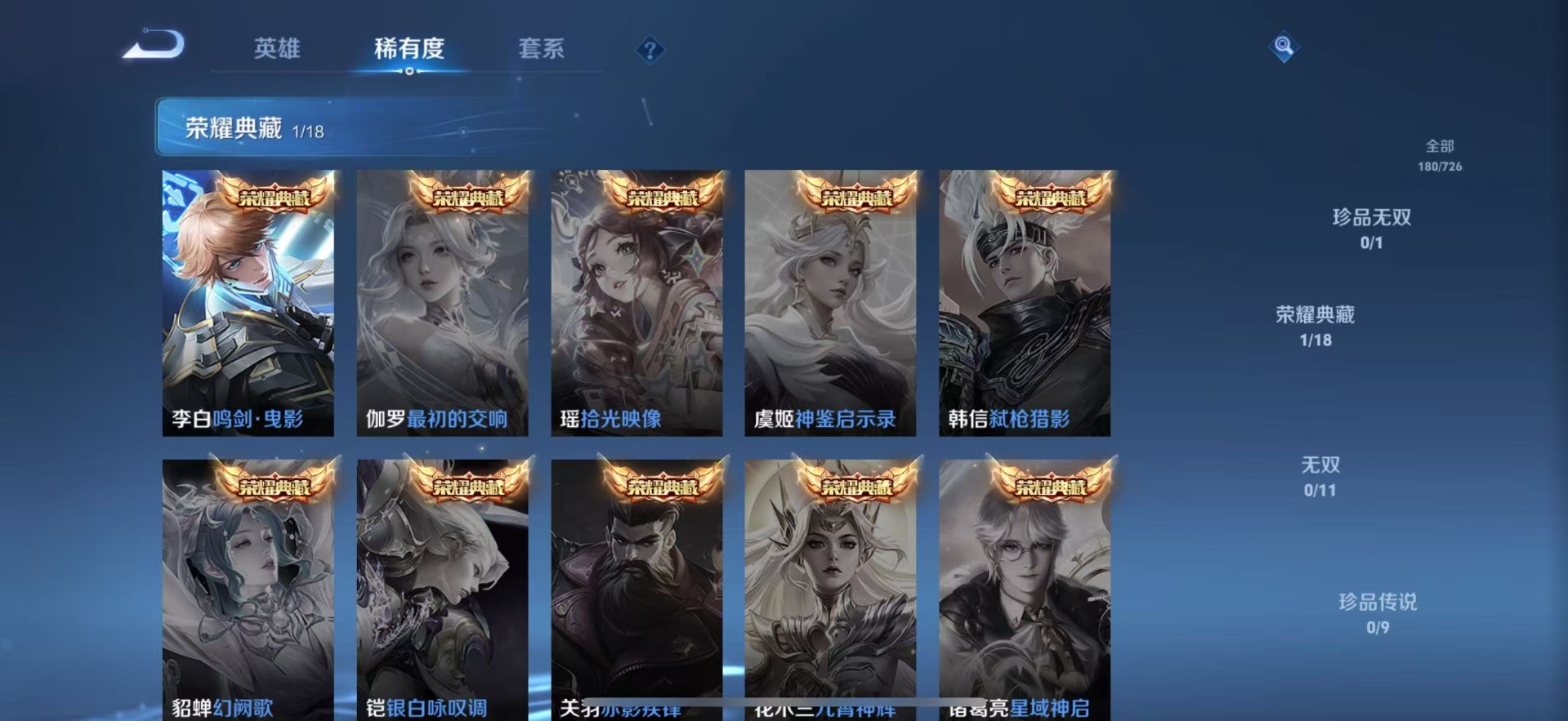 - [11796335]V7 1珍品传说 9传说 121英雄 161皮肤 可修改实名 优质装备:器灵·落星盏,黄金白羊座,仲夏夜之梦(大飞蛾),海洋之心,地狱之眼,音你心动-周瑜,淬星耀世 限定皮:愿照·岁时盈(虞姬年限),愿照·众生和(妲己年限),傲雪梅枪,时雨天司(水龙头),遇见飞天,青龙志(铠年限),梁祝,天狼狩猎者,朱雀志(守约年限),一生所爱,大圣娶亲 史诗皮:鸭鸭历险记-刘禅,苍鳞隐世,器灵·浮梦炉,化蝶舞,龙之律动,茶境仙,遇见神鹿,紫霞仙子,黄金分割率,特工魅影,千年之狐,魅语,偶像歌手,末日机甲-吕布,乱世虎臣,修罗,水果甜心,星夜王子,暗隐猎兽者,鬼剑武藏,缤纷独角兽,乘风破浪,逐浪之夏,水晶猎龙者,圣诞狂欢,鹰眼统帅
