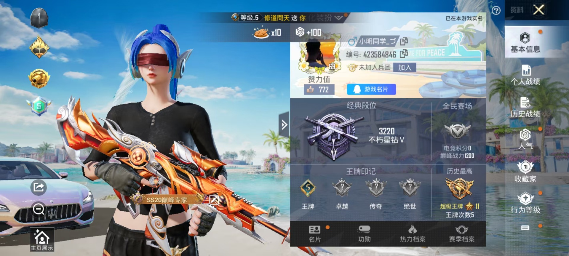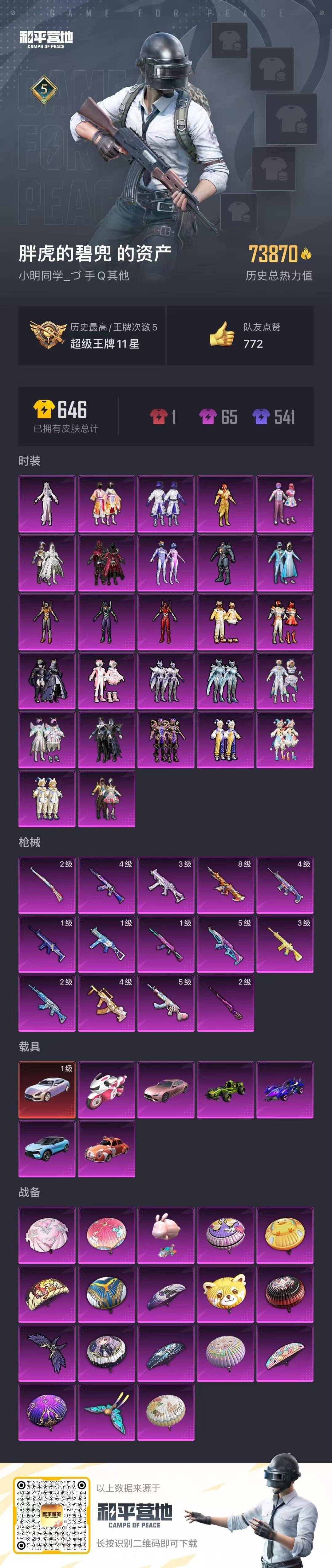 - [11607175]3粉装 5特效枪 12印记 可二次 可修改实名 优质装备:M16A4垂柳戏鸭,SCAR-L-锦绣绵绵,M416电玩时刻,Kar98K-巳巳如意 热门装扮:朗月武圣,未来歌姬,创世·救赎,鹰眼刺客,梦魇先生 稀有枪皮:DP-28-豹影疾电 五级特效枪:五级Kar98K-巳巳如意,五级DP-28-豹影疾电,五级M416-电玩时刻,五级SCAR-L-锦绣绵绵,五级M16A4-垂柳戏鸭 紫色装扮:田园牧歌,轻风白浪,SS22特训,SS23特训,幻彩翩翩,妙红点点,龙舌兰冰茶,白兰地假日,娇憨猪猪,萌趣咩咩,SS21特训,浪漫假日,SS31特训套装,云霄猎人,人气偶像,军械专家,冰川特警,冷焰舞者,旭日情侣,SS33特训套装,顶瓜瓜,SS20特训,猎梦纪元,SS19特训,甜心亚梦,虚音幻奏,SS18特训,都市魅力,酒红色名流,野性战心,长空猛禽,雨林探路者,雪山征服者,霓虹街区,霸义无双,青年教官,青春校园,风暴特警,缤纷果语,苍穹猎鹰,荣耀,蓝彩潮人,蓝色运动,血色贵族,街头潮人,超能勇士,绛羽幽主,飞行日记,龙腾端午,魅力单车,鹤鸣,麻辣教官,黄色伏地魔,黄色名流,黄色运动,黑色伏地魔,龙的传人,龟仙人,冰河战士,蝶变,香桃花海,沙漠毒蛇,极地朋克,极速红龙,柠萌假日,橘黑制服,沙漠兵团,活力之心,派对绅士,海岛探路者,涂山之恋,深蓝色名流,清新柠檬,幻影武者,坚韧舞者,完美偶像,帅气教官,幻世战舞者,战地督导,探宝勇士,湖蓝色名流,绮丽涂鸦,甜蜜菠萝,白熊同盟,白色伏地魔,破晓战魂,破蛋小黄鸡,甜蜜告白,空岛之星,空投萌叽,竞技达人朋克,红色运动,王牌教练,牛气冲天,灰色格斗者,灼焰舞者,炫蓝之夏,热血骑手,燃烧卡路里,牛气满满,猛禽,特战英豪,特殊使命,特训学院,猎鹰,SS29特训,拉斐尔,星途旅人,创世·幻影,纯真浪花,热情海星,SS28特训,卖崽青蛙,创世·追猎,冰公主,红潮炫舞,鱼渊荷华,玉兔迎春,燕燕于飞,竞技名士,许七安,情公主,惊鸿侠骨,甜梦熊熊,神气柴柴,懵萌河马,SS24特训(SS24特训套装),SS25特训,绝对偶像,锦衣飞扬,粉红小猪,焰鹰斗篷,幻羽潜行,SS27特训,SS26特训,春光漫游,快闪甜心,贝斯之夜,智谋强哥,精神漫游,格斗专家,核芯基因,大橘大利,耀粉歌者,SS32特训服(SS32特训套装),青玉碎影,绯格组合,萌黄之夏,白糯汤圆,恋