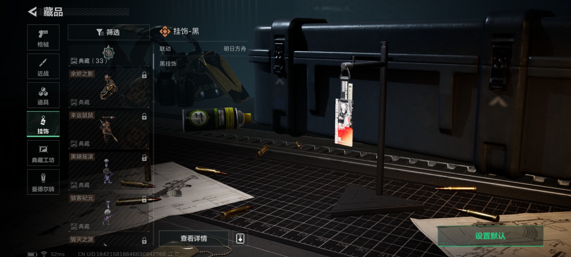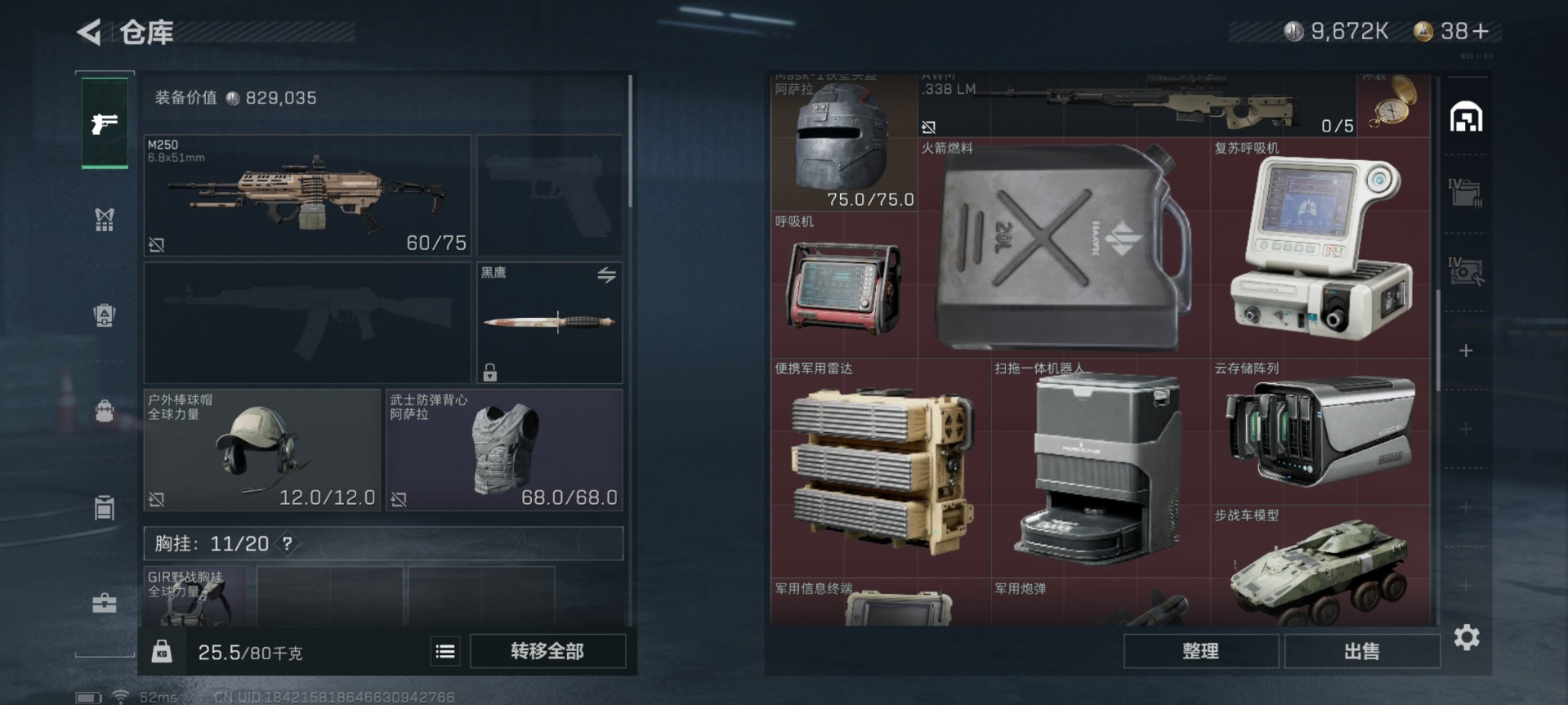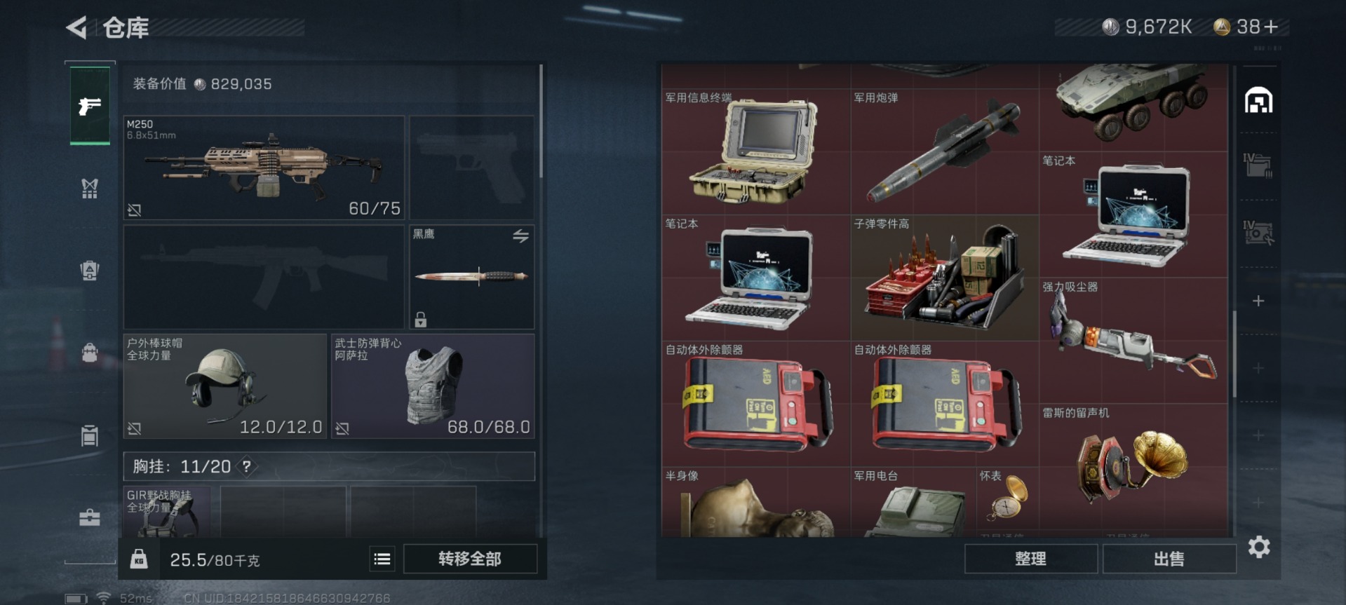 [11553563]总资产:129.5 1干员外观 3传说枪械 高级安全箱(9.17到期) 可二次 可修改实名 烽火地带段位:钻石 全面战场段位:无段位 哈夫币:9.672 传说武器皮肤:复合弓-黑-天际线,CAR-15突击步枪-阿米娅,725双管霰弹枪-送葬人-无题密令 史诗武器皮肤:PKM通用机枪-荒野求生,SV-98狙击步枪-林中猎手,PSG-1射手步枪-无垢,M250通用机枪-囚徒,SV-98狙击步枪-囚徒,SVD狙击步枪-阿萨拉工艺 干员外观:露娜-黑·天际线
