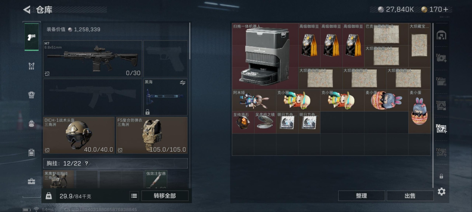 [11553604]总资产:103 4干员外观 1近战传说 13传说枪械 高级安全箱(2×3)9.15号到期 可二次 可修改实名 优质装备:近战-黑海 烽火地带段位:钻石 全面战场段位:上等兵 哈夫币:27.840 传说武器皮肤:AS Val突击步枪-蛇年祥瑞,SR-25射手步枪-水墨云图,SCAR-H战斗步枪-铁艺苍穹,G18-飞虎,SMG45冲锋枪-骑士,AK-12突击步枪-夜鹰,复合弓-黑-天际线,725双管霰弹枪-送葬人-无题密令,QJB201轻机枪-黑海,MP5冲锋枪-黑海,M7战斗步枪-维京,M4A1突击步枪-蚀金玫瑰 干员外观:红狼-蚀金玫瑰,牧羊人-街头之王,蜂医-送葬人·无题密令(S5),露娜-黑·天际线