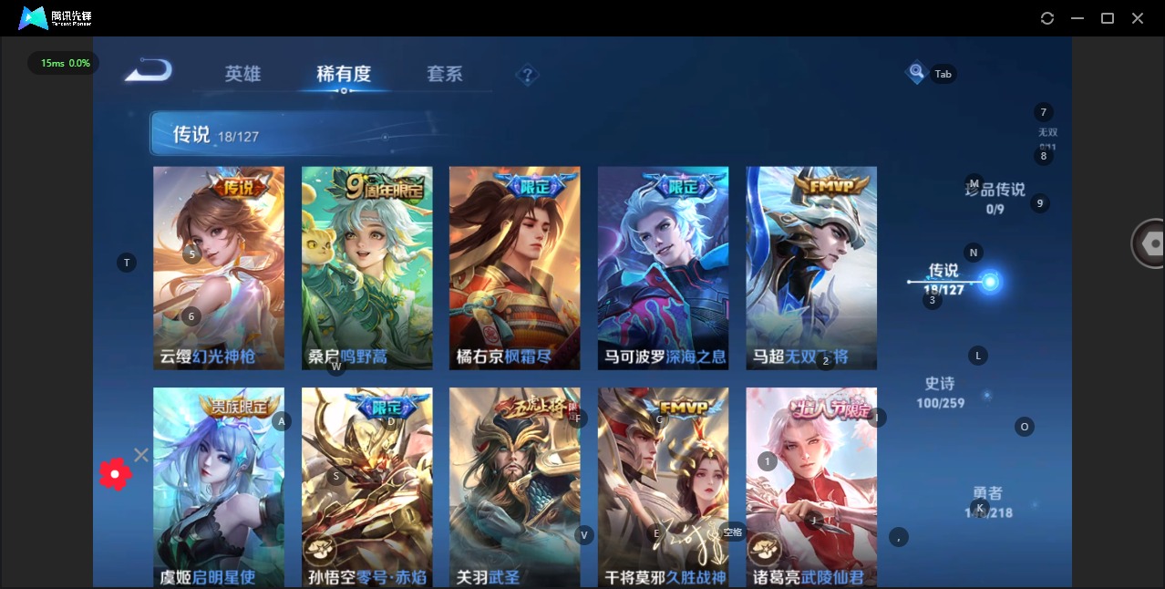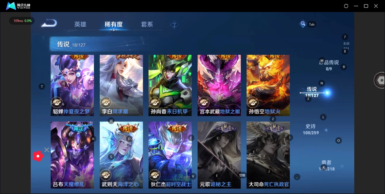 - [11678935]V9 1典藏 27传说 124英雄 338皮肤 典藏英雄武则天 可修改实名 优质装备:星域神启(倪克斯贼亮),黄金狮子座,冠军飞将,云鹰飞将(小将军),黄金白羊座,猫影幻舞,炽阳神光,一念神魔,末日机甲-孙尚香(绿蚂蚱),地狱火,仲夏夜之梦(大飞蛾),零号·赤焰,海洋之心,地狱之眼,游龙清影(小青龙),超时空战士-狄仁杰,挚爱之约,无双飞将,山海·苍雷引(电光曜子) 珍宝阁皮:优雅恋人,玩趣恶龙 限定皮:至尊宝,白虎志(电光耗子),凤求凰(白切鸡),太华(伽罗年限),武陵仙君(小桃花),异界灵契(白毛香),傲雪梅枪,时之彼端,魔法小厨娘,时雨天司(水龙头),神威(电光马子),飞衡(韩信年限),遇见飞天,高山流水,五谷丰年,青龙志(铠年限),冰锋战神,天狼运算者,梁祝,御风骁将(吕布年限),祈雪灵祝(雪兔子),天狼绘梦者,李小龙,逐梦之影,辉光之辰,如梦令-嫦娥,默契交锋-花木兰,真爱至上,孙行者,一生所爱,大圣娶亲,青春决赛季,冰霜恋舞曲,蜜橘之夏,神奇女侠,匿光追影者,寅虎·赤拳(老虎年限),百木心枪,玉兔公主 史诗皮:龙之律动,紫霞仙子,苍穹之光,电玩小子(小书包),白龙吟,黄金分割率,千年之狐,永昼,匿光侦查者,魅语,蒙恬荣光圣徽,无限星赏官,冰冠公主,青蛇,偶像歌手,晚萤,暗夜猫娘,末日机甲-吕布,猫狗日记-孙策,猫狗日记-大乔,乱世虎臣,节奏热浪,修罗,女仆咖啡,摇滚巨星,水果甜心,绅士熊喵,天才门将,星夜王子,心灵骇客,时之奇旅-安琪拉,功夫厨神,德古拉伯爵,暗隐猎兽者,幽灵船长,鬼剑武藏,暗渊魔法,心灵战警,舞动绿茵,地狱岩魂,纤云弄巧,繁星吟游(呼啦呼啦),拒霜思,缤纷独角兽,乘风破浪,逐浪之夏,水晶猎龙者,热力回旋,箭羽风息,金属风暴,原初追逐者,圣诞狂欢,圣诞恋歌,鹰眼统帅,魅力维加斯,黎明之约,雪上飞焰,赏金猎手,奇遇舞章,天秀·音浪,千筹问战,无心,未来纪元-赵云