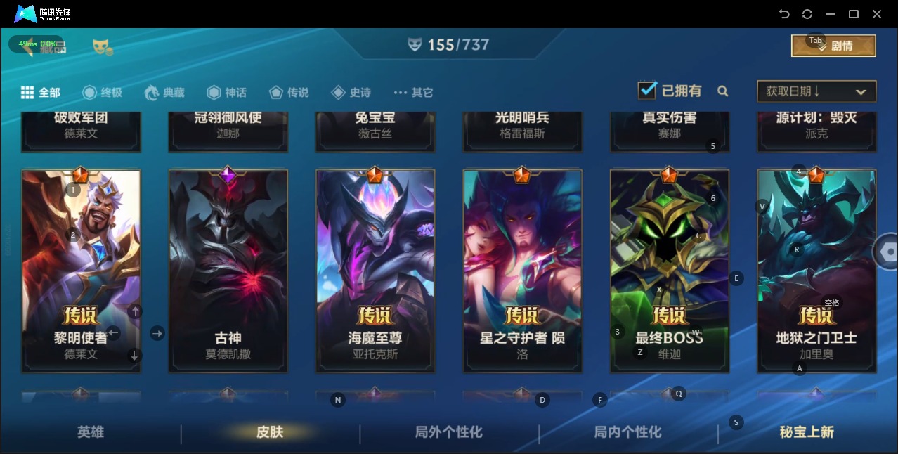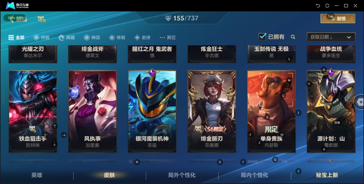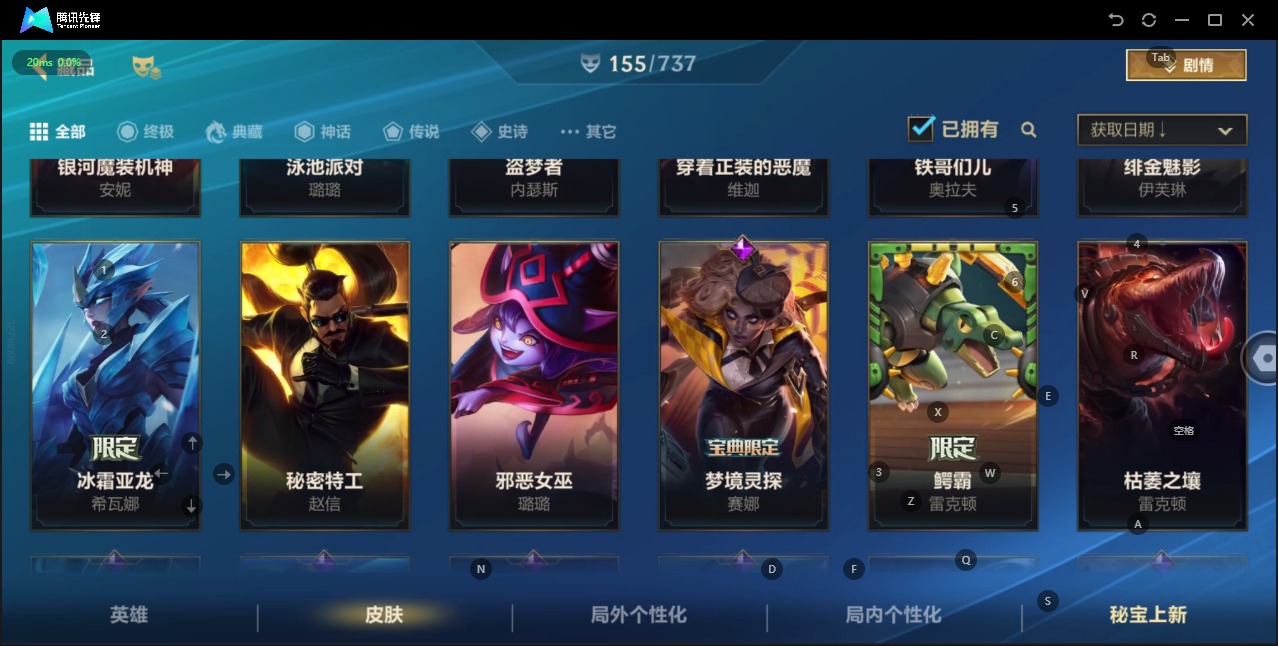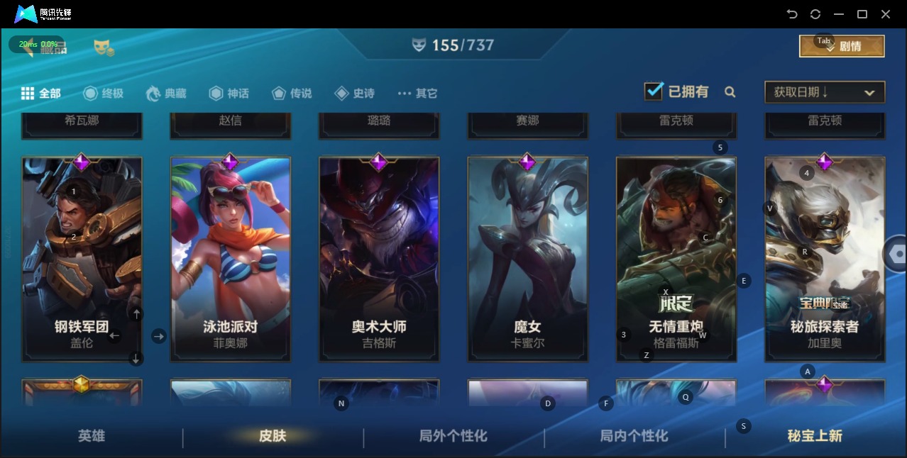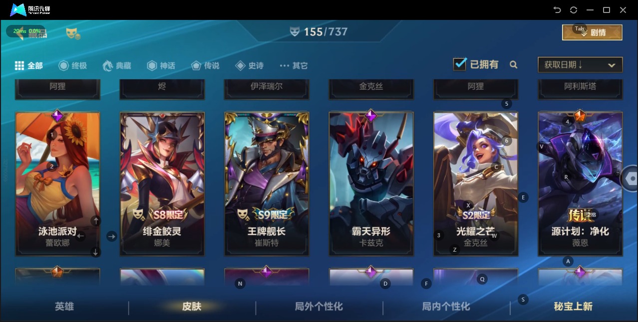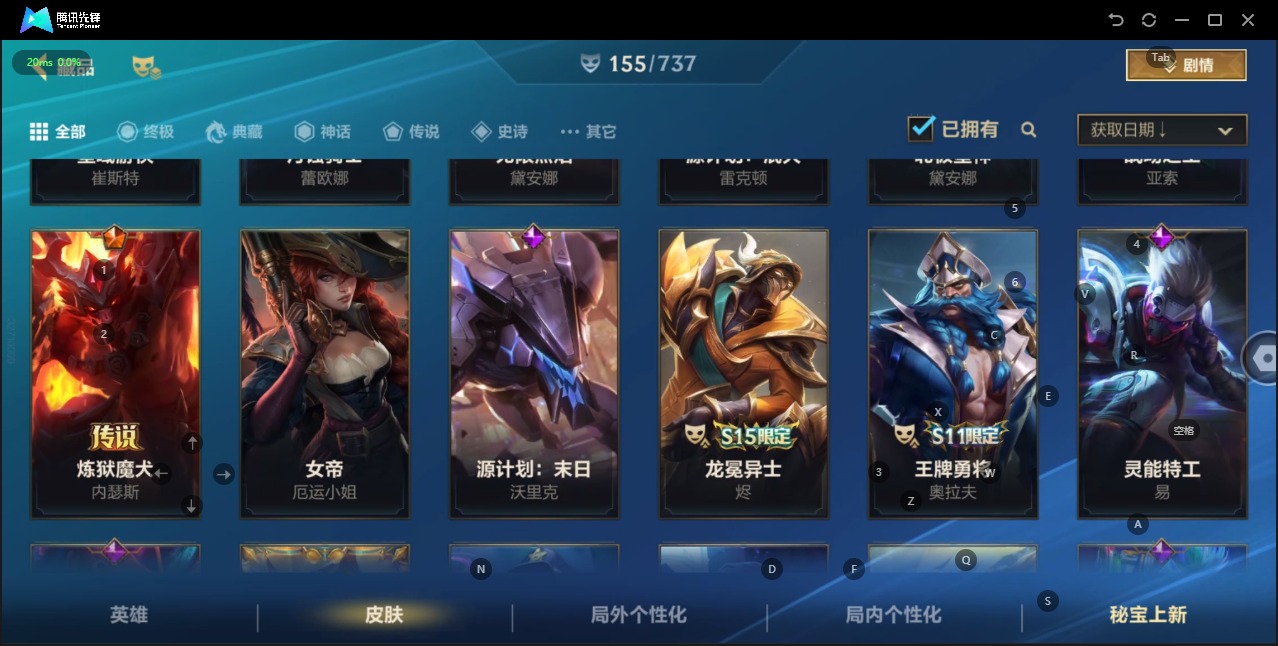 - [12322743]V7 1典藏 8传说 125英雄 195皮肤 可修改实名 优质装备:全息碎影(猴子典藏),猫影幻舞,云霓雀翎,末日机甲-孙尚香(绿蚂蚱),地狱火,地狱之眼,山海·炽霜斩(李信年限),浮生妄 珍宝阁皮:胡桃夹子 限定皮:太华(伽罗年限),飞衡(韩信年限),梁祝,天狼狩猎者,李小龙,大圣娶亲,山海·玄木吟(马可年限) 史诗皮:百相守梦-黄忠,紫霞仙子,苍穹之光,白龙吟,黄金分割率,特工魅影,千年之狐,龙骑士(小龙虾),百解令(蒙犽),偶像歌手,末日机甲-吕布,乱世虎臣,节奏热浪,水果甜心,暗隐猎兽者,幽灵船长,鬼剑武藏,拒霜思,乘风破浪,龙鼓争鸣,曙光守护者,金属风暴,原初追逐者,圣诞狂欢,圣诞恋歌,鹰眼统帅,魅力维加斯,黎明之约