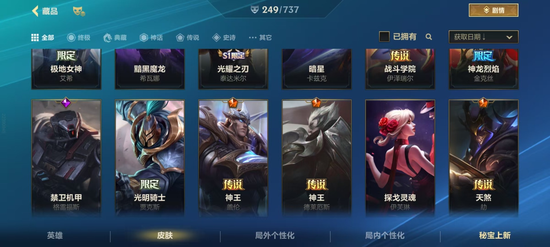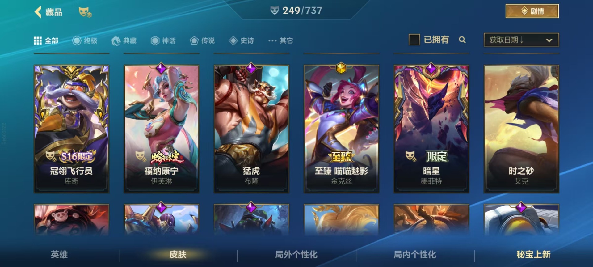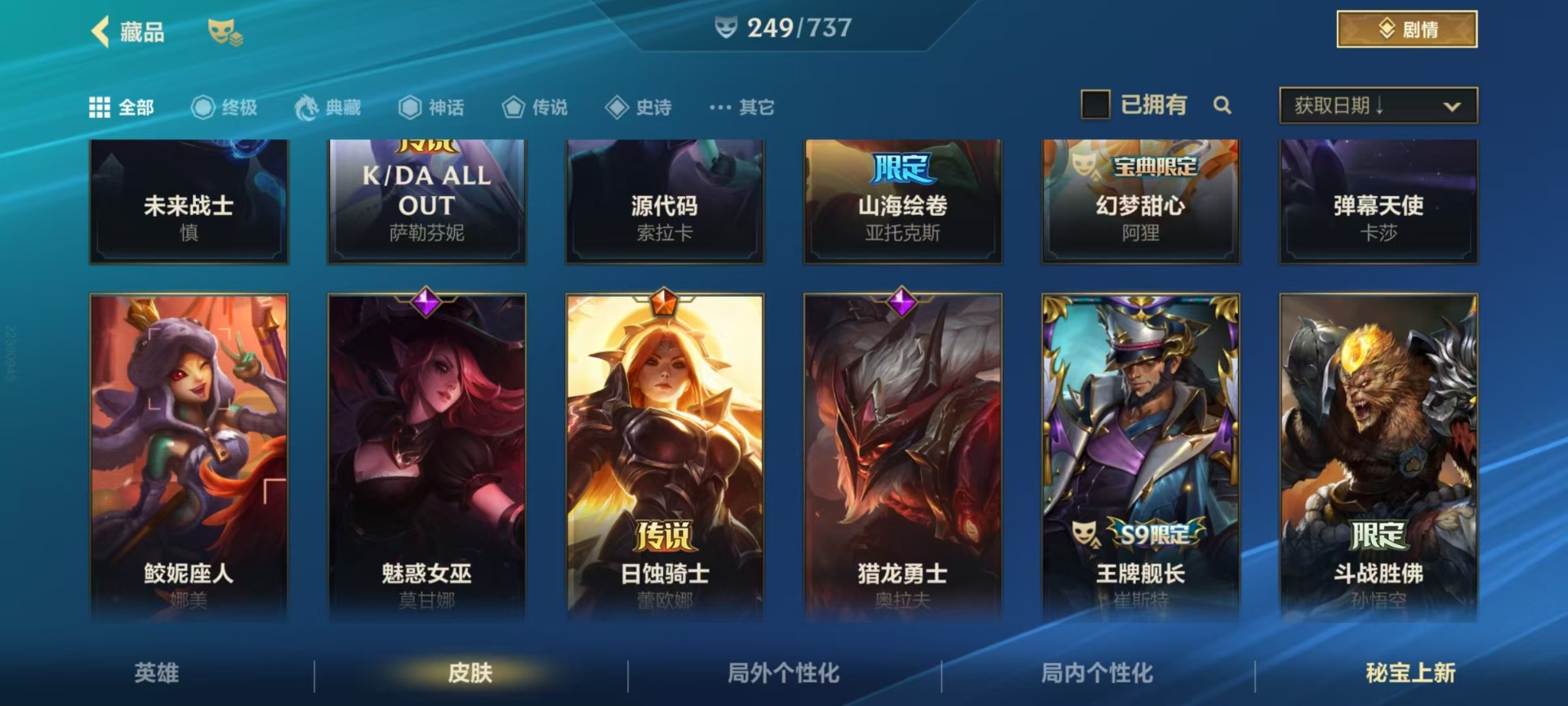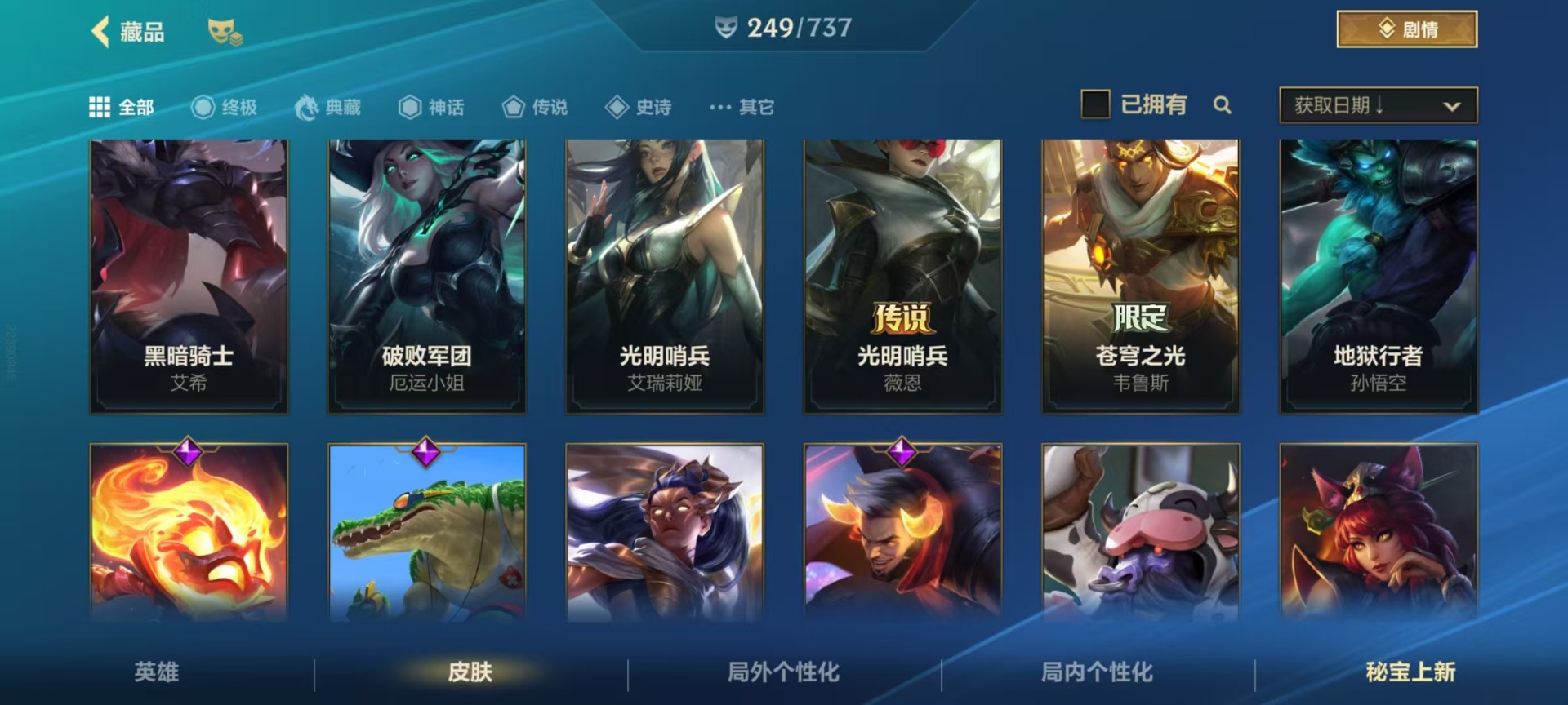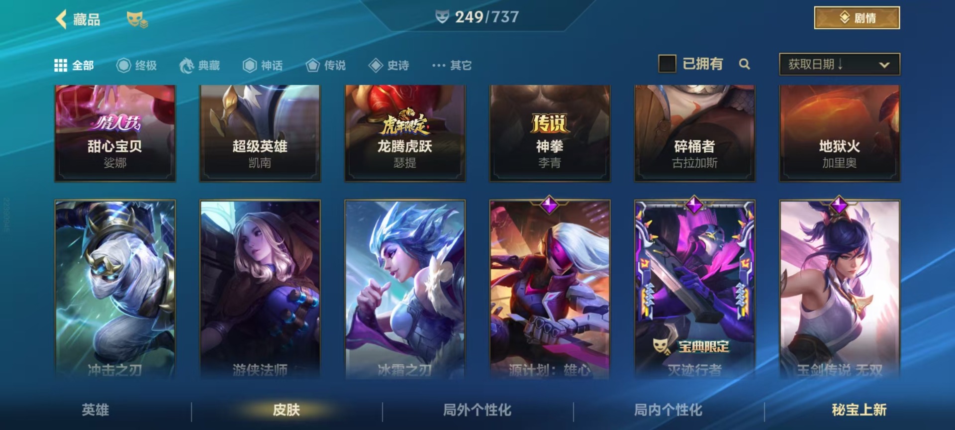 - PX_2090165-实名: 可修改 贵族等级: V7 英雄数: 121 皮肤数: 166 星传说: 金色仲夏夜 传说皮: 炽阳神光,末日机甲-孙尚香,仲夏夜之梦,游龙清影,山海·琳琅生,记忆之芯 限定皮: 李小龙,祈雪灵祝,梁祝,时雨天司,魔法小厨娘,时之彼端,奇迹圣诞,天狼运算者,天狼绘梦者,凤凰于飞,一生所爱,霸王别姬-虞姬,时之祈愿-瑶,五谷丰年,山海·碧波行,至美·乘鲤谣