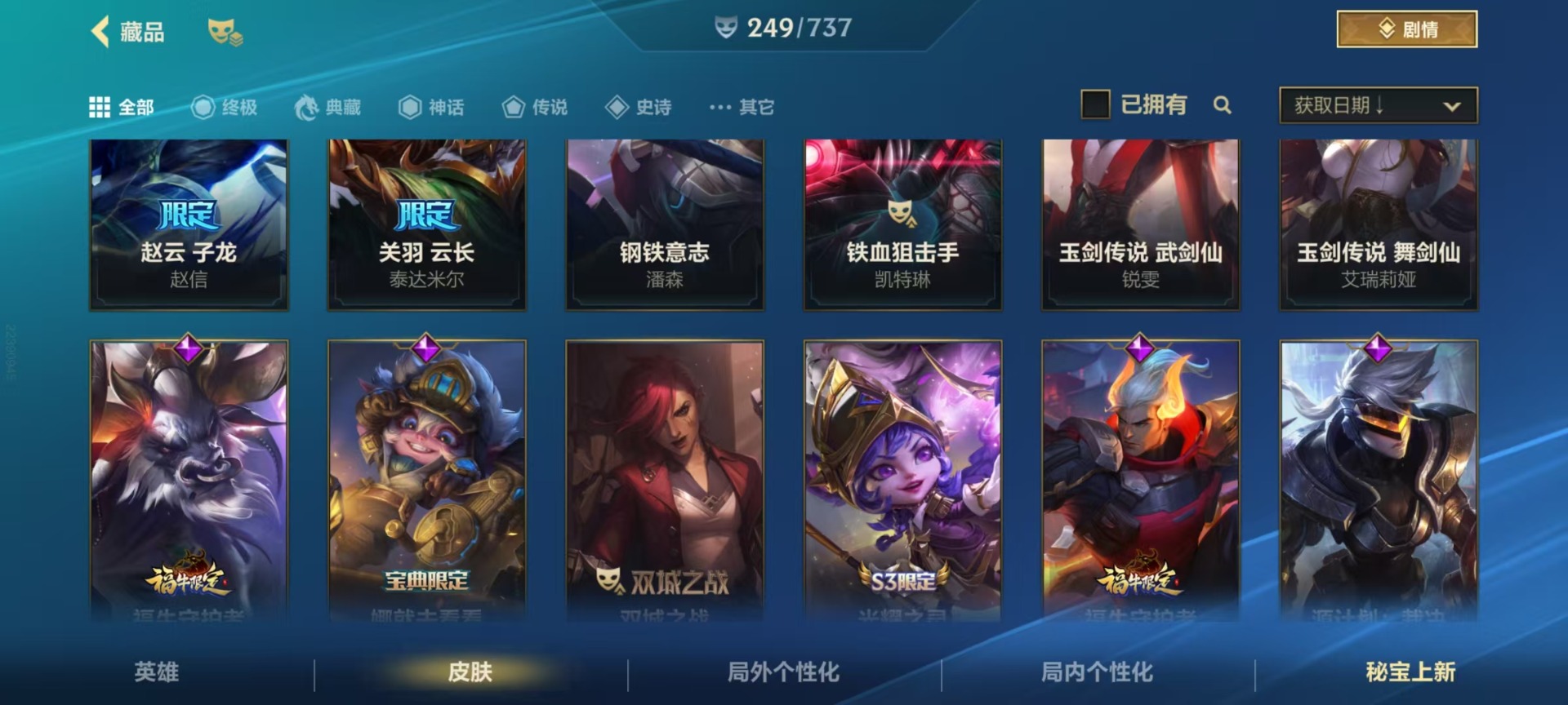 - [12280879]V5 5传说 123英雄 168皮肤 可修改实名 优质装备:音你心动-小乔,涂山容容 传说皮:乘龙·问璇玑(孙尚香年限),幻光神枪 珍宝阁皮:蔷薇恋人,女武神 限定皮:愿照·千秋盛(女娲年限),逐霄战戟,鸣野蒿,山海·碧波行(瑶年限),五谷丰年,梁祝 史诗皮:器灵·浮梦炉,化蝶舞,星界战将,龙之律动,蒙犽顽岩魄,蔬乡物语(鲁班七号),江河有灵,蒙恬荣光圣徽,偶像歌手,白蛇,电玩·爆裂旋风,暗夜猫娘,猫狗日记-孙策,乱世虎臣,女仆咖啡,摇滚巨星,水果甜心,绅士熊喵,天才门将,心灵骇客,功夫厨神,鬼剑武藏,舞动绿茵,纤云弄巧,拒霜思,逐浪之夏,曙光守护者,金属风暴,圣诞恋歌,鹰眼统帅