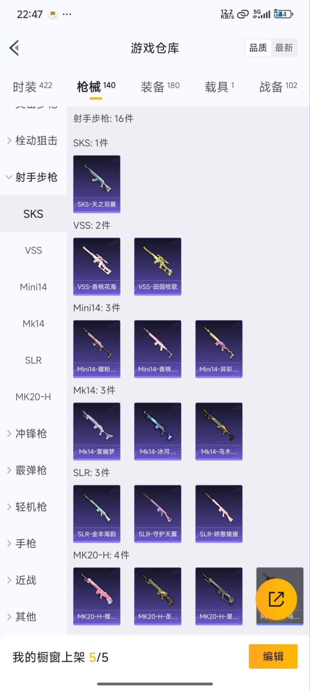 - PX_2100086- 苹果手Q-5王牌印记-11粉装-11特效枪-2载具-47590热力值-94套装-126枪皮-0卓越印记-0传奇印记 【11粉装】,初号机款机体服,缤纷油彩,新星烈龙,第五大道,炙焰赤龙,黄族统领,猩猩队长,暗夜鎏金,心之回忆,数码大师,呆萌星弥 【11特效枪】SCAR-L-纯梦嫁纱-5级 M416-全功率超战-1级 M416-五爪金龙-1级 M416-暖熊萌萌-4级 GRO