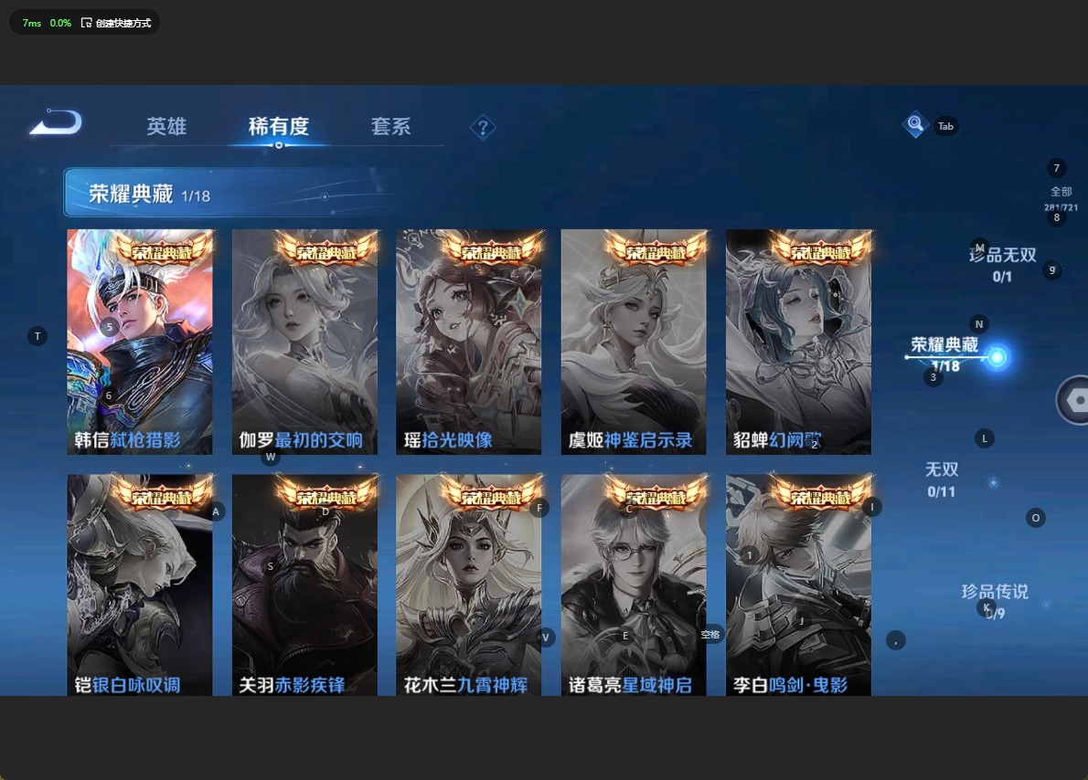 - PX_2100531-【251皮20传说 黄金射手座 冠军飞将 白虎志 久胜战神 黄金射手座 云鹰飞将 时之祈愿 】:安卓Q-V8-最强王者段位-121英雄-251皮肤-0典藏-0珍品无双-0无双-0珍品传说-20传说-67史诗 【内测皮肤】:艾琳女武神,高渐离玩趣恶龙,狂铁特工战影 【传说皮肤】:狄仁杰超时空战士,宫本武藏地狱之眼,孙尚香末日机甲,后羿黄金射手座,花木兰冠军飞将,百里玄策白虎志,