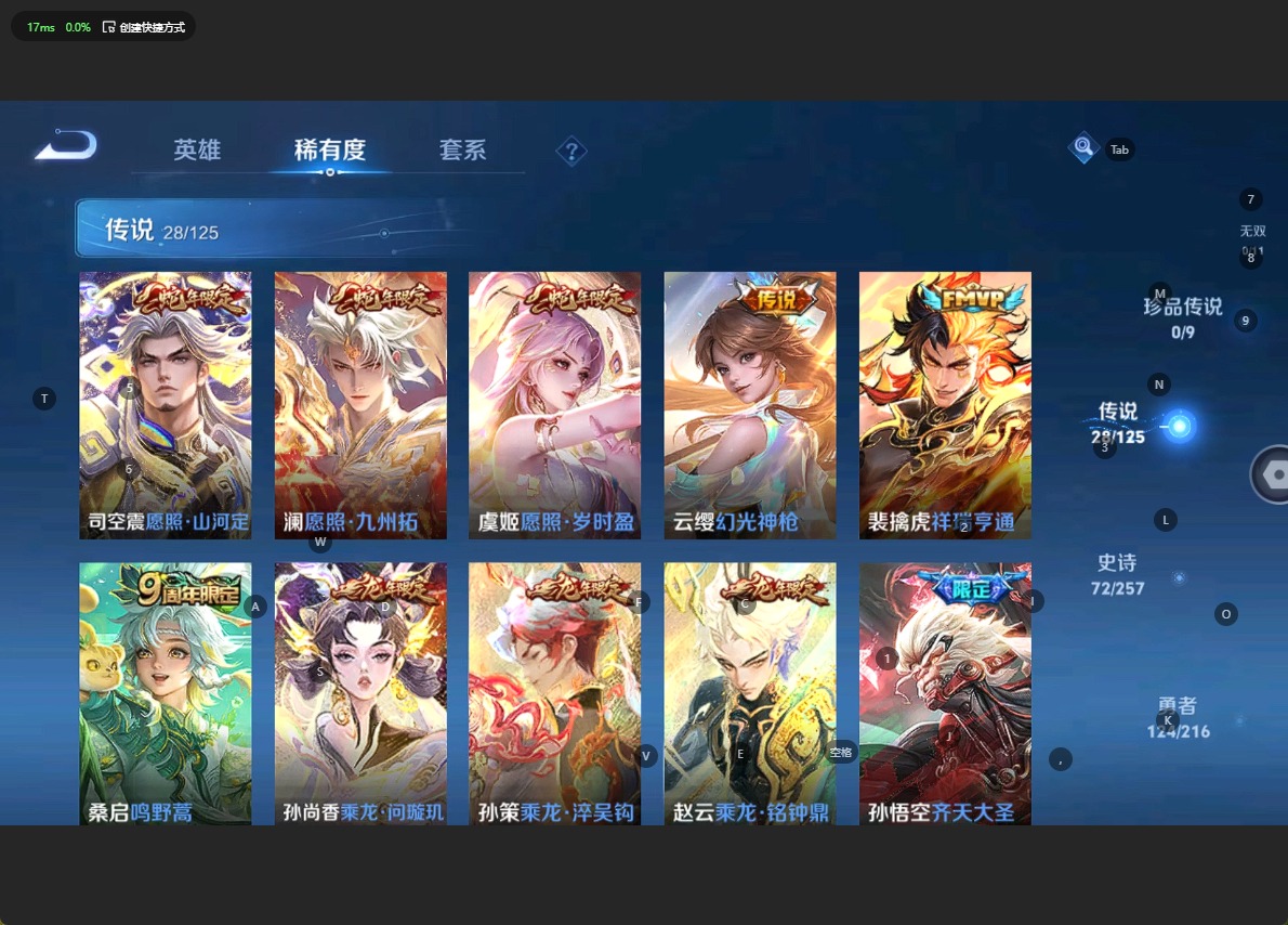 - [11824154]V10 4典藏 1无双 71传说 126英雄 455皮肤 典藏英雄武则天 可修改实名 优质装备:鸣剑·曳影,全息碎影(猴子典藏),九霄神辉(木兰典藏),银白咏叹调(倪克斯侍卫),碎月剑心(李白无双),黄金狮子座,黄金射手座,冠军飞将,云鹰飞将(小将军),绛天战甲(鸡嘴战神),黄金白羊座,久胜战神,炽阳神光,一念神魔,云霓雀翎,末日机甲-孙尚香(绿蚂蚱),地狱火,仲夏夜之梦(大飞蛾),音你心动-小乔,零号·赤焰,海洋之心,地狱之眼,音你心动-周瑜,胖达荣荣,李逍遥,时之恋人-刘备(电焊工),淬星耀世,超时空战士-狄仁杰,末日机甲-孙策,花朝如约(花篮子),挚爱之约,无双飞将,碎云,神器·狴犴令,山海·炽霜斩(李信年限),山海·琳琅生(小乔年限),山海·苍雷引(电光曜子),燃星之曲,画中仙,追逃游戏(安琪拉),电玩·雷克斯,小动物乐团,霜月吟,澜逐花归海,艾琳觅芳踪,金乌负日,黄金天蝎座,玄雷天君 传说皮:乘龙·问璇玑(孙尚香年限),乘龙·铭钟鼎(赵云年限),乘龙·淬吴钩(孙策年限),貂蝉曦玄引,吕布曦玄引,落雪白狼,幻光神枪 珍宝阁皮:女武神,玩趣恶龙 限定皮:愿照·九州拓(澜年限),愿照·千秋盛(女娲年限),鸣野蒿,至尊宝,白虎志(电光耗子),凤凰于飞,太华(伽罗年限),异界灵契(白毛香),星穹之声,绯月行,时之彼端,白晶晶,时雨天司(水龙头),神威(电光马子),飞衡(韩信年限),玄嵩(庄周年限),山海·碧波行(瑶年限),无限倾心-项羽,诗剑行,无限倾心-虞姬,齐天大圣,怒海麟威,降魔,五谷丰年,青龙志(铠年限),冰锋战神,幽恒(沐浴露),武圣,天狼运算者,游园惊梦,御风骁将(吕布年限),天狼狩猎者,龙胆,逐梦之星,烈魂,岱宗(典韦年限),虎魄,奔雷神使(牛魔年限),祈雪灵祝(雪兔子),天狼绘梦者,李小龙,朱雀志(守约年限),永曜之星,如梦令-嫦娥,如梦令-后羿,霸王别姬-项羽,霸王别姬-虞姬,默契交锋-兰陵王,默契交锋-花木兰,孙行者,一生所爱,大圣娶亲,天魔缭乱,冰霜恋舞曲,云端筑梦师,神奇女侠,枫霜尽,时之奇旅-妲己,神器·万象笔,梦圆繁星,山海·玄木吟(马可年限) 史诗皮:星界战将,灵蛊蚀心,龙之律动,石田雨龙,茶境仙,海诺心动手记,东方月初,芈月浮光幕影,上官婉儿群星魔术团,奇遇星旅,曹操夜都魔契,超元猎域,乘龙·聚宝船(安琪拉年限),乘龙·忆丹青(大