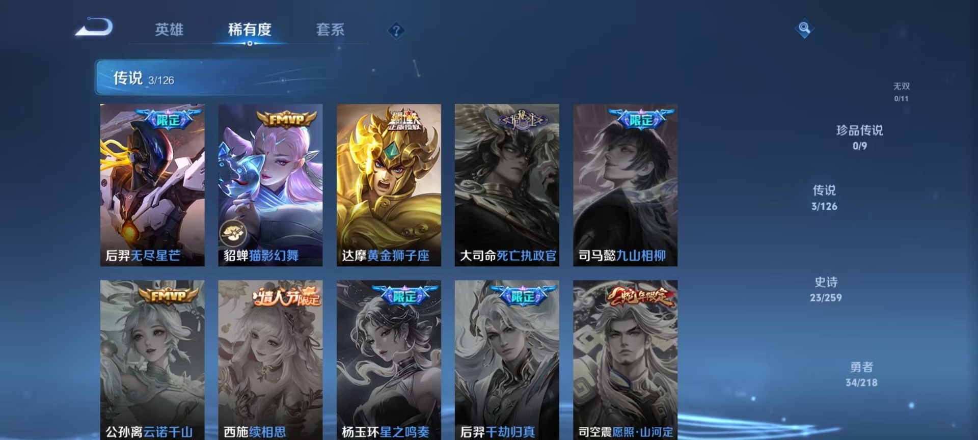 金蝉唐三藏,花木兰瑞麟志,赵云百木心枪,后羿无尽星芒