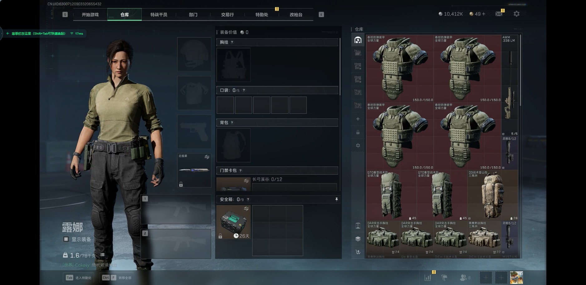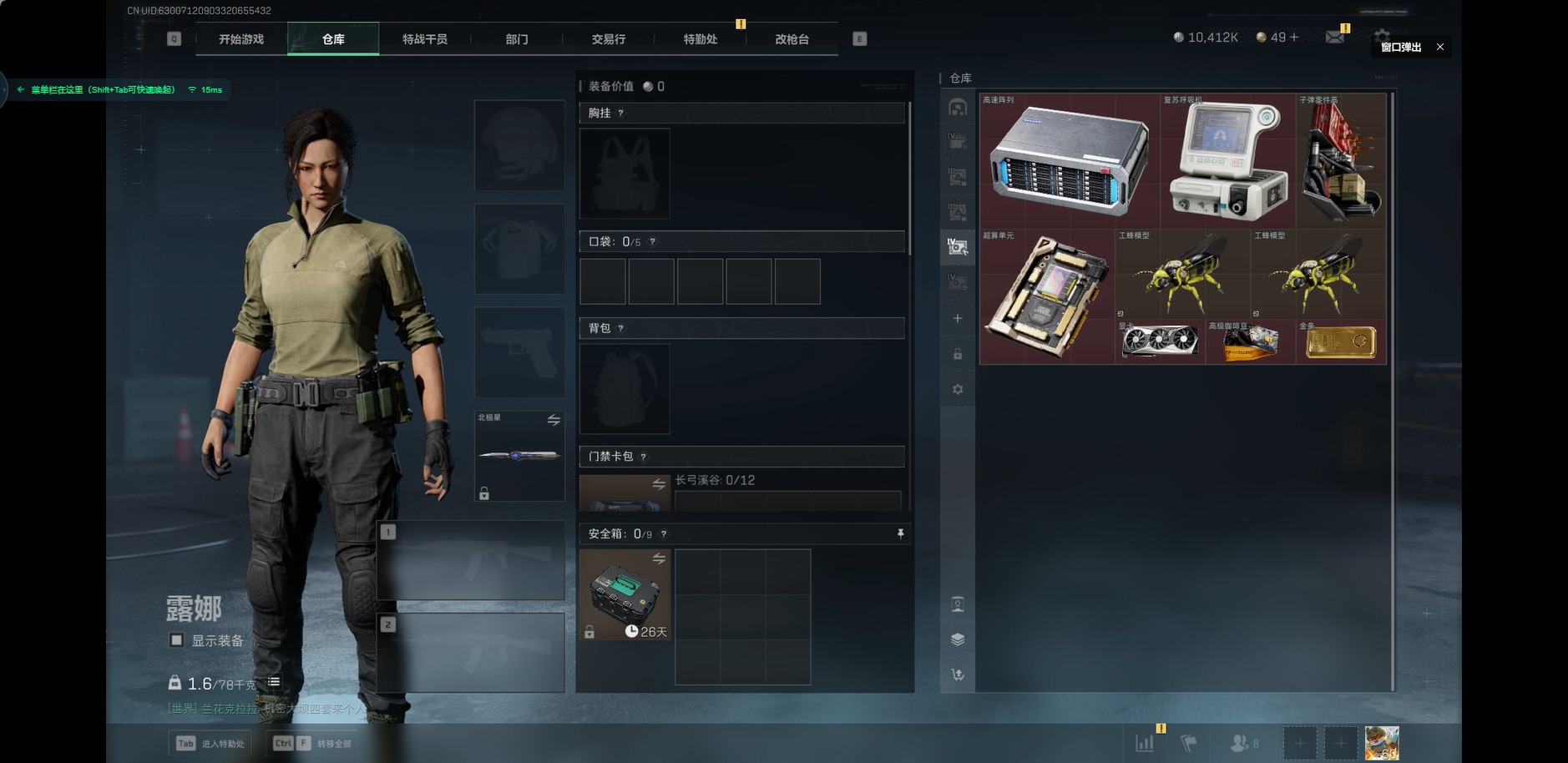 [11553828]总资产:162.3M 2干员外观 1近战传说 14传说枪械 哈夫币:10.412K 顶级安全箱(3×3)9.15号到期 可二次 可修改实名 优质装备:近战-北极星,顶级安全箱(3x3) 烽火地带段位:黑鹰 全面战场段位:无段位 传说武器皮肤:SCAR-H战斗步枪-水墨云图,AK-12突击步枪-夜鹰,SMG45冲锋枪-骑士,M4A1突击步枪-阿米娅,CAR-15突击步枪-阿米娅,复合弓-黑-天际线,QCQ171冲锋枪-北极星,AK-12突击步枪-特斯拉线圈,SR-3M紧凑突击步枪-特斯拉线圈,UZI冲锋枪-特斯拉线圈,勇士冲锋枪-能天使-午夜邮差,725双管霰弹枪-送葬人-无题密令,K437突击步枪-北极星 史诗武器皮肤:AUG突击步枪-蝮蛇,M700狙击步枪-蝮蛇,PKM通用机枪-蝮蛇,G3战斗步枪-战场英杰,SR-25射手步枪-尖端治疗,PKM通用机枪-荒野求生,AS Val突击步枪-尖端治疗,M700狙击步枪-守夜人,SG552突击步枪-尖端治疗,Ash-12战斗步枪-守夜人,MP5冲锋枪-深海恐惧,SR-3M紧凑突击步枪-荒野求生,勇士冲锋枪-深海恐惧,SG552突击步枪-深海恐惧,AKM突击步枪-林中猎手,M16A4突击步枪-竞赛选手,PKM通用机枪-守夜人,SVD狙击步枪-荒野求生,M1014霰弹枪-林中猎手,SV-98狙击步枪-林中猎手,PTR-32突击步枪-英雄,PSG-1射手步枪-无垢,AS Val突击步枪-典狱官,M250通用机枪-囚徒,SV-98狙击步枪-囚徒,SCAR-H战斗步枪-囚徒,腾龙突击步枪-无垢,MP7冲锋枪-无垢,Vector冲锋枪-阿萨拉文明,SVD狙击步枪-阿萨拉工艺,PKM通用机枪-英雄,M14射手步枪-黑鹰坠落 干员外观:骇爪-水墨云图,露娜-黑·天际线